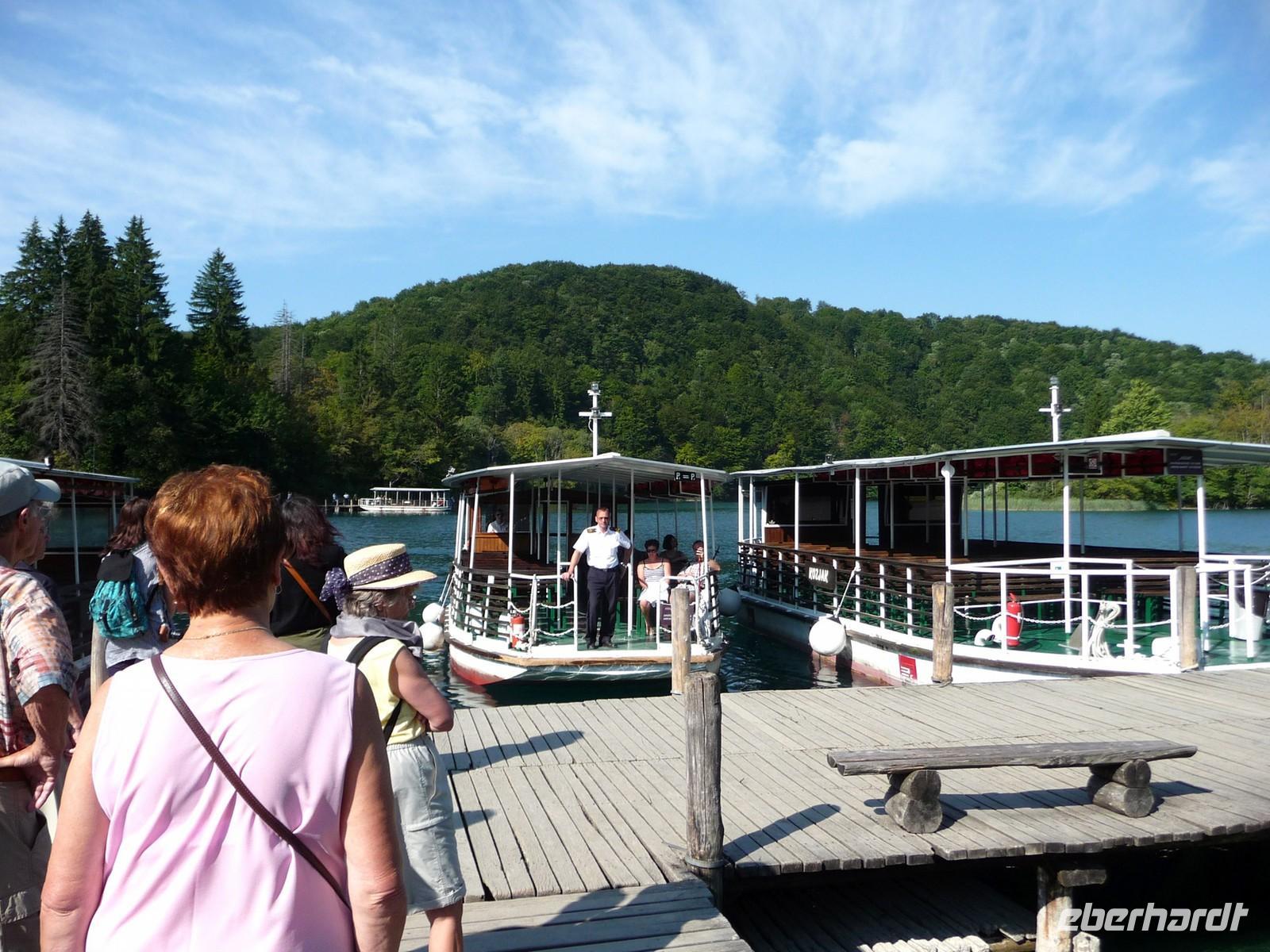 10:00 Uhr Ankunft und Ausstieg am Hotel Jezero (Eingang 2), Beginn der Führung durch den NP: Eintritt mit Voucher und Prospekten für alle Gäste, dann Abstieg zum Fährschiff und kleine Überfahrt, Beginn der Runde durch die oberen Seen, 12:15 Uhr Ankunft Fähranleger und große Überfahrt zum unteren Bereich des NP - Anlegen 12:40 Uhr; Restaurant und WC, 13:00 Uhr Treffen mit Gästen und Führung durch den unteren Bereich, Aufstieg zum Eingang 1 (14 Uhr), nochmals WC und Andenkengeschäfte, gemeinsamer Weg zum Busparkplatz und Abfahrt 14:10 Uhr;