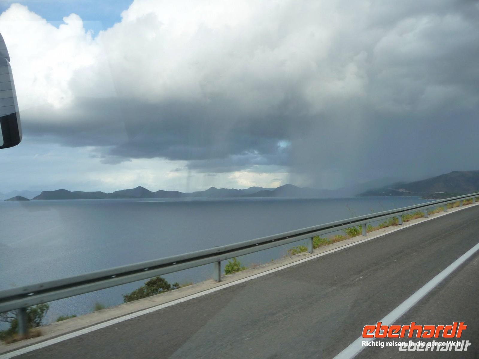 9:50 Uhr Weiterfahrt nach Orebi, jetzt Gewitter und strömender Regen;