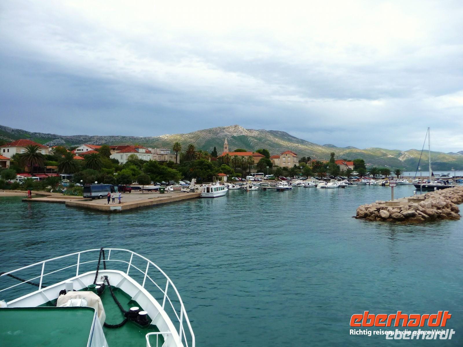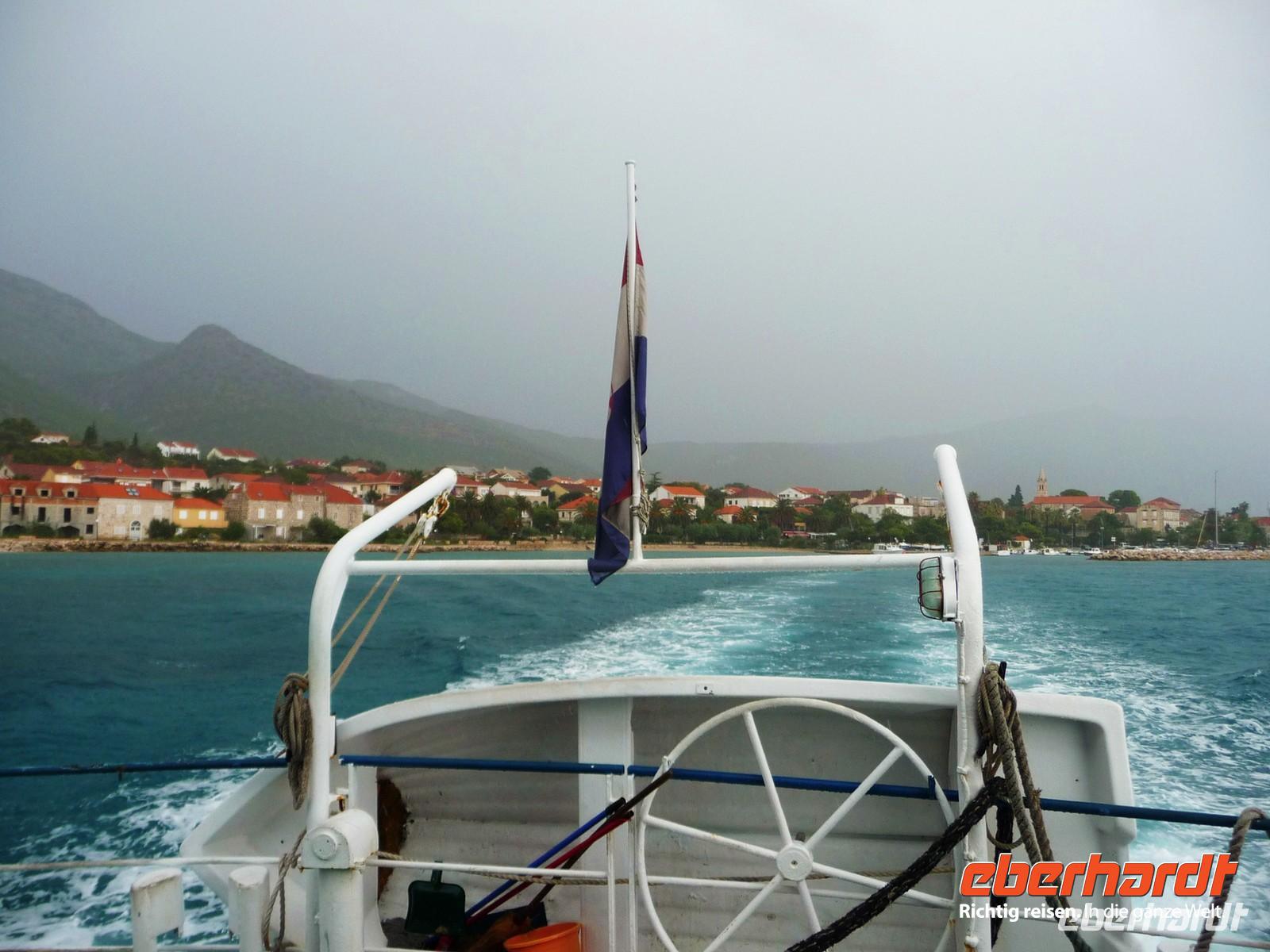 Anschließend Freizeit von 13:15 bis 14:45 Uhr, dann wieder Treffen an Fähranleger und 15:05 Uhr Rückfahrt mit Fähre nach Orebi, Regen hat aufgehört, 15:20 Uhr Ankunft und 15:30 Uhr Rückfahrt mit unserem Bus Richtung Stone;