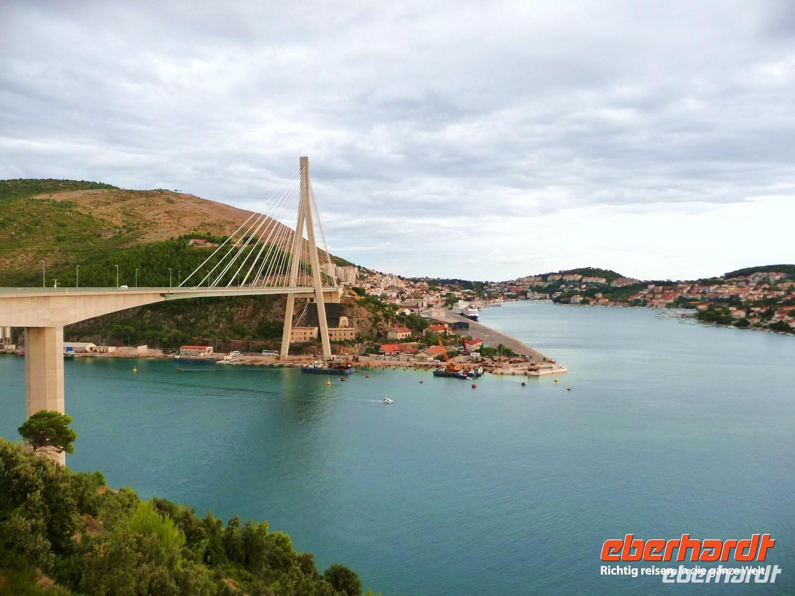 bei weiterer Rückfahrt noch Fotostopp vor Brücke in Dubrovnik;
