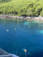Zur Frühstückszeit hieß es Leinen los! – wir verließen Korčula und glitten gemächlich übers Wasser, bis wir in einer stillen Bucht ankerten. Dort gönnten wir uns ein erfrischendes Bad im glasklaren Meer, bevor wir an Bord ein leckeres Mittagessen genossen.