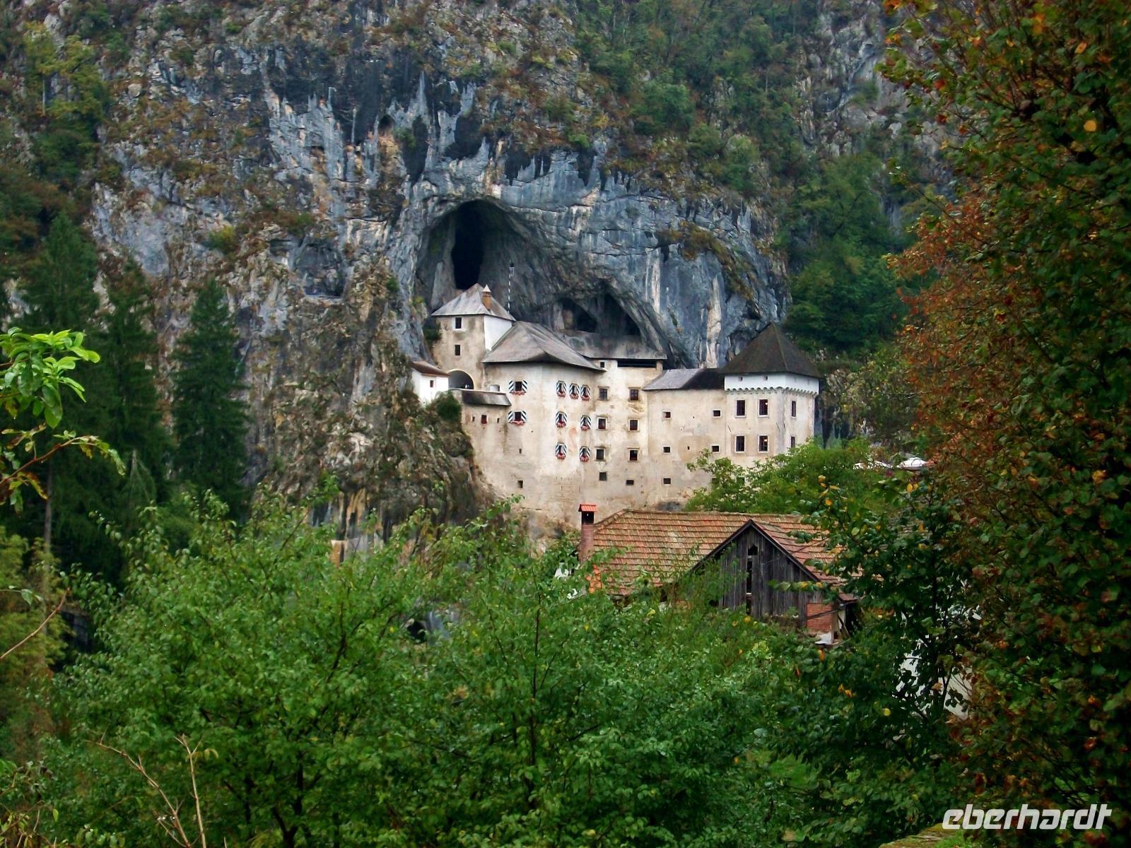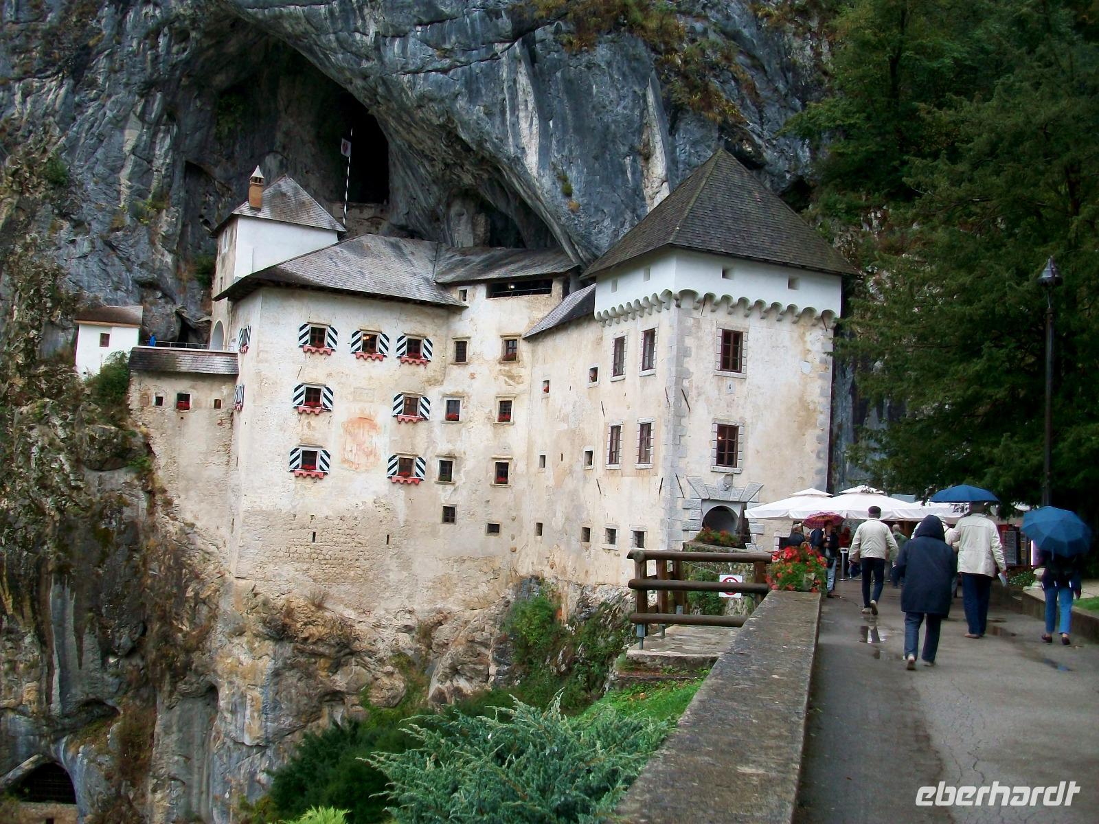 2.10.2016. Der Tag beginnt mit Regen, die ganze Nacht hatte Petrus seine Schleusen offen und ein Teil des Vormittages der für einen Spaziergang in Bled geplant war, fällt buchstäblich ins Wasser. Das ist nun leider nicht zu ändern und wir hoffen auf Besserung; gegen zehn verlassen wir den schönen Ort um einem ersten Höhepunkt unserer Reise entgegen zu fahren. Wir gelangen an Ljubljana vorbei zum Ort Postojna und von hier auf einer schmalen Landstraße über Berg und Tal bis zum Hrušica - Gebirge. Nach einigen Kurven öffnet sich der Blick und wir sehen die Burg auf welcher einst der berüchtigte Raubritter Erasmus sein Unwesen trieb, es ist die „Burg vor der Höhle", im Slowenischen heißt das „Predjamski Grad". Und diese Burg ist schon etwas Besonderes; mitten in einer Höhle ist dieses Bauwerk angelegt und es gleicht eher einem Märchenschloss als der Realität. Hier nehmen wir uns eine gute Stunde Zeit um dieses einmalige Monument zu erkunden, eine interessante Ausstellung ist zu betrachten und über eine Brücke gelangt man sogar in das dahinterliegende Höhlensystem, einfach faszinierend!