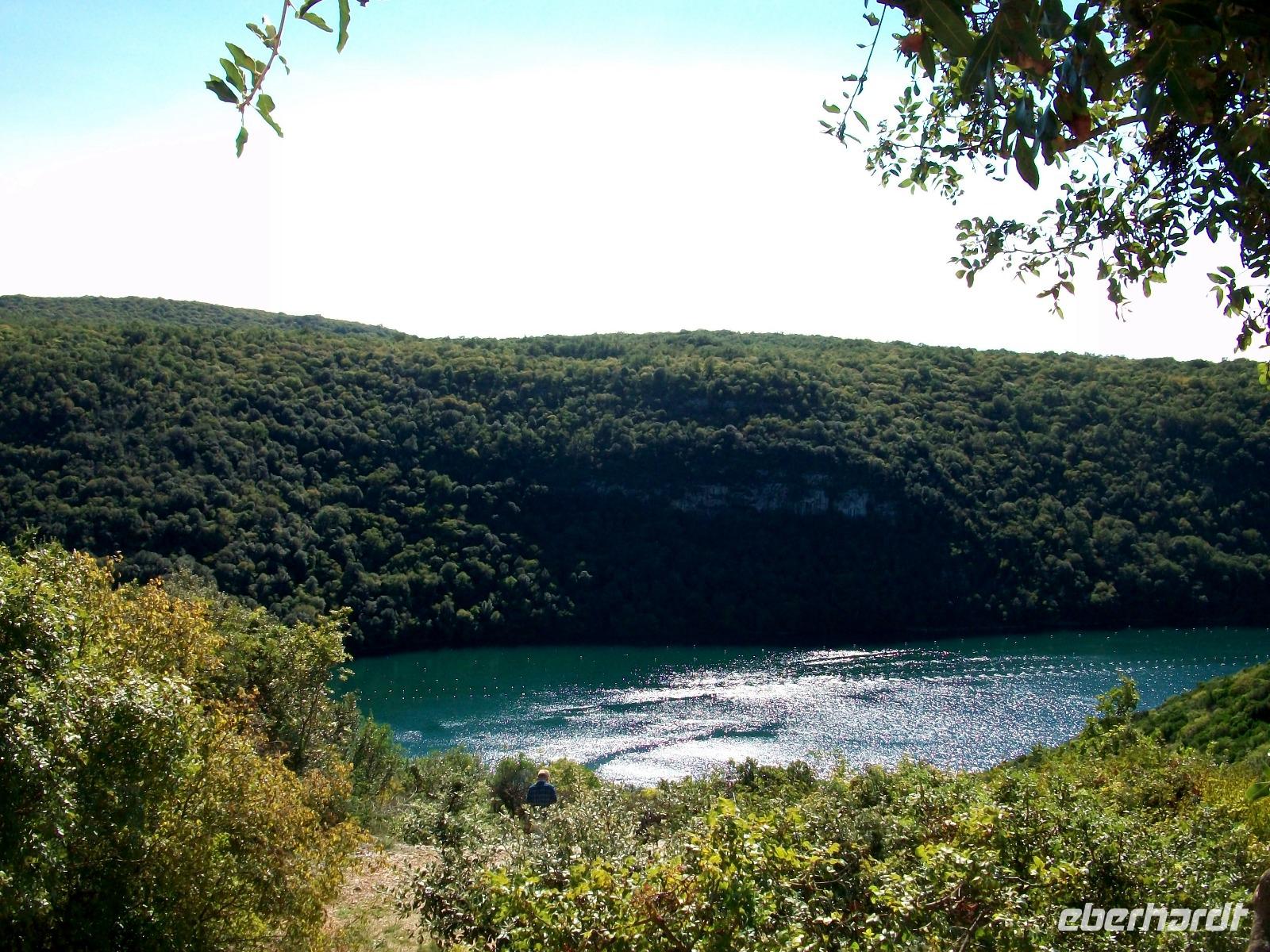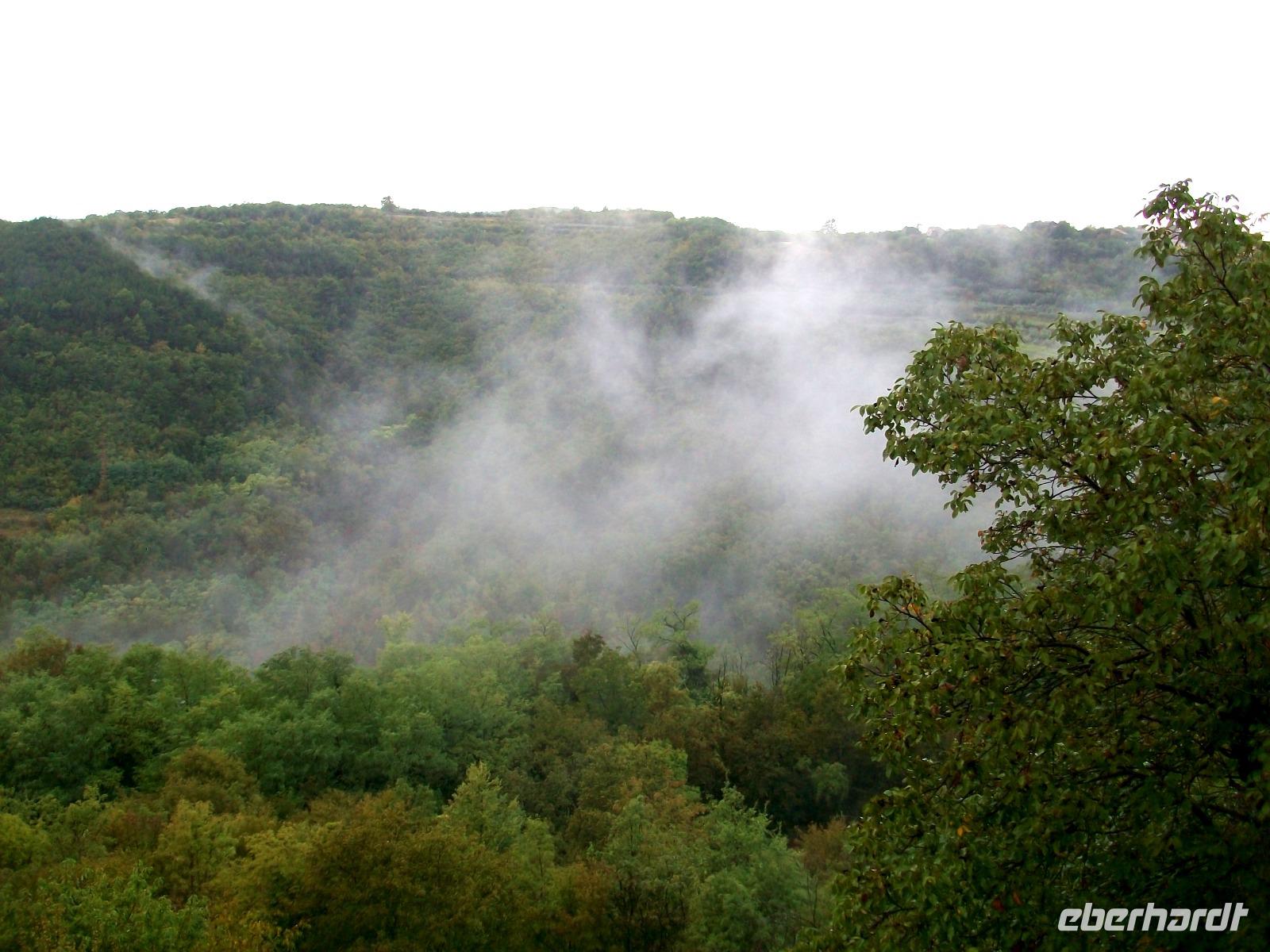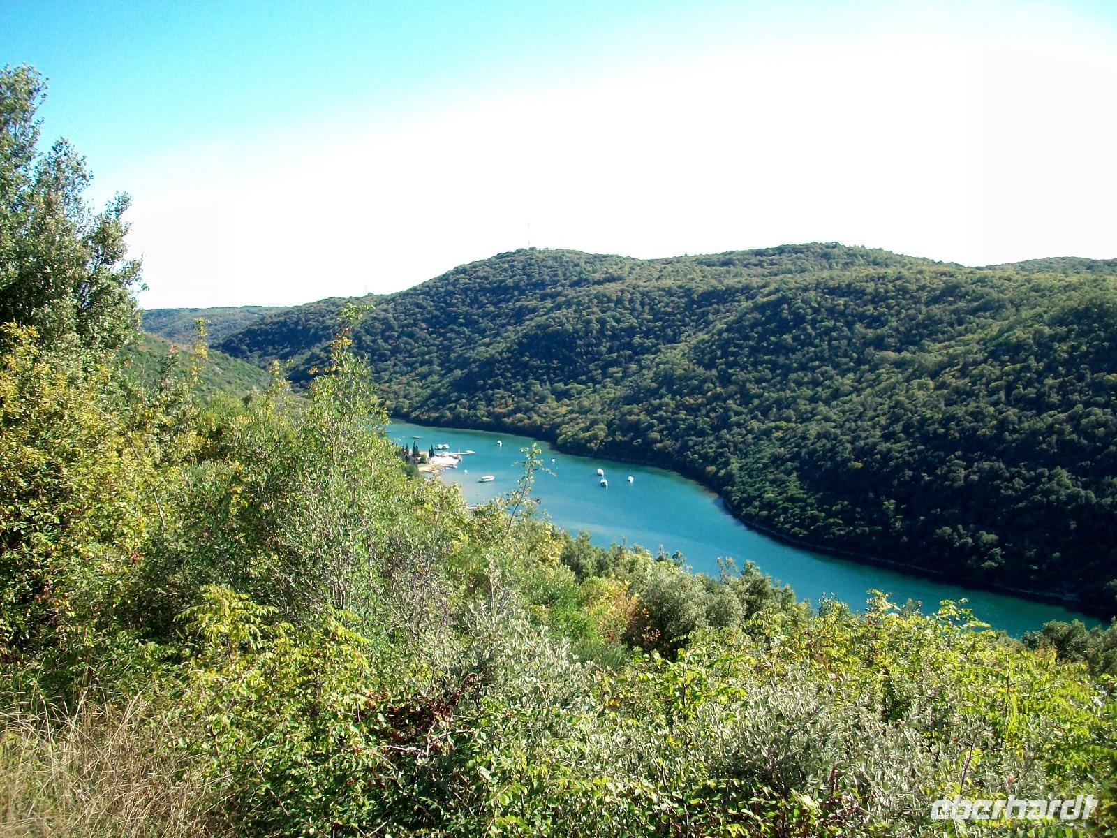 4.10.2016. Strahlender Sonnenschein begleitet uns am frühen Vormittag. Als wir uns aufmachen ist die Luft klar und wir freuen uns auf das schöne Tagesprogramm welches vor uns liegt. Zunächst führt uns die Straße hinauf in die istrischen Berge; tief unter uns ist der Plomin - Kanal zu sehen über dem sich kleine Dunstwolken gebildet haben, ein reizvoller Anblick. Dann führt uns der Weg immer entlang der Küste; wir durchfahren den Ort Lovran, sehen von oben den berühmten Kurort Opatija und schwenken hinter Rijeka ein auf die Jadranska Magistrala, die Uferstraße an der Adria.