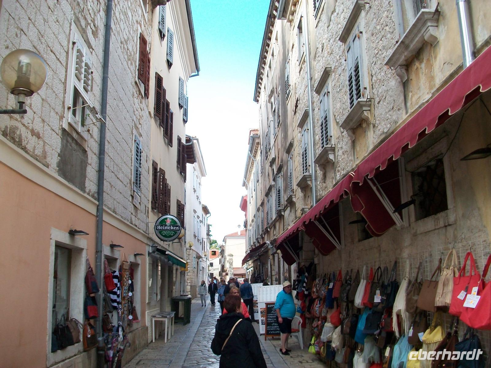 Als wir uns dann wieder aufmachen ist am Horizont blauer Himmel zu sehen und als wir Porec, unser nächstes Ziel erreichen, lacht am Himmel die Sonne. Gerade zur richtigen Zeit um dieser geschichtsträchtigen Stadt einen ausgedehnten Besuch abzustatten. Schnell ist man im Gewirr der Gassen verschwunden; umgeben von den reizvollen und sehr gepflegten Häusern die hier schon seit Jahrhunderten das Auge des Besuchers erfreuen. Wer möchte kann auch in die berühmte Euphrasius - Basilika hineinschauen, sie steht auf der UNESCO - Liste des Weltkulturerbes.