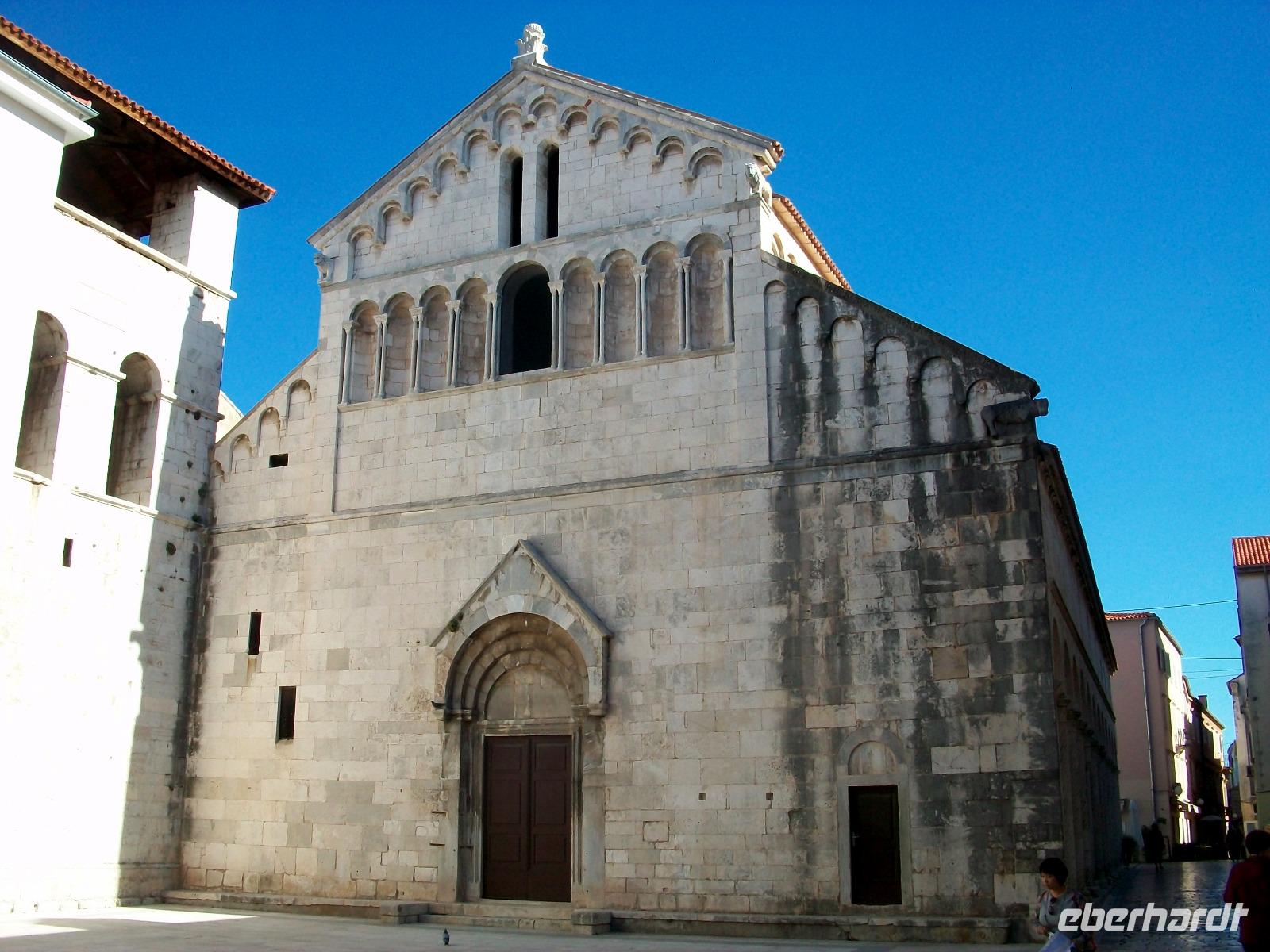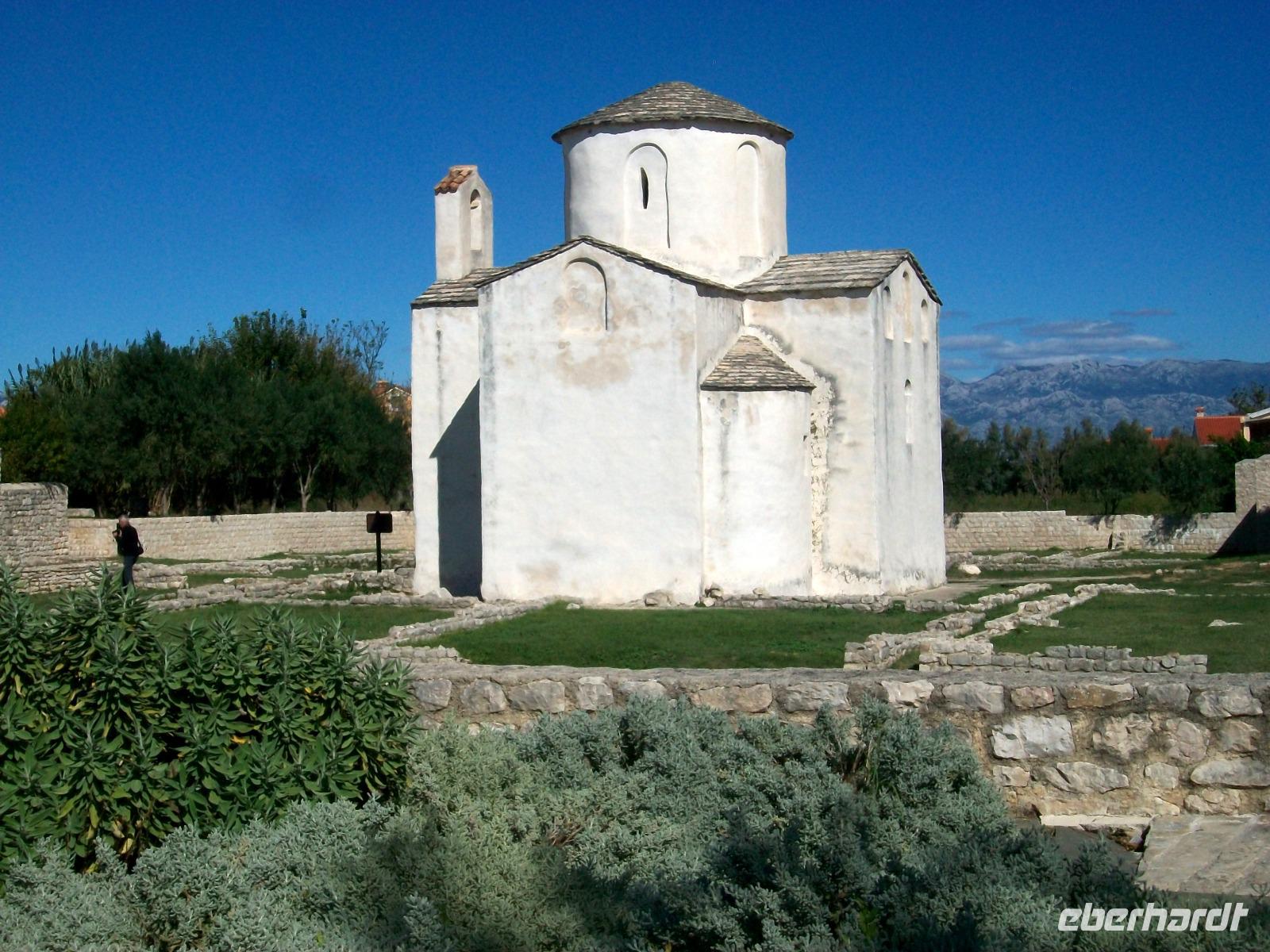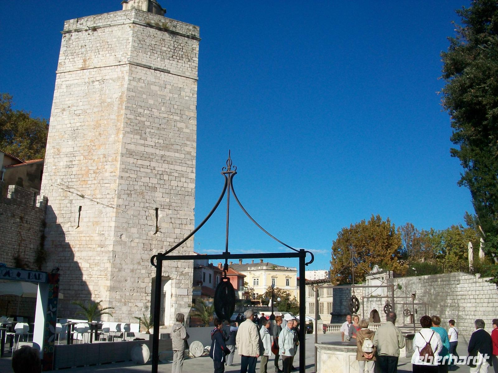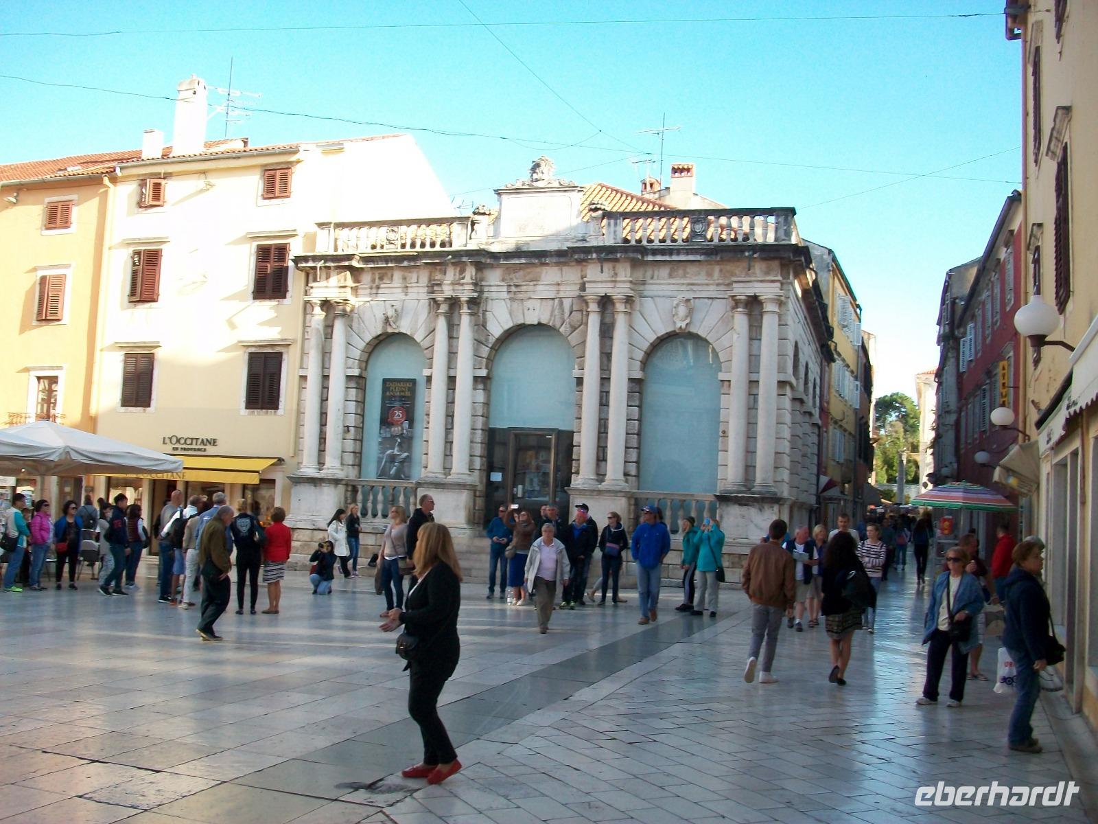 Wir werden weiterhin von der Sonne verwöhnt als wir dann nach Zadar gelangen. Hier werden wir schon von Meri erwartet, sie wird uns nun durch einen der reizvollsten Orte Norddalmatiens führen. Weit reicht auch hier die Geschichte zurück; wir sehen die römischen Überbleibsel des Forum Romanum, die ältesten Zeugnisse der Stadt, dahinter die Rotunde der Donatskirche und gleich daneben die Kathedrale.