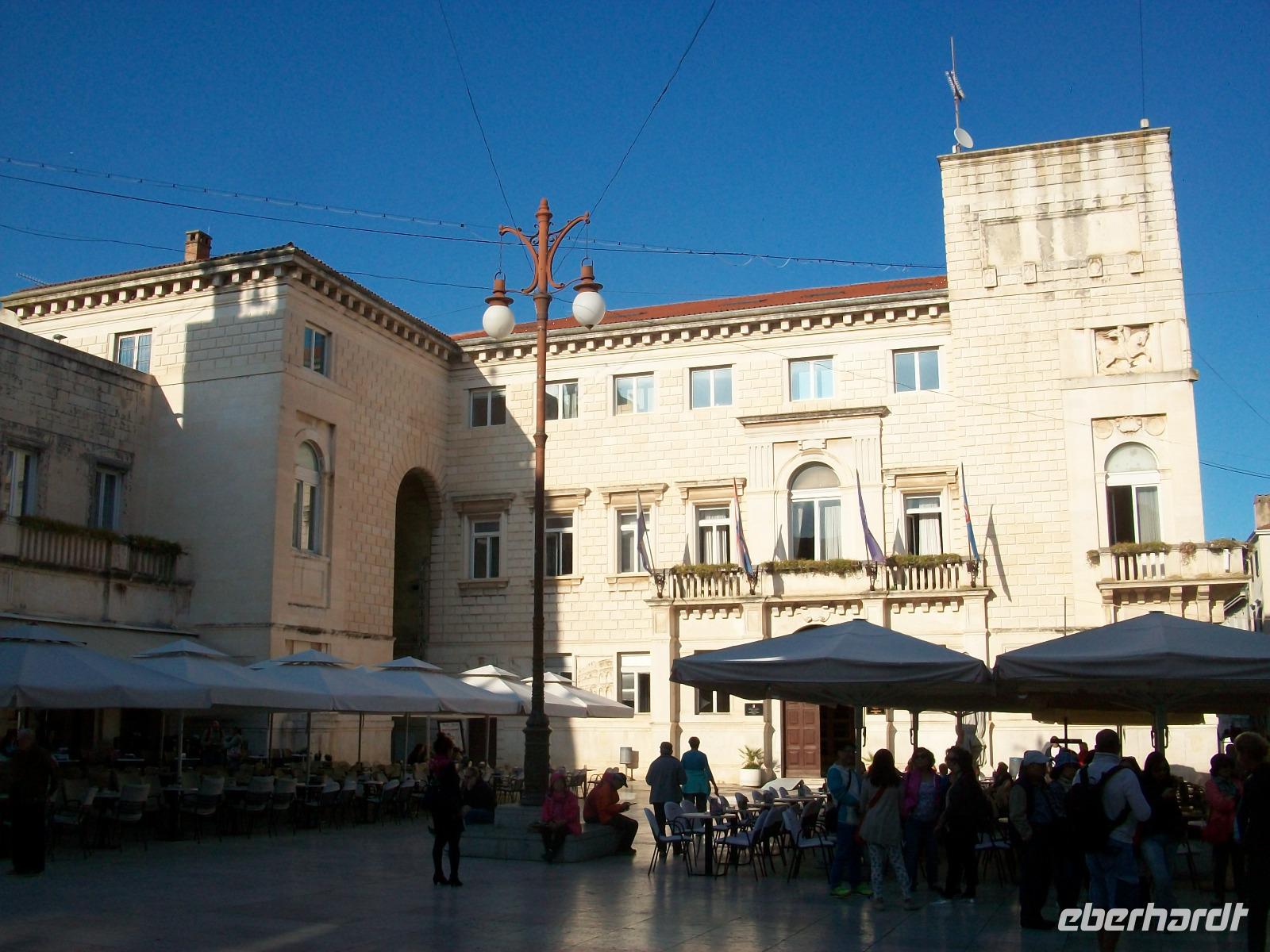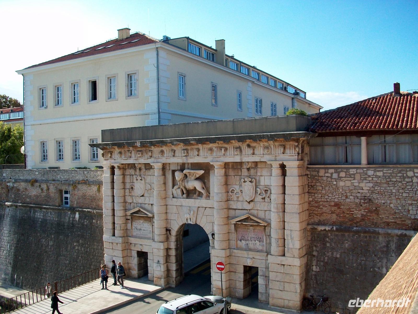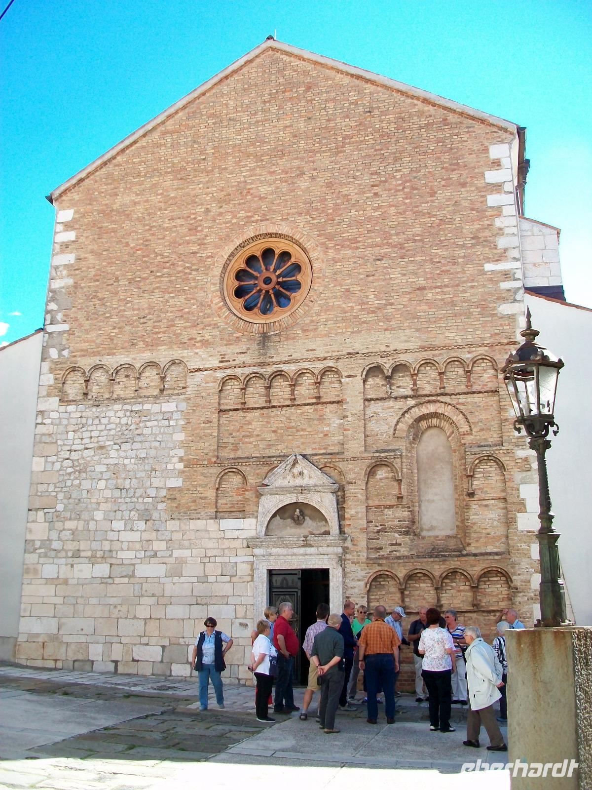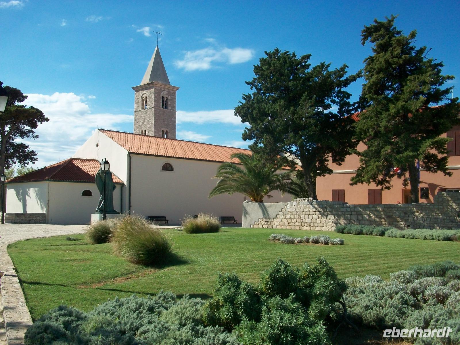 Wir werden weiterhin von der Sonne verwöhnt als wir dann nach Zadar gelangen. Hier werden wir schon von Meri erwartet, sie wird uns nun durch einen der reizvollsten Orte Norddalmatiens führen. Weit reicht auch hier die Geschichte zurück; wir sehen die römischen Überbleibsel des Forum Romanum, die ältesten Zeugnisse der Stadt, dahinter die Rotunde der Donatskirche und gleich daneben die Kathedrale.