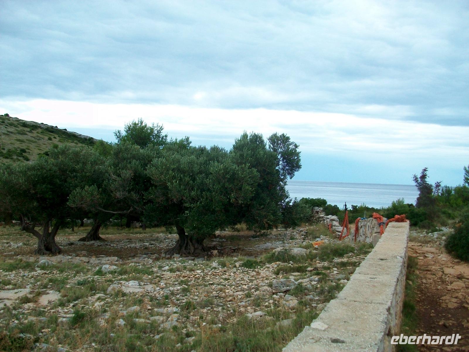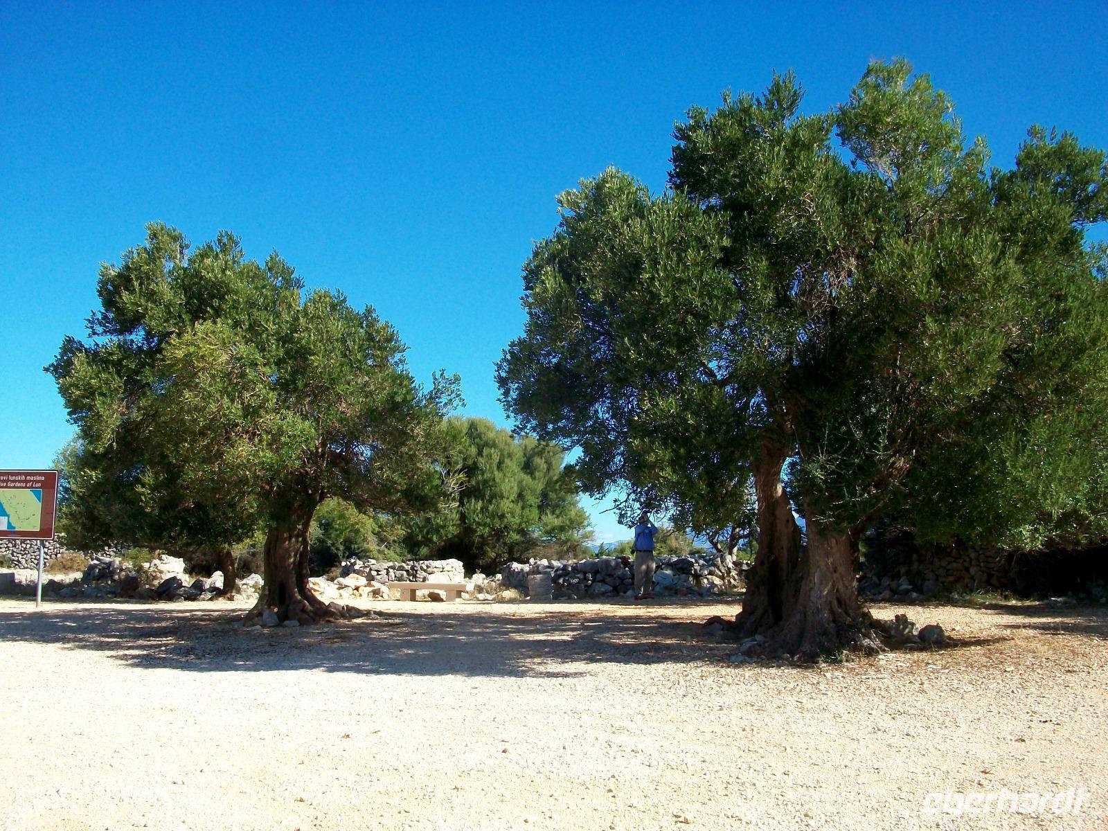 Bora hat uns aber sonniges Wetter und einen freien Blick beschert und so machen wir uns auf um zunächst bei einer Fahrt die Insel Pag etwas näher kennenzulernen. Wir gelangen zum Aussichtspunkt über der Stadt und haben bei klarer Sicht einen phantastischen Weitblick auf das Meer und die weißen Kalkfelsen der Insel. Dann geht unsere Fahrt bis zum nördlichsten Zipfel der Insel, die Straße wird enger und wir haben dabei Einblicke in das einfache Leben das die Menschen hier führen. Beeindruckend sind die uralten Olivenbäume anzuschauen, hier lohnt für uns auch ein Stopp.