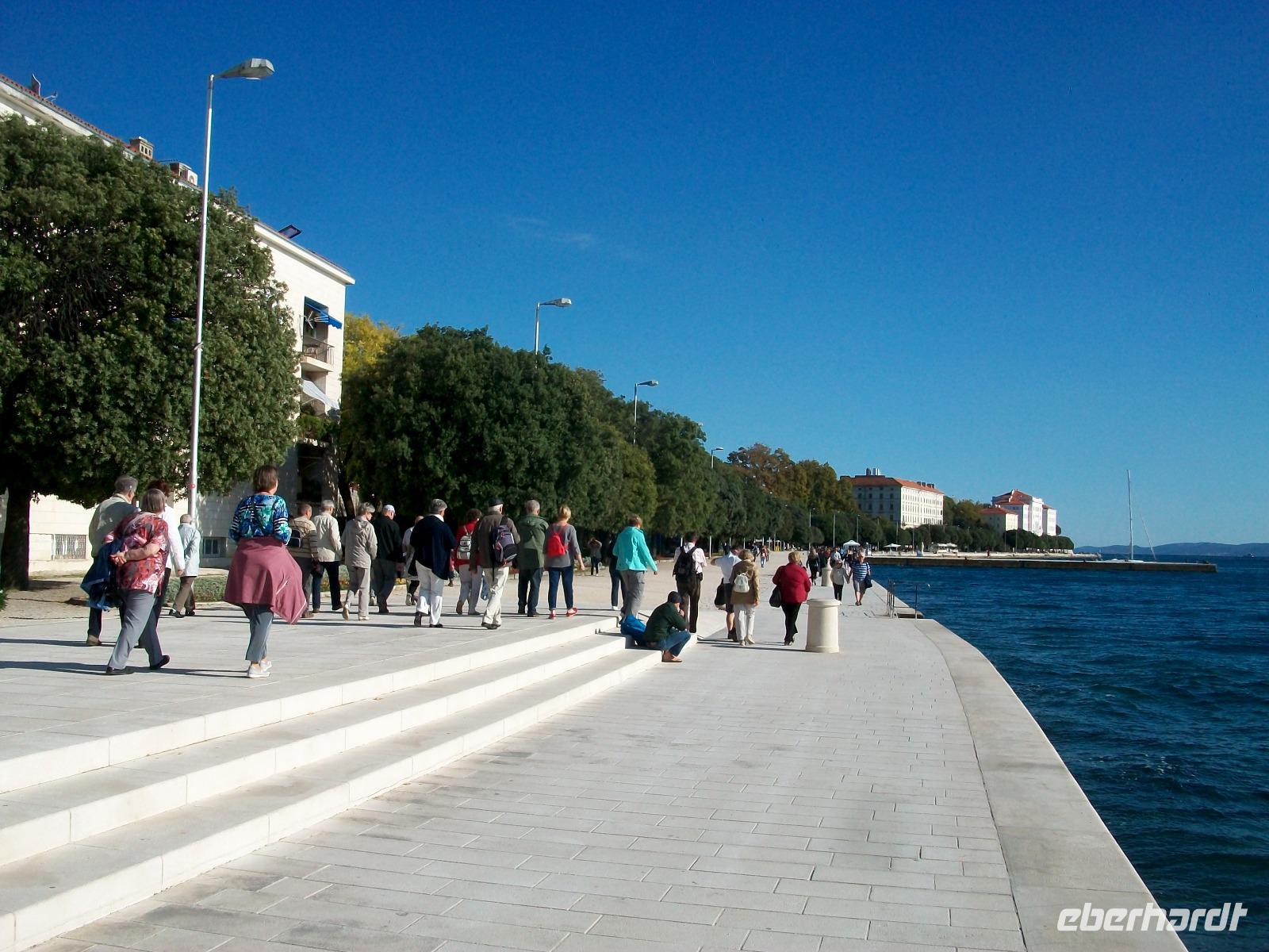 Dann schlendern wir entlang der Promenade zur modernen Wasserorgel, hier macht die Adria mit ihren Wellen Musik für uns.