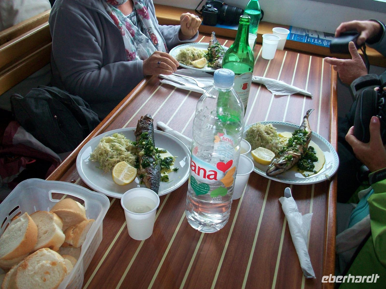 Dazu sind wir nach der Schifffahrt in einem typischen Restaurant eingeladen und inmitten der Einheimischen, die es sich auch gut schmecken lassen, genießen wir die schönen Stunden bei einem leckeren Mal aus frischen Muscheln, würzigem Fischrisotto und einer Dorade mit Garnelen - unvergleichlich lecker!