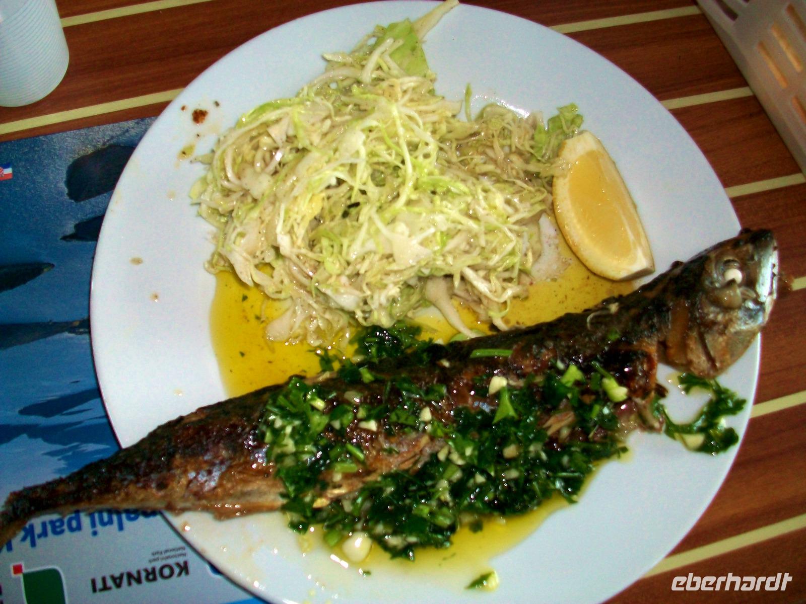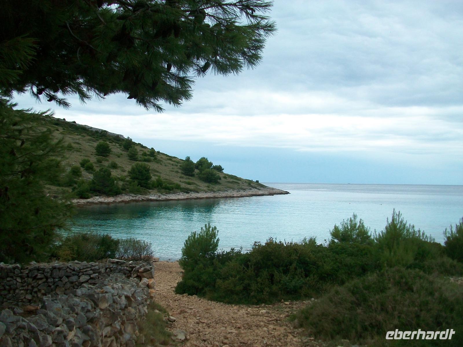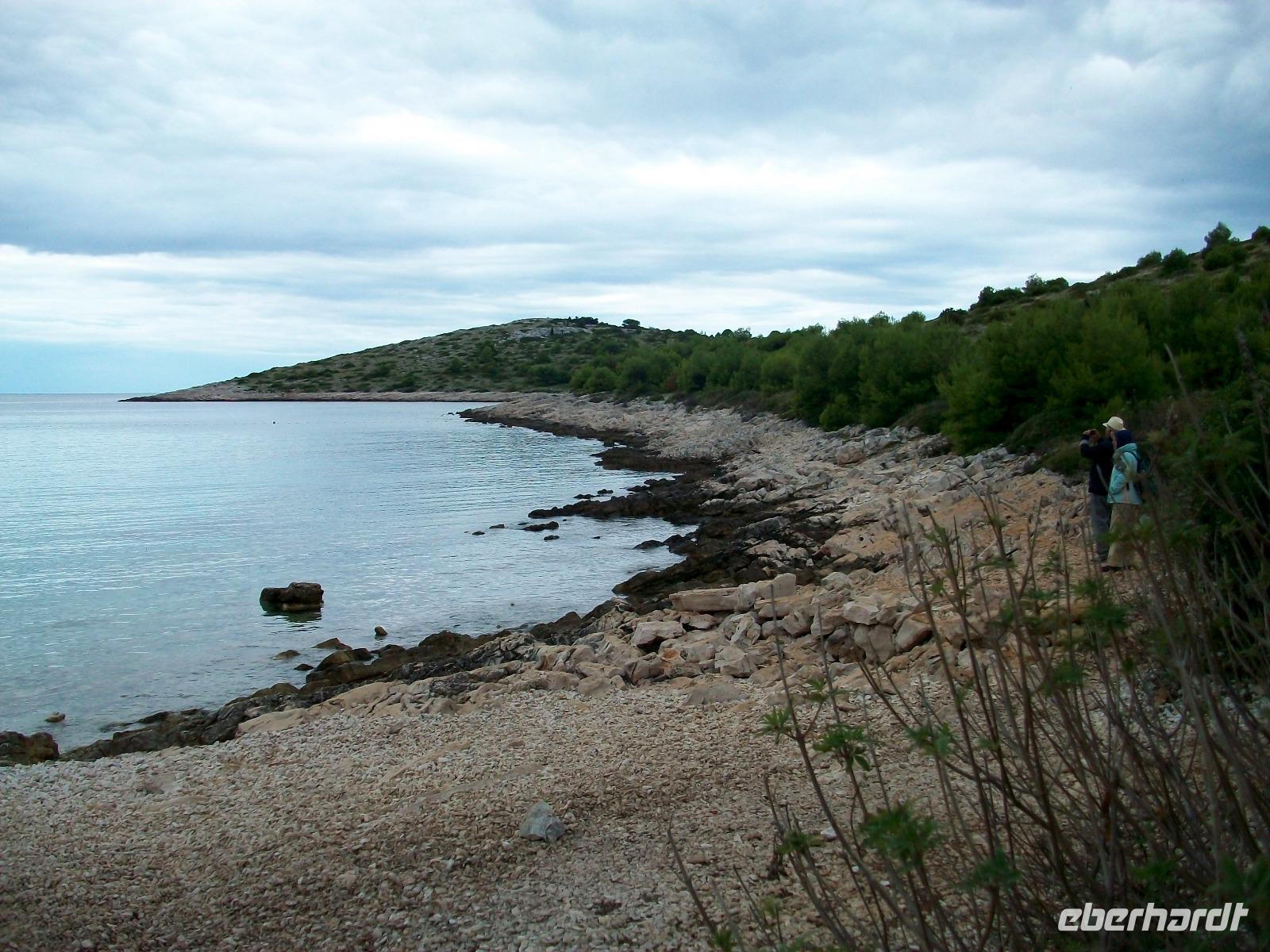 Gegen Mittag tritt der Grill in Aktion; wer möchte kann Fisch oder eine Fleischspeise frisch zubereitet genießen, in dieser Zeit legt das Schiff an. Es ist ein kleiner Hafen der Insel Levrnaka und hier haben wir nach dem Essen Zeit um das wirklich wilde Terrain zu erkunden. Über einen Hügel gelangen wir zu einem Platz der als Badestrand genutzt wird, auch ein Berg kann bestiegen werden mit einem schönen Ausblick hinunter zur Bucht in welcher unser Schiff liegt. Während der Zeit kommt nun auch die Sonne hervor und verwöhnt uns bei der weiteren Fahrt mit ihren goldenen Strahlen. Azurblau und glasklar zeigt sich uns die Adria, kleine Fischschwärme sind zu sehen und wir passieren weitere schöne Inseln. Ein zweiter Stopp wird in einer Bucht der Insel Žut eingelegt und in der warmen Nachmittagssonne genehmigen wir uns auch hier einen Bummel in der einsamen Gegend. Nun neigt sich dieser schöne Ausflug aber leider schon dem Ende entgegen, langsam kommen wir dem Hafen Murter näher wo wir bereits schon von unseren Bus erwartet werden; er bringt uns zum Hotel und wir sind uns einig: ein schöner Tag liegt hinter uns der leider viel zu schnell vergangen ist!
