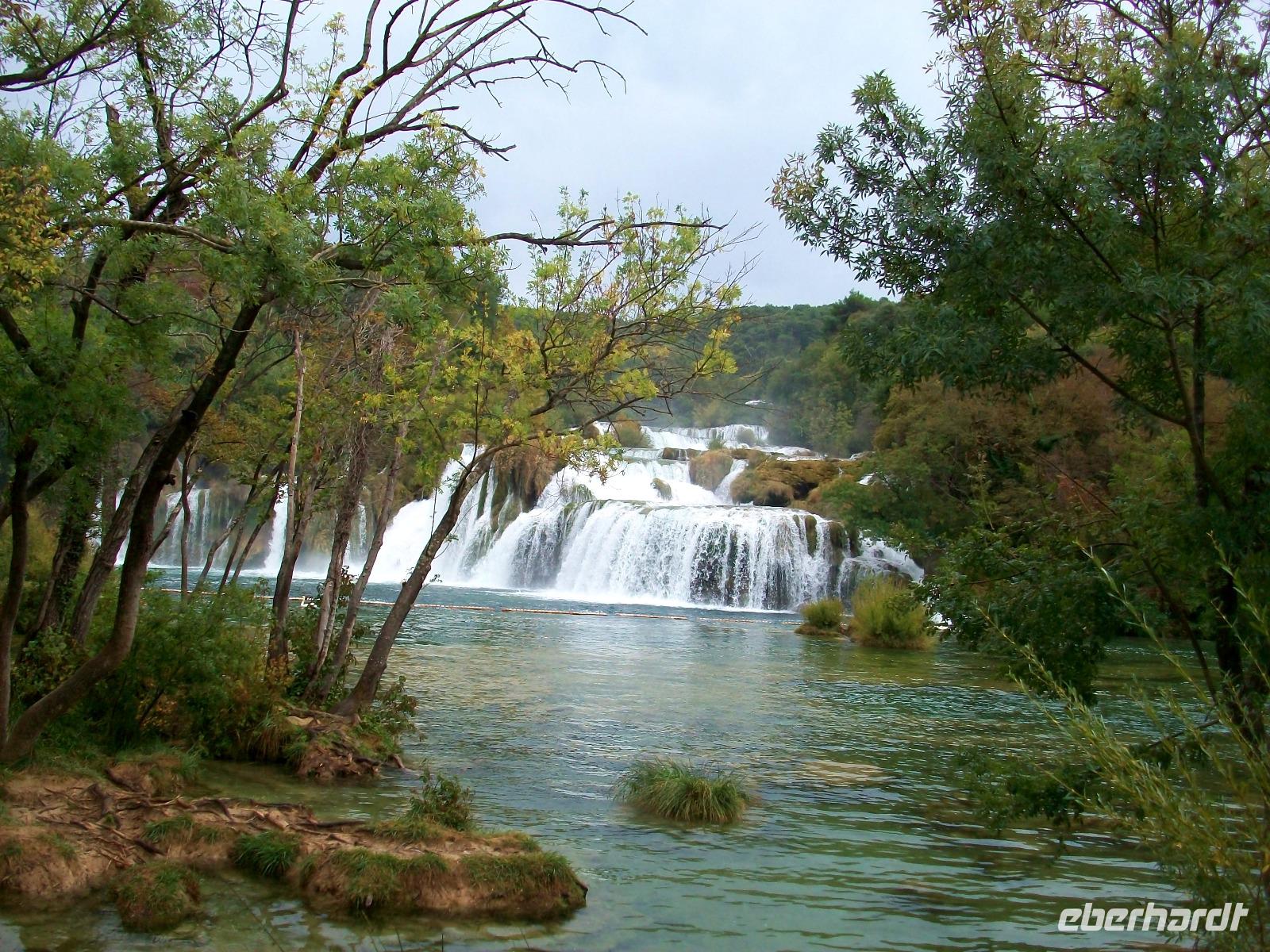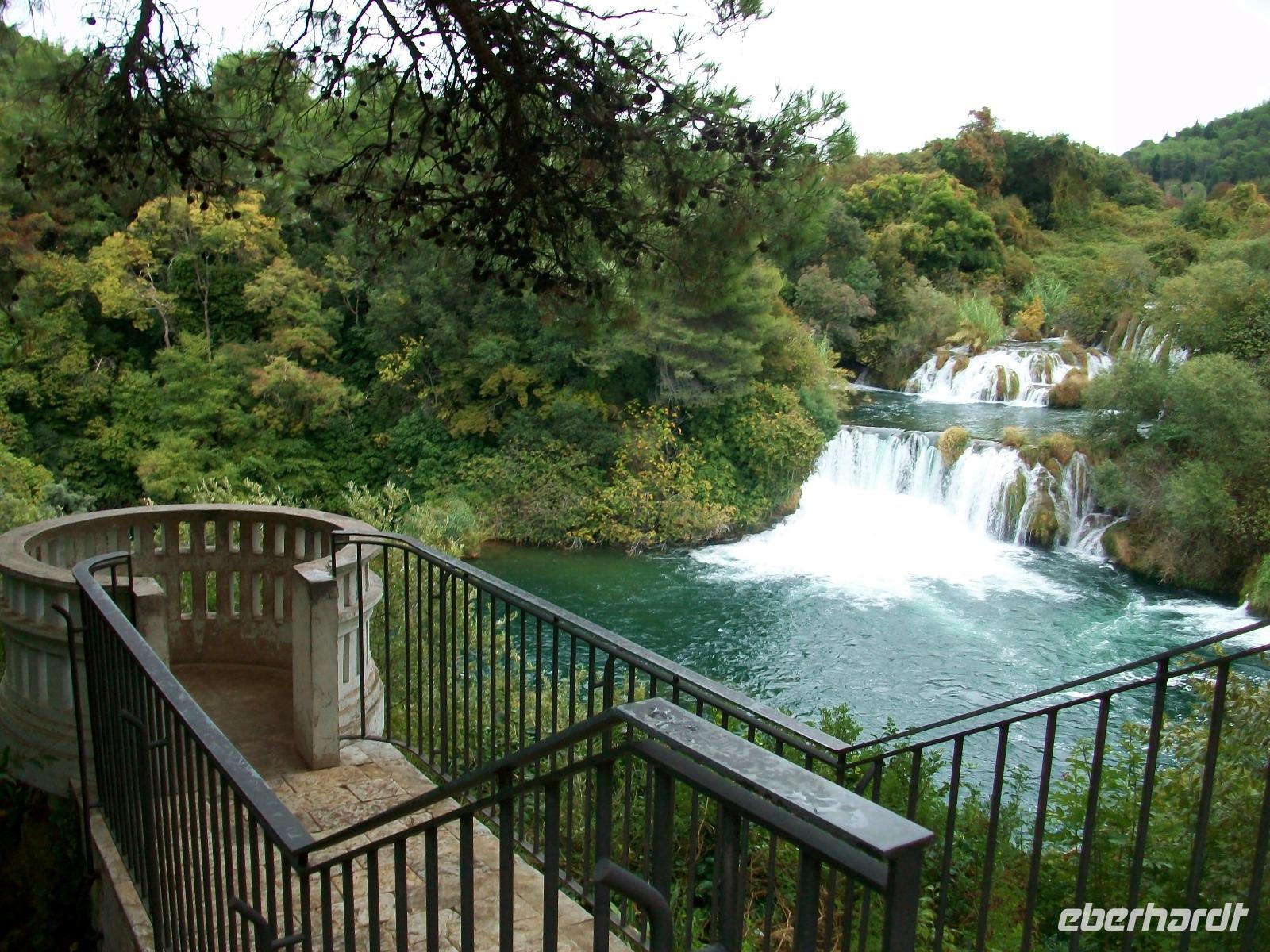 7.10.2016. Der Himmel hat sich wieder etwas bezogen als wir am Vormittag die Weiterreise beginnen. Wir haben zuerst vor einen der spektakulärsten Wasserfälle Kroatiens zu besuchen und fahren von der Küste aus etwas in das Hinterland hinein. Der Fluss Krka hat sich hier seenartig ausgebreitet; eine Serpentinenstraße führt uns hinunter und der Blick hinab ist schon ein erster Genuss. Unten angekommen beginnen wir den Rundgang; schon bald hören wir ein mächtiges Brausen, über fast einen Kilometer stürzt sich das Wasser über zahlreiche Kaskaden dieses Flusses hinab und bildet den Skradinski Buk. Ihn umrunden wir nun; unten auf der Brücke kommen uns die Wassermassen direkt entgegen, feinster Wasserstaub netzt uns die Haut und bei dem Spaziergang rund um diesen Wasserfall sind wir immer mittendrin im schäumenden Element. Als wir dann wieder oben stehen, können wir noch einmal mit dem Blick rundherum diese Wunder der Natur mit vollen Zügen genießen.