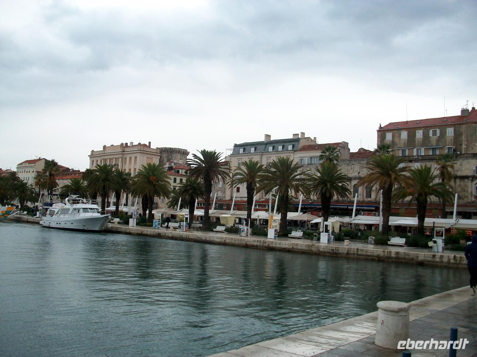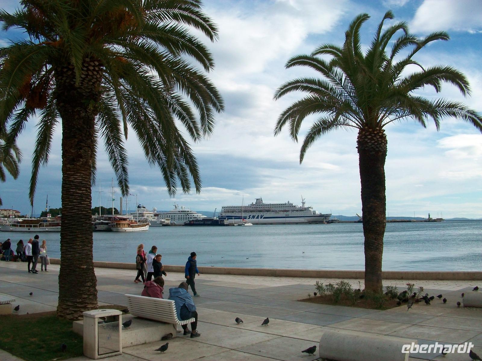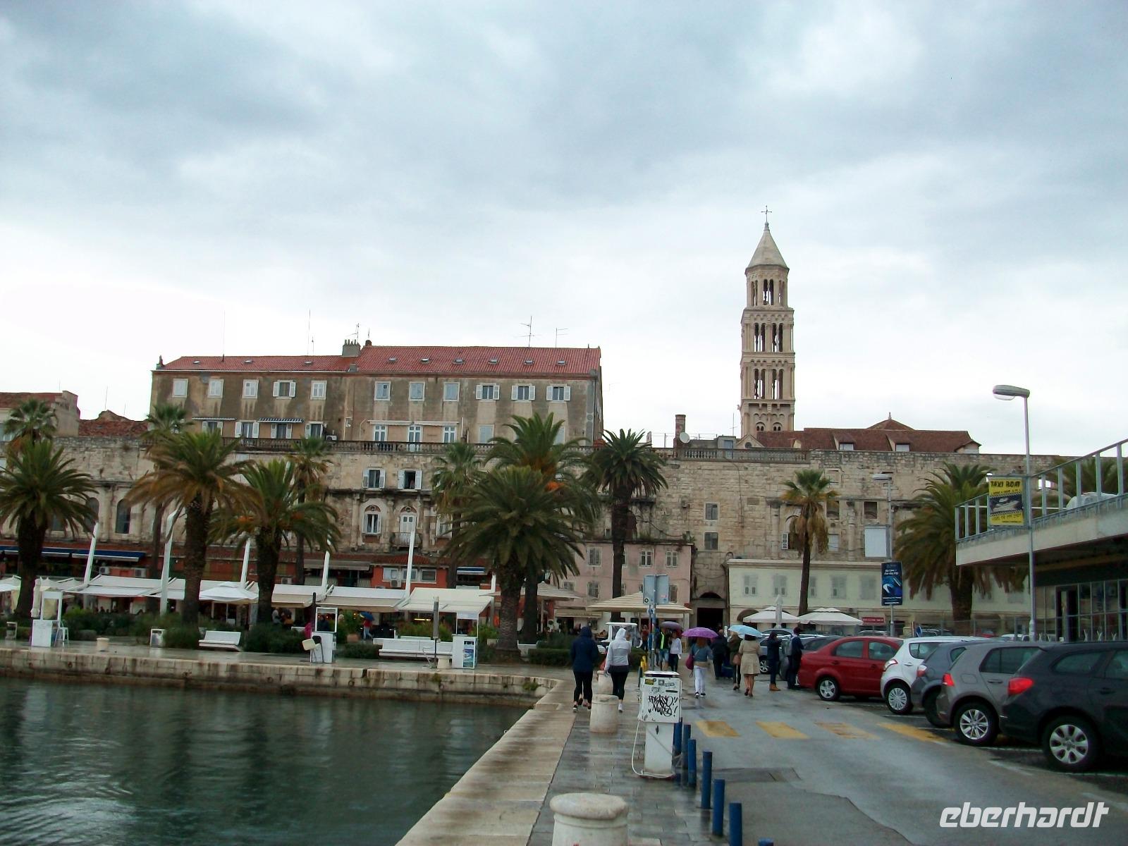 Leider hat sich das Wetter noch nicht gebessert als wir nach einer einstündigen Fahrt unser letztes Ziel auf kroatischen Biden erreichen. Es ist Split, hier errichtete der Römische Kaiser Diokletian sich seinen Palast, eines der besterhaltenen römischen Bauwerke Europas. Hier werden wir von Vesna erwartet, sie nimmt uns nun mit auf eine Reise 1 700 Jahre in der Zeit zurück. Bald sind wir im unteren Teil des Palastes verschwunden; mächtig sind hier die Mauern anzuschauen und wieder oben auf dem Platz Peristyl erwartet uns ein munteres Treiben. Hier sind wir nun ihm Zentrum des Bauwerkes angelangt; eine Klapa unterhält uns dabei mit dalmatinischer Musik, diese schöne Folklore zeigt uns das Temperament der Menschen hier. Dann gelangen wir zum Goldenen Tor des Palastes und bald über geschäftige Plätze an die Riva unter Palmen, es ist die reizvolle Strandpromenade dieser Stadt. Danach genießen wir noch ausgiebige Freizeit im lebendigen Ort.