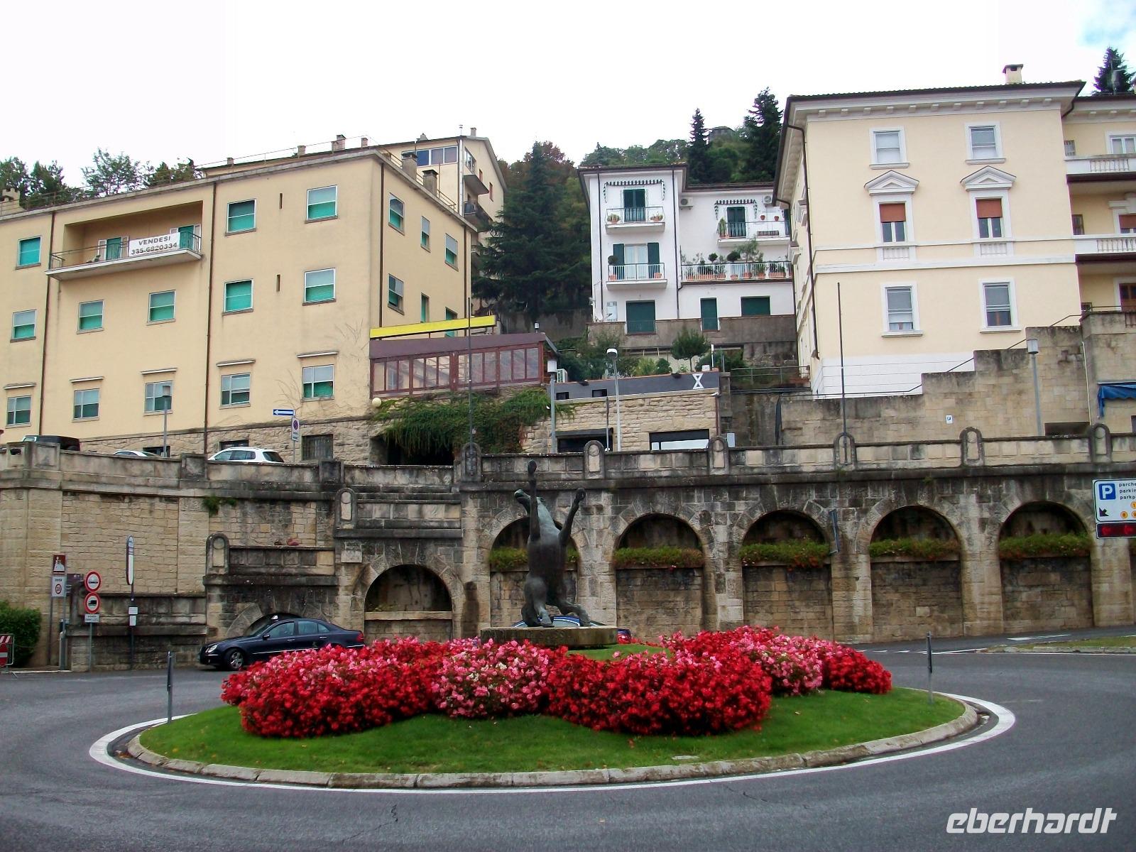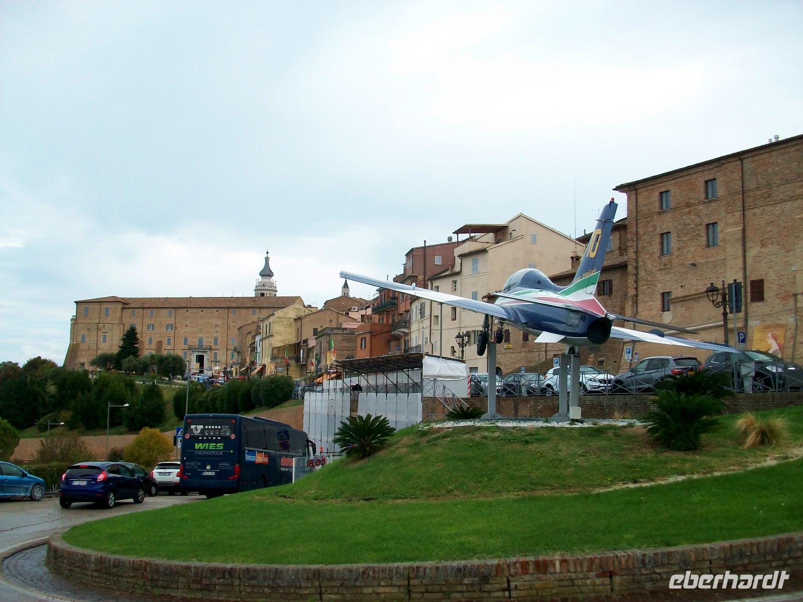 Auf einem Hügel kommt uns die mächtige Altstadt von Jesi entgegen, dieser schönen Stadt gilt unser erster Besuch. Durch das Stadttor gelangen wir hinauf und entlang belebter Plätze und schmaler Gassen genießen wir den schönen Vormittag in diesen altehrwürdigen Mauern. Zwei Stunden gönnen wir uns und dann geht es weiter einem besonderen Ziel entgegen.