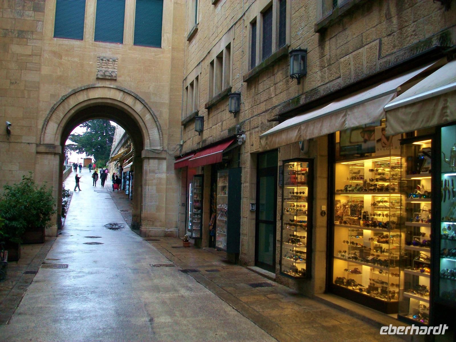 Unweit des Parkplatzes beginnt die Altstadt die wir uns nun erschließen. Zahlreiche Geschäfte locken mit ihren Angeboten, von oben hat der Betrachter einen schönen Blick auf das Land bis zum Meer und auch dieser Nachmittag vergeht im Betrachten der schönen Architektur und dem Regen Treiben in diesem kleinen Staat.