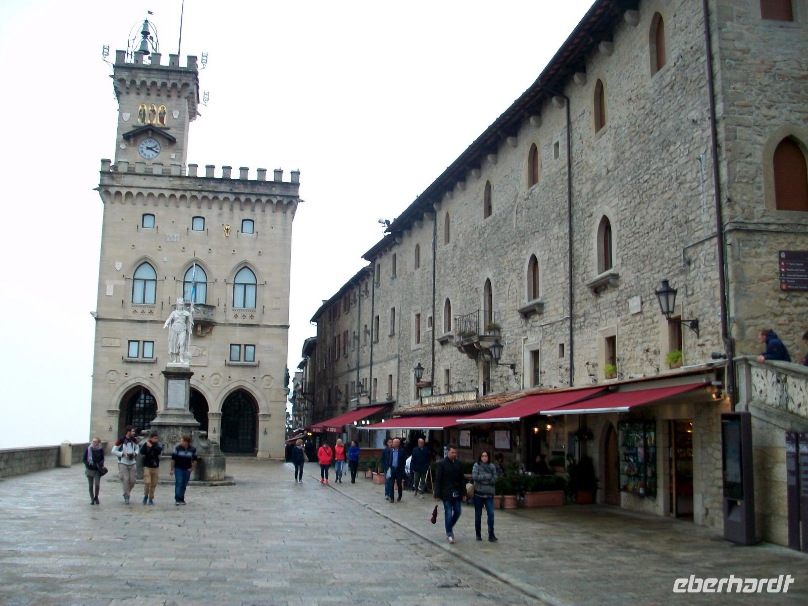 Dann gelangen wir wieder in die Nähe der Adria und bei Rimini nehmen wir erneut Kurs auf das Hinterland. Vor unseren Augen erscheint bald der Monte Titano, an seinem Rücken ziehen sich ganz malerisch die Häuser hinauf und ganz oben ist der älteste Teil zu sehen, wir sind im Zwergstaat San Marino angelangt.