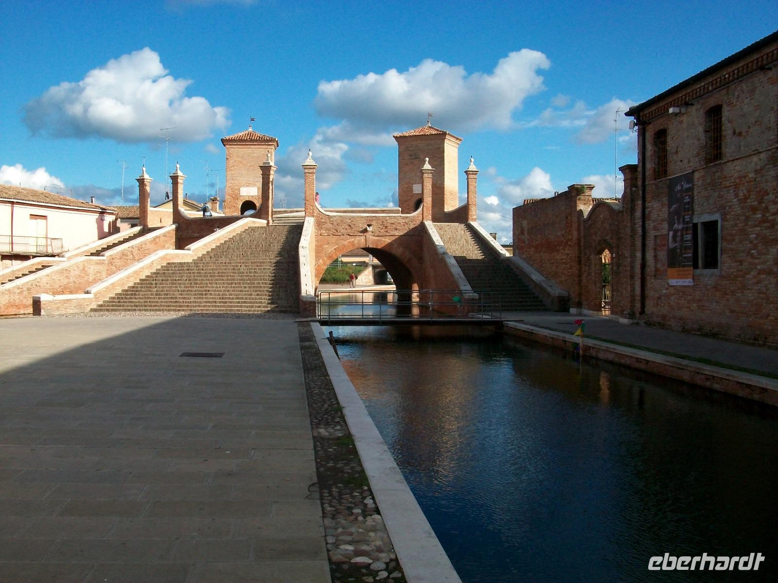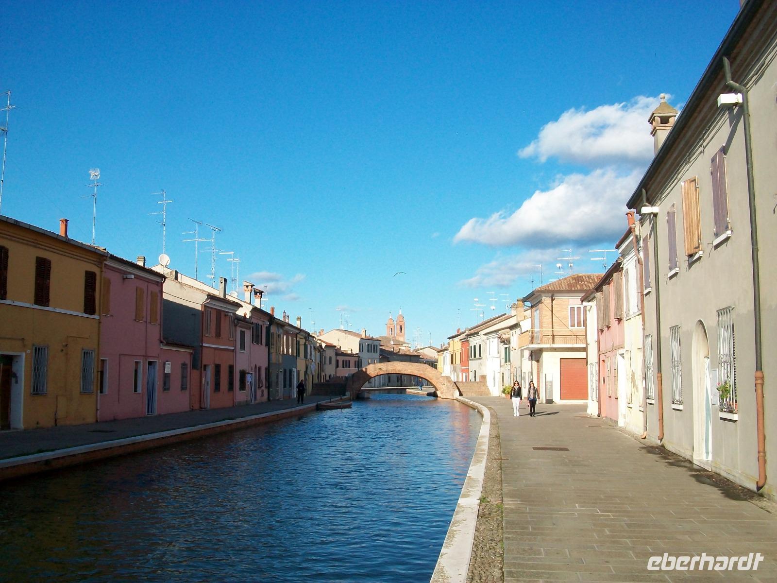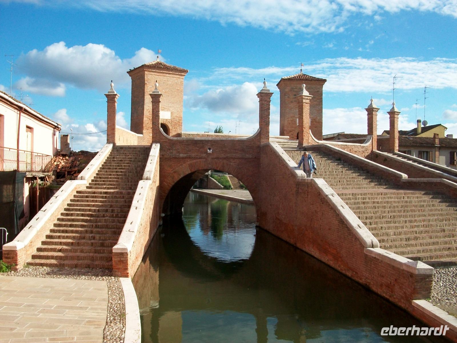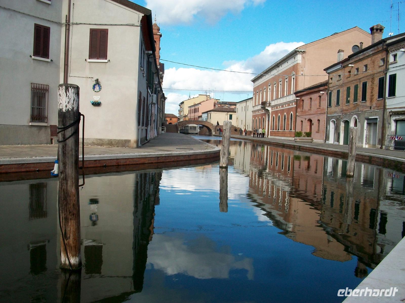 Am Nachmittag steht noch eine besondere Stadt auf dem Programm: Comaccio. Als wir anlangen hat sich doch noch die Sonne herausgewagt und wir können in diesem überaus reizvollen Ort eine schöne Zeit verbringen. Durchzogen wird Comaccio von Kanälen die mit kleinen Brücken aus Ziegelsteinen verbunden sind. Diese Bauwerke sind nicht nur praktisch, sie sehen auch noch wunderschön aus und bilden ein Gesamtkunstwerk. Zusammen mit den Häusern und den Kanälen macht das schon fast einen venezianischen Eindruck.