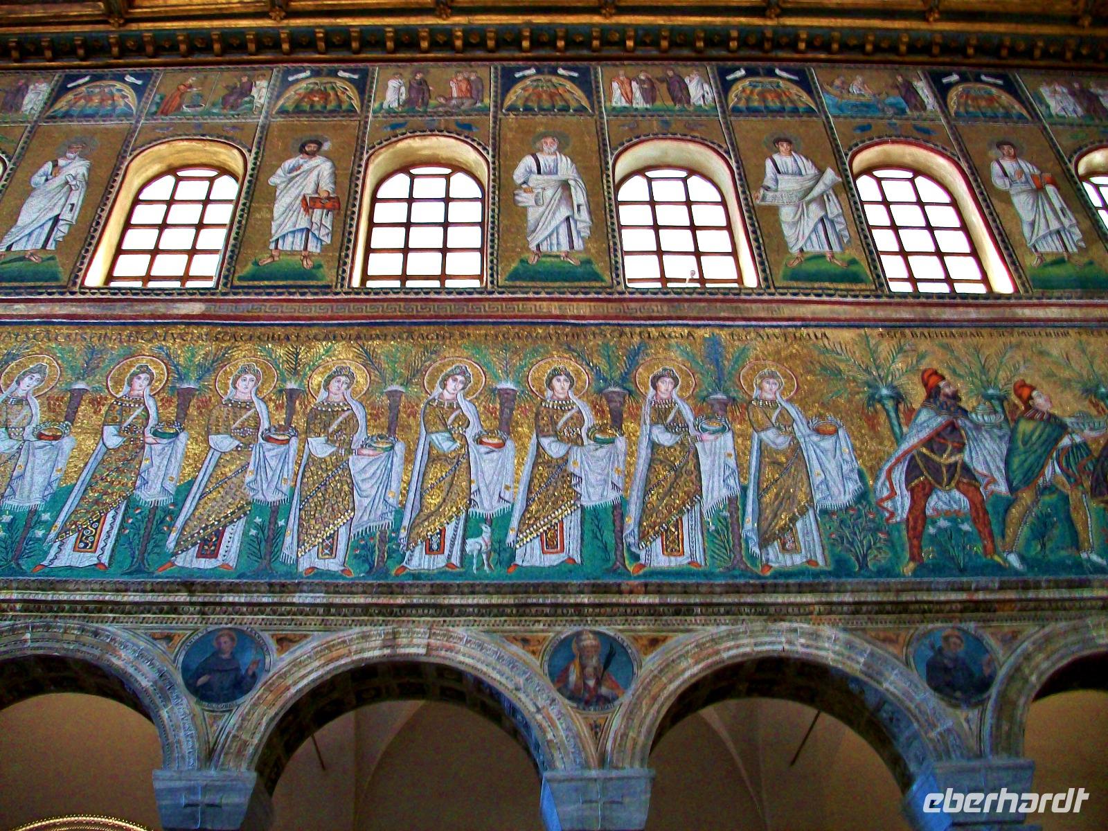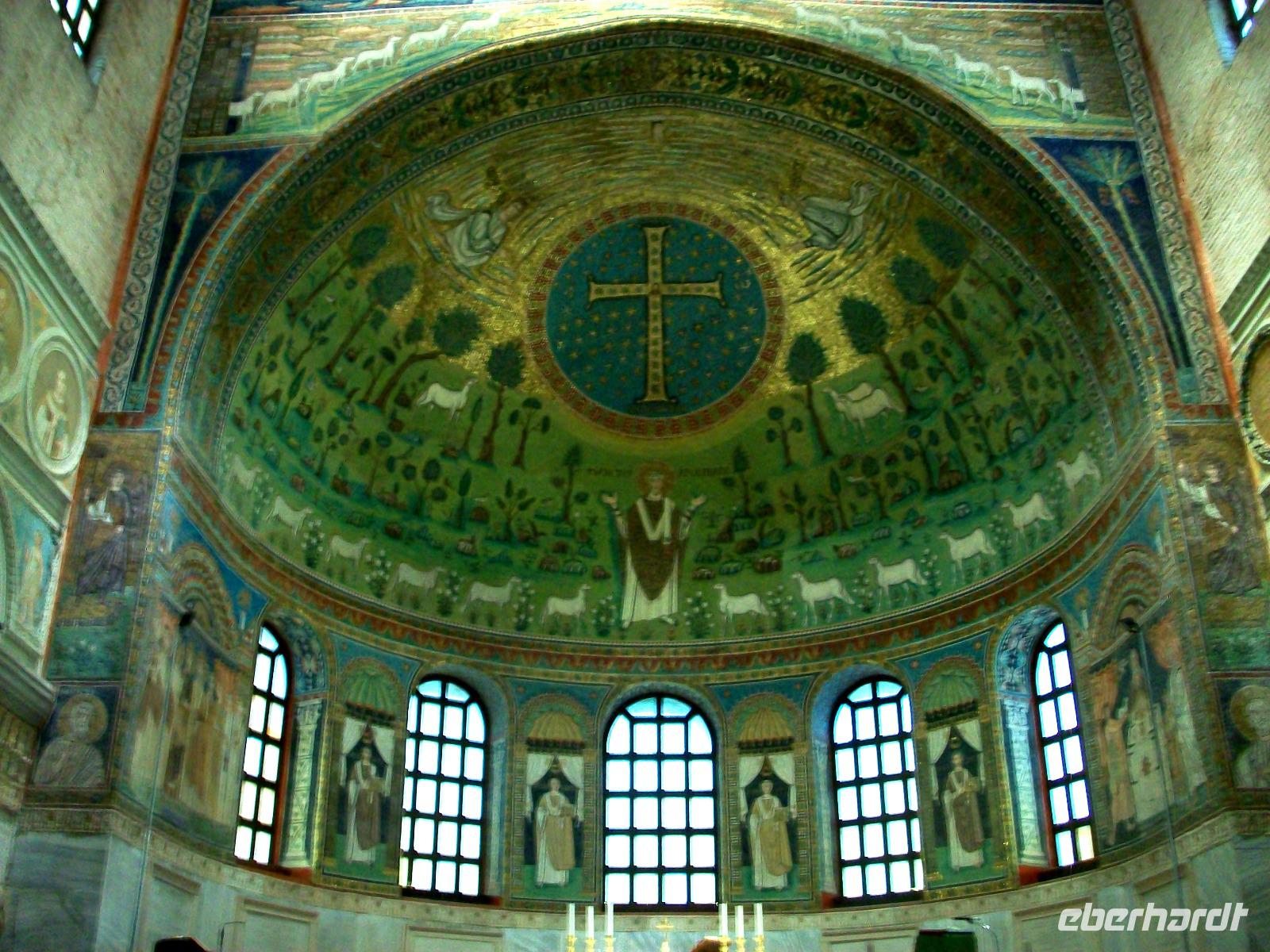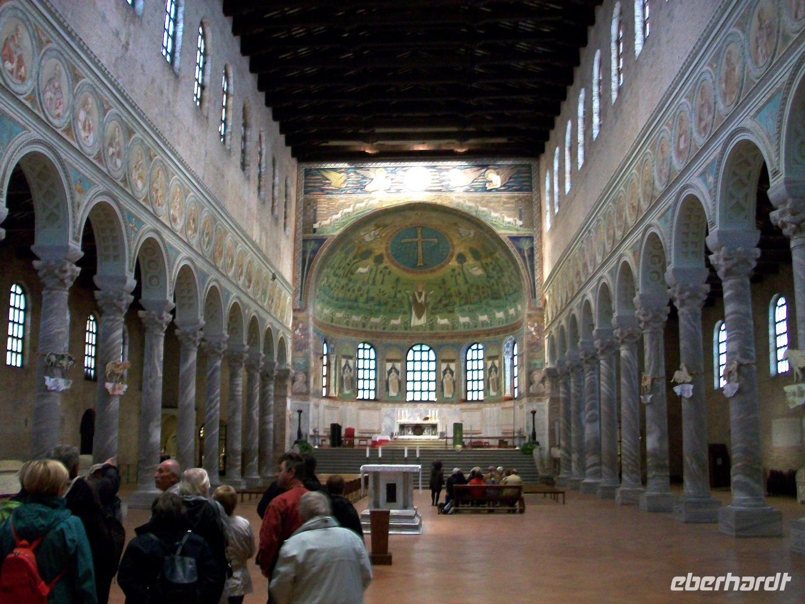 Am Rand dieser Metropole erwartet uns ein wichtiges Baudenkmal, es ist die Kirche Saint Apollinare in Classe. In einer wichtigen Epoche der Zeit gab es einen starken byzantinischen Einfluss der sich aber nur im Inneren der Kirchen so richtig zeigt. Als wir das Gotteshaus betreten staunen wir über die schönen Mosaiken die besonders die Apsis zieren und das Auge des Betrachters erfreuen, so dass wir uns fast in einer orthodoxen Kirche wähnen.