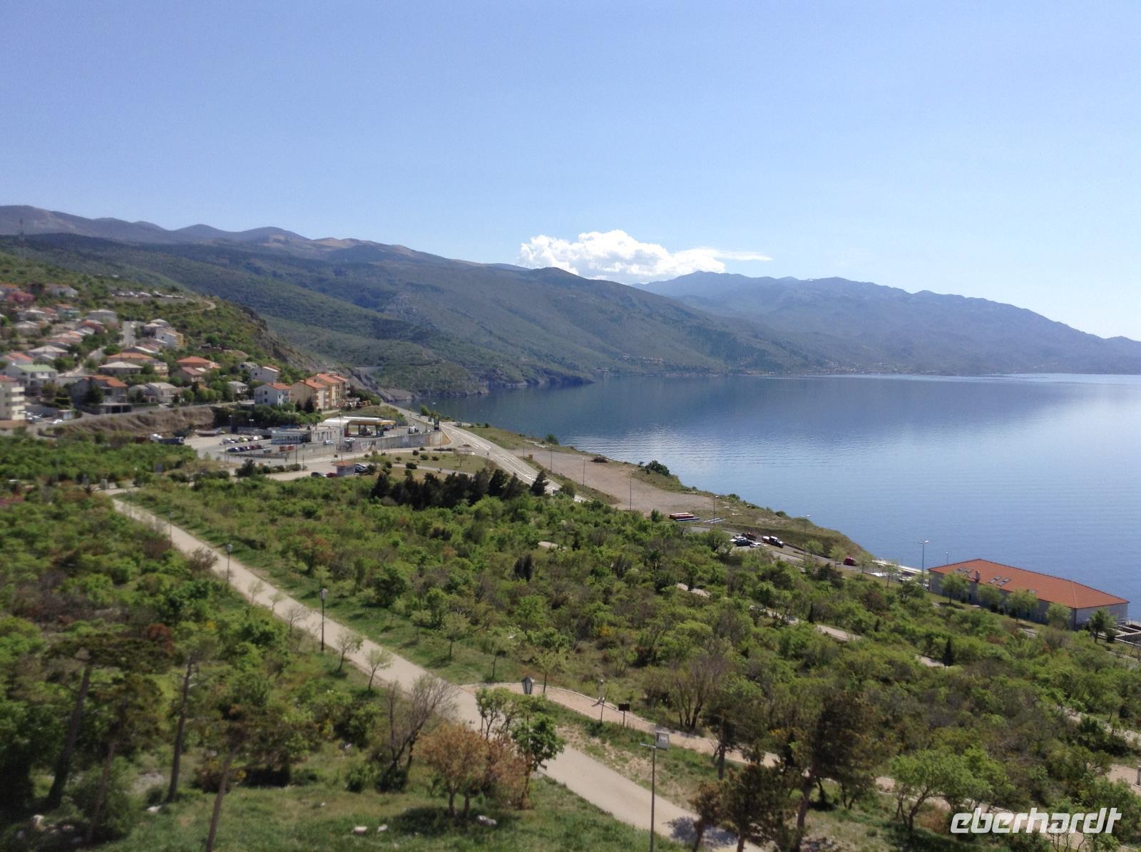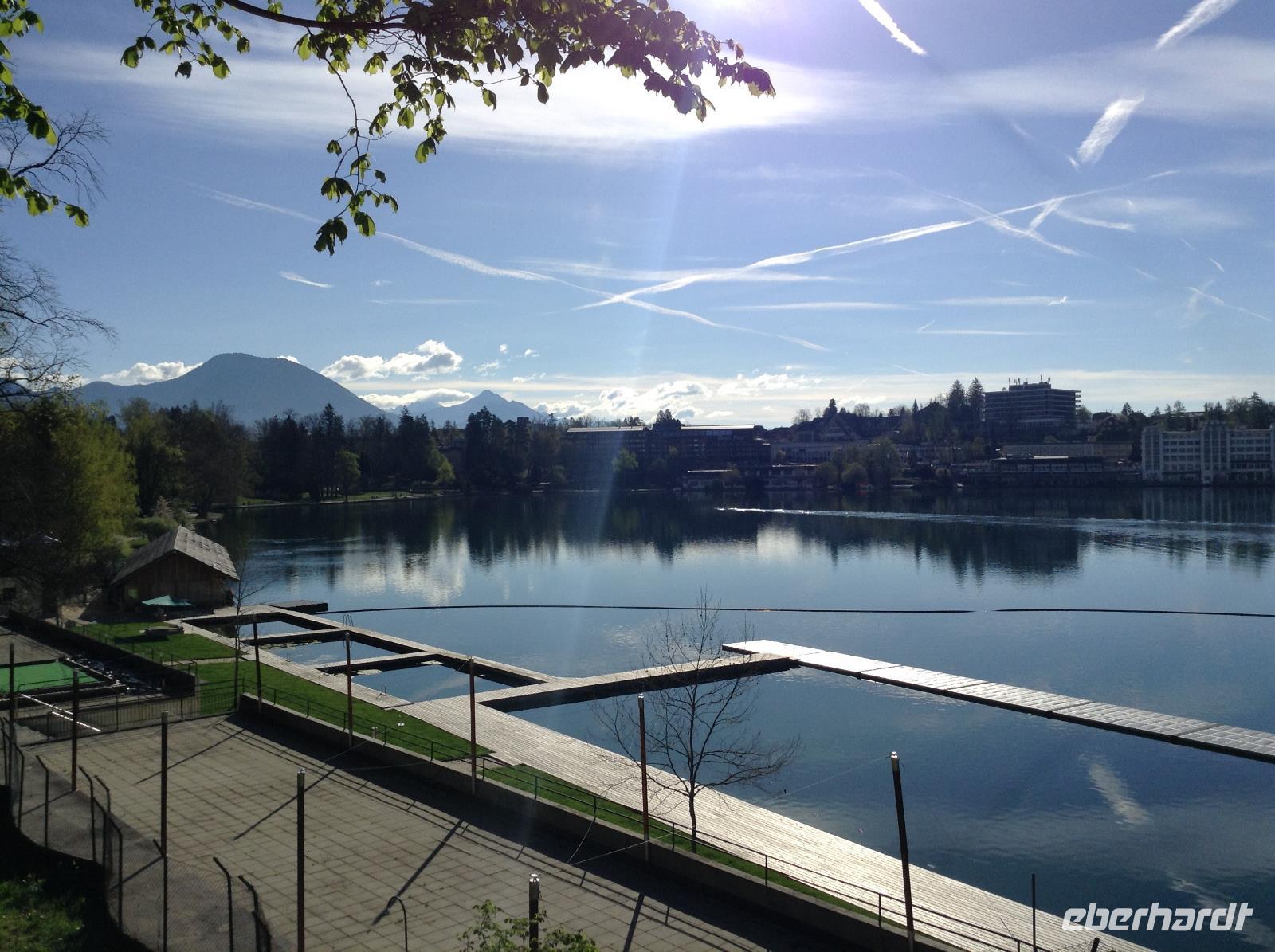 In Bled kommen wir dann bei Abendsonne an. Es ist noch etwas Zeit für einen ersten Spaziergang zum See. In der Abendsonne leuchtet die Bleder Burg hoch über dem See.