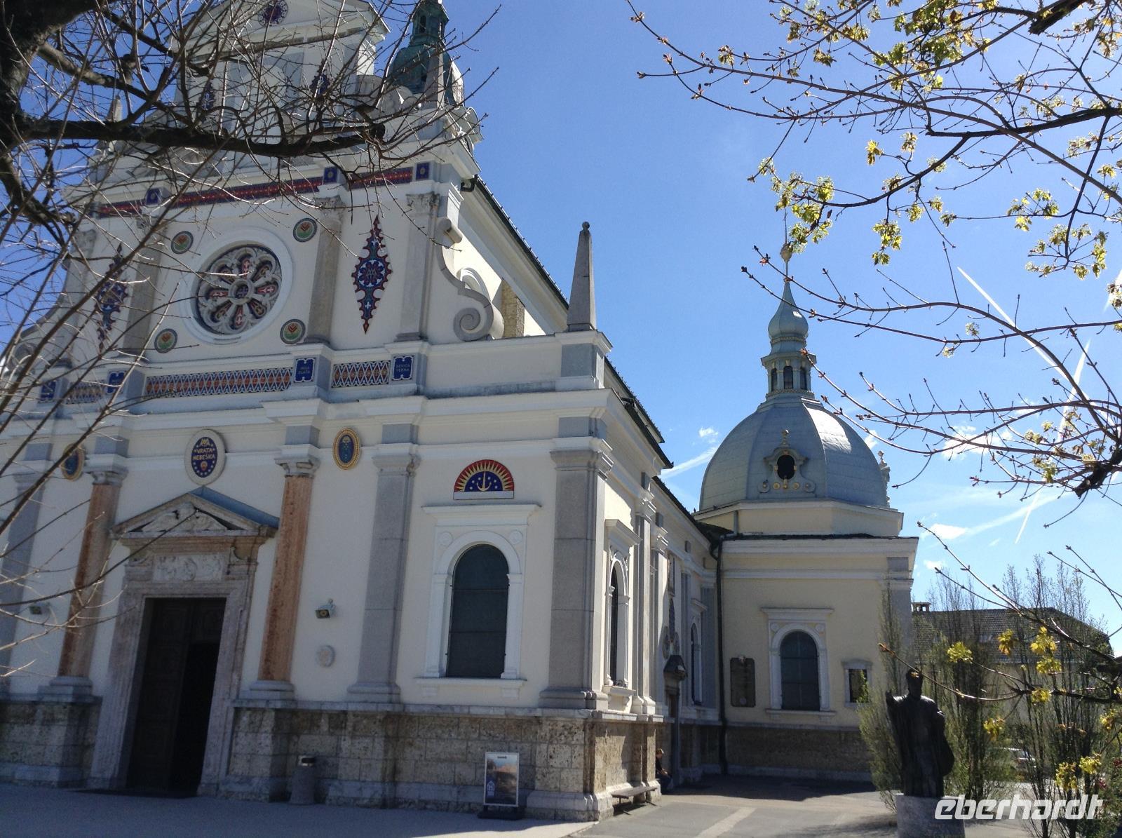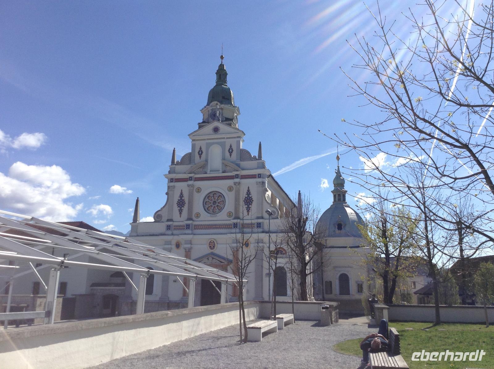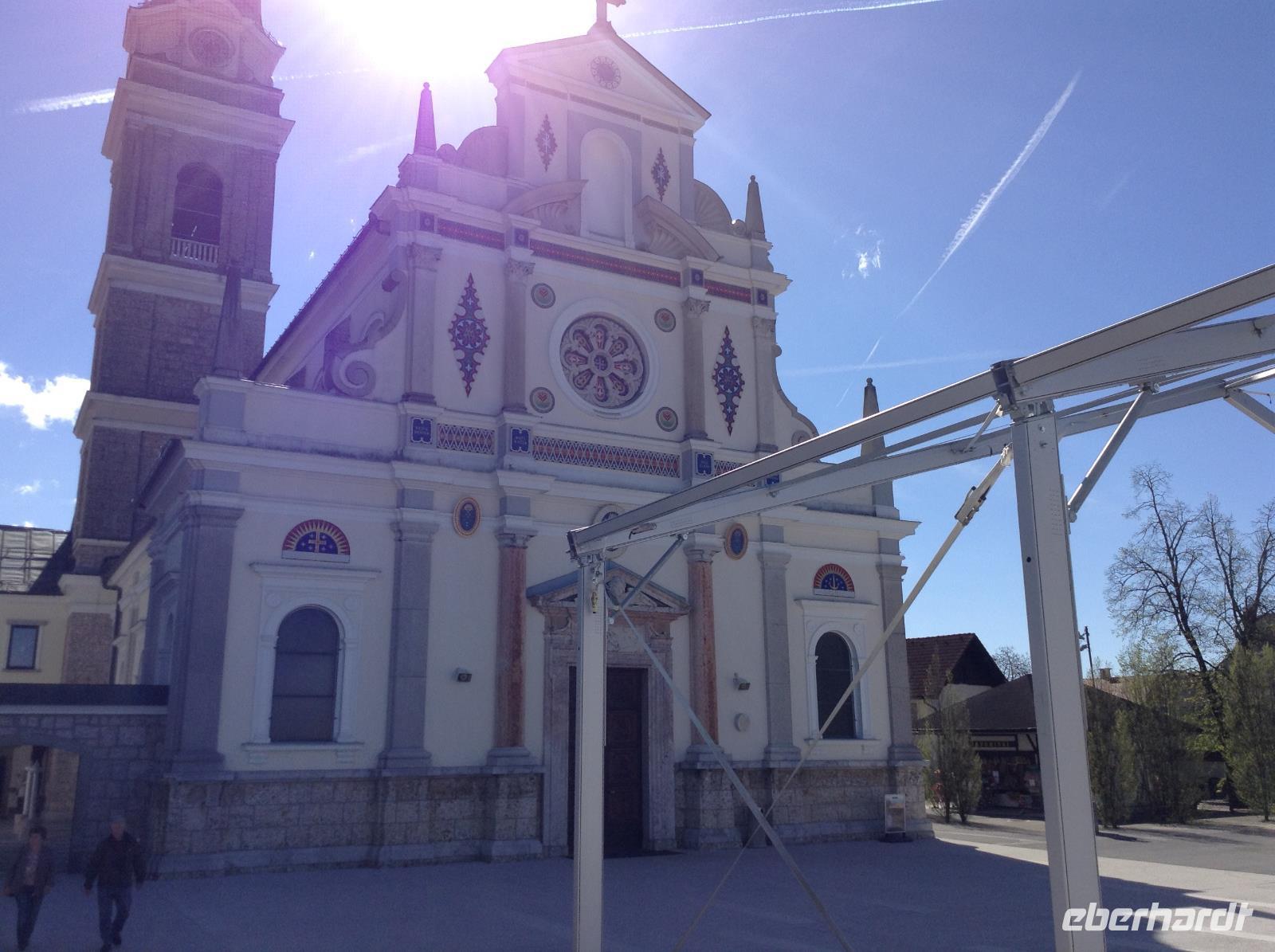 Anschießend fahren wir zur wichtigsten slowenischen Pilgerkirche nach Brezje. Wir geniessen von da auch einen wunderschönen Blick zurück in die noch teils verschneiten Berge.