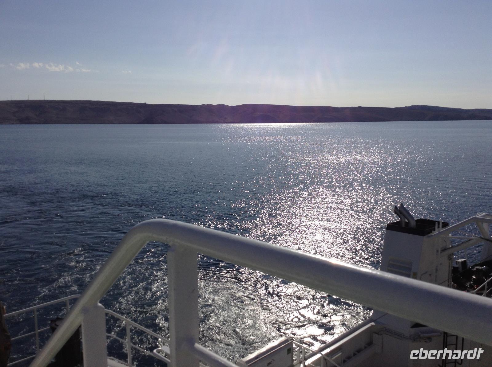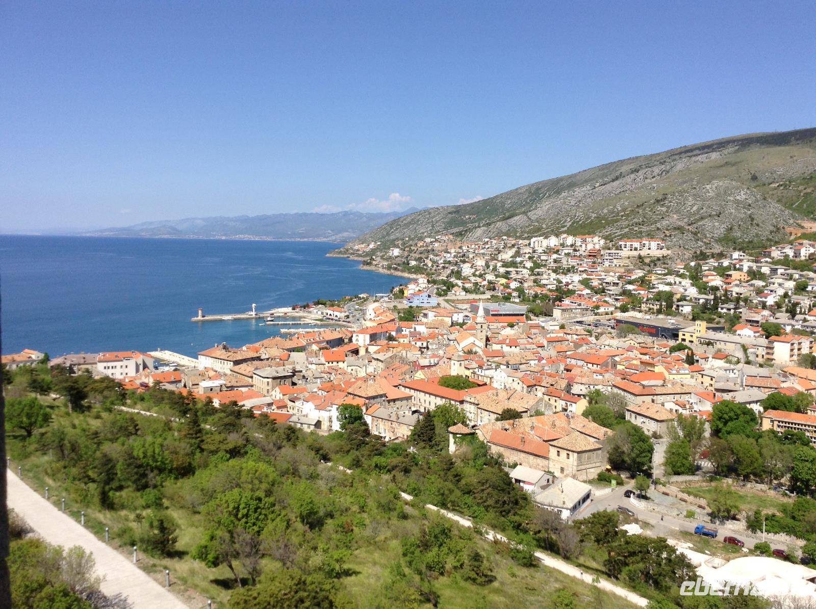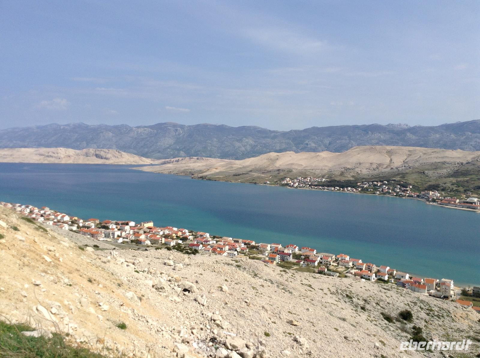 Im Ortszentrum treffen wir auf unsere Stadtführerin und fahren zuerst zur Uskokenburg hinauf. Vom Hügel vor dem Ort gibt es einen fantastischen Rundblick auf das Meer, die vorgelagerten Inseln und die Berge. Es gibt eine Führung in der alten Burg und etwas freie Zeit zur eigenen Erkundung. Dann geht es zurück auf einen Stadtbummel mit Erklärungen nach Senj. Es geht weiter mit dem Bus nach Prizna, wo am Nachmittag unser Fährüberfahrt zur Insel Pag gebucht ist. Auf Pag angekommen, geht es die kleine Inselstrasse entlang zur Nordspitze, nach Lun. Dort ist unser Hotel für die nächste Nacht. Die Buseinfahrt in Lun war abenteuerlich, unser Busfahrer ganz schön verzweifelt ! Aber es hat sich gelohnt, das Hotel war echt schön und sehr gut gelegen, direkt am Meer.