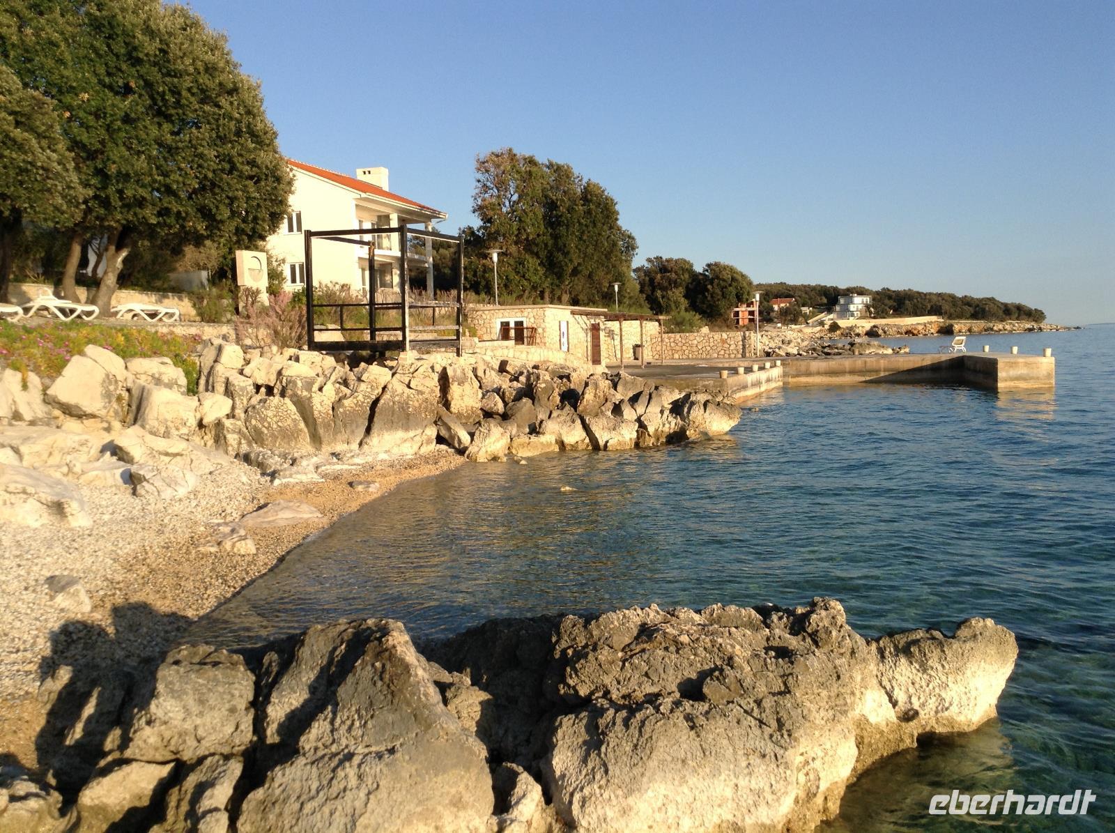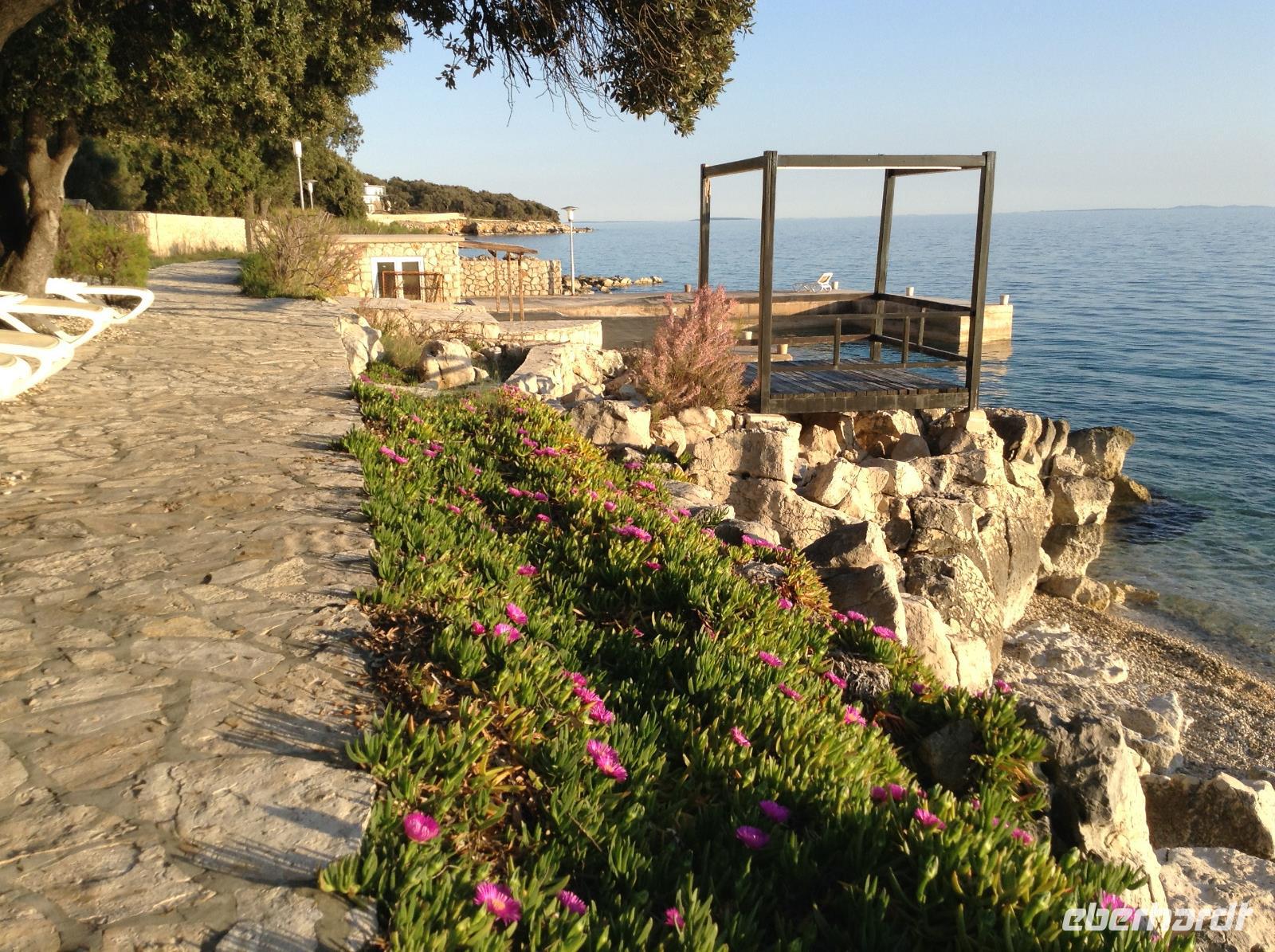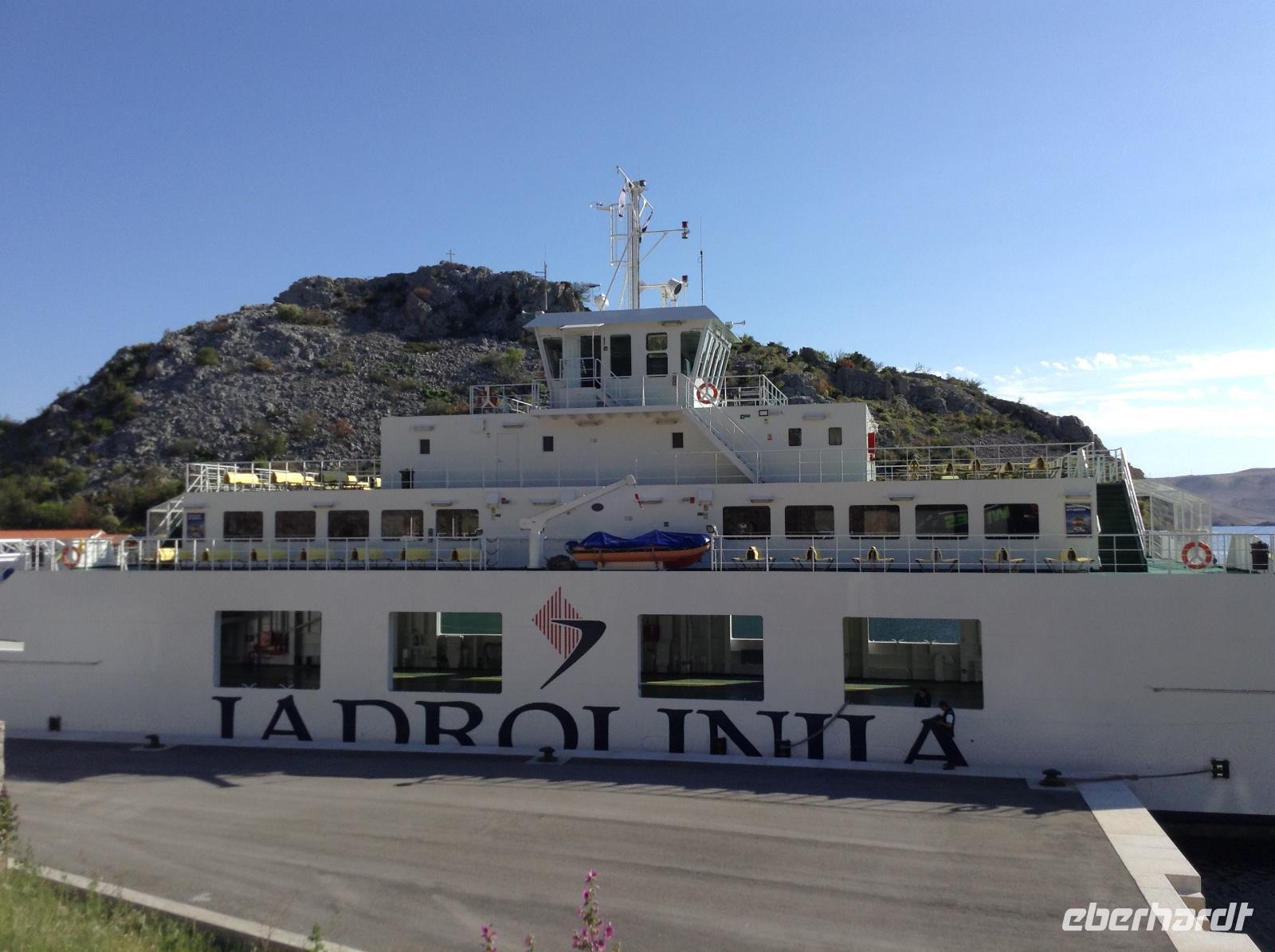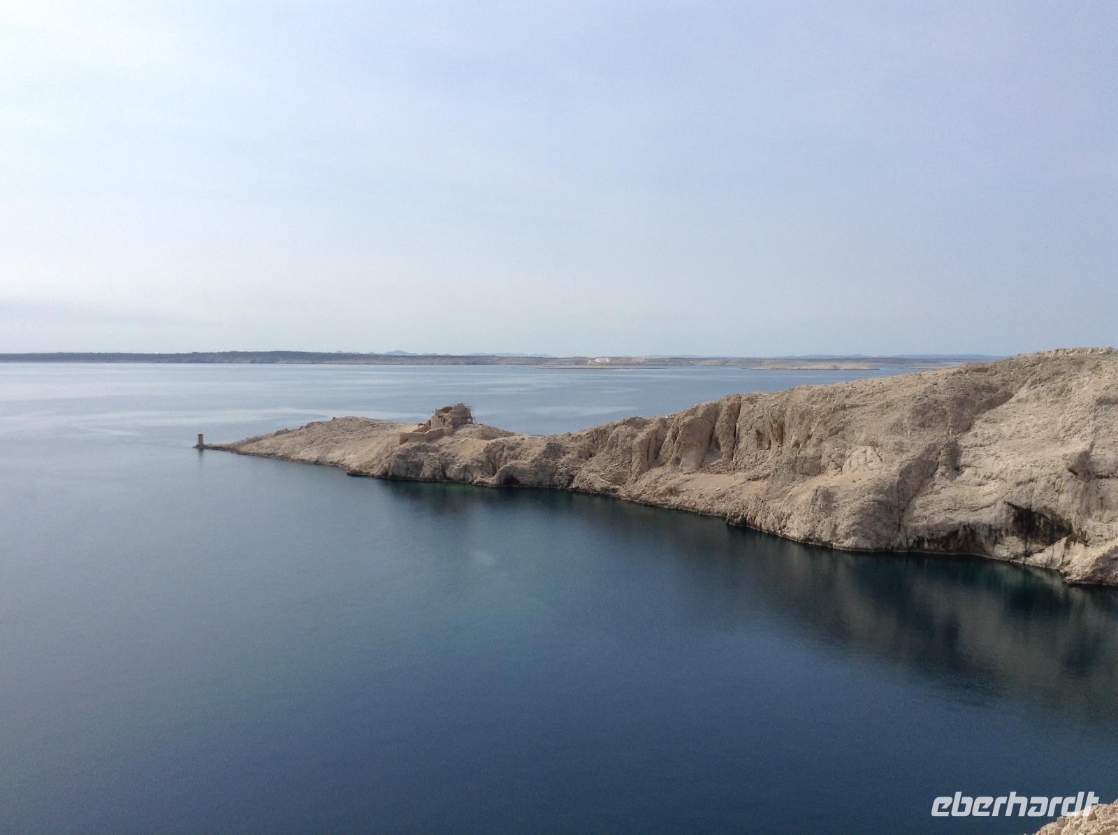 Im Ortszentrum treffen wir auf unsere Stadtführerin und fahren zuerst zur Uskokenburg hinauf. Vom Hügel vor dem Ort gibt es einen fantastischen Rundblick auf das Meer, die vorgelagerten Inseln und die Berge. Es gibt eine Führung in der alten Burg und etwas freie Zeit zur eigenen Erkundung. Dann geht es zurück auf einen Stadtbummel mit Erklärungen nach Senj. Es geht weiter mit dem Bus nach Prizna, wo am Nachmittag unser Fährüberfahrt zur Insel Pag gebucht ist. Auf Pag angekommen, geht es die kleine Inselstrasse entlang zur Nordspitze, nach Lun. Dort ist unser Hotel für die nächste Nacht. Die Buseinfahrt in Lun war abenteuerlich, unser Busfahrer ganz schön verzweifelt ! Aber es hat sich gelohnt, das Hotel war echt schön und sehr gut gelegen, direkt am Meer.