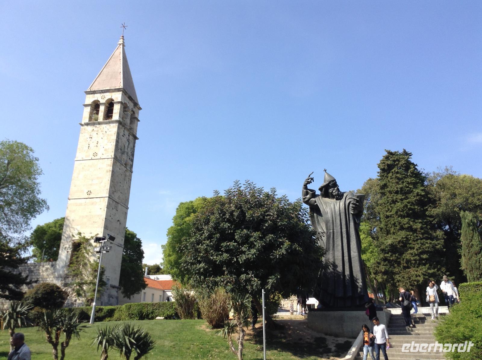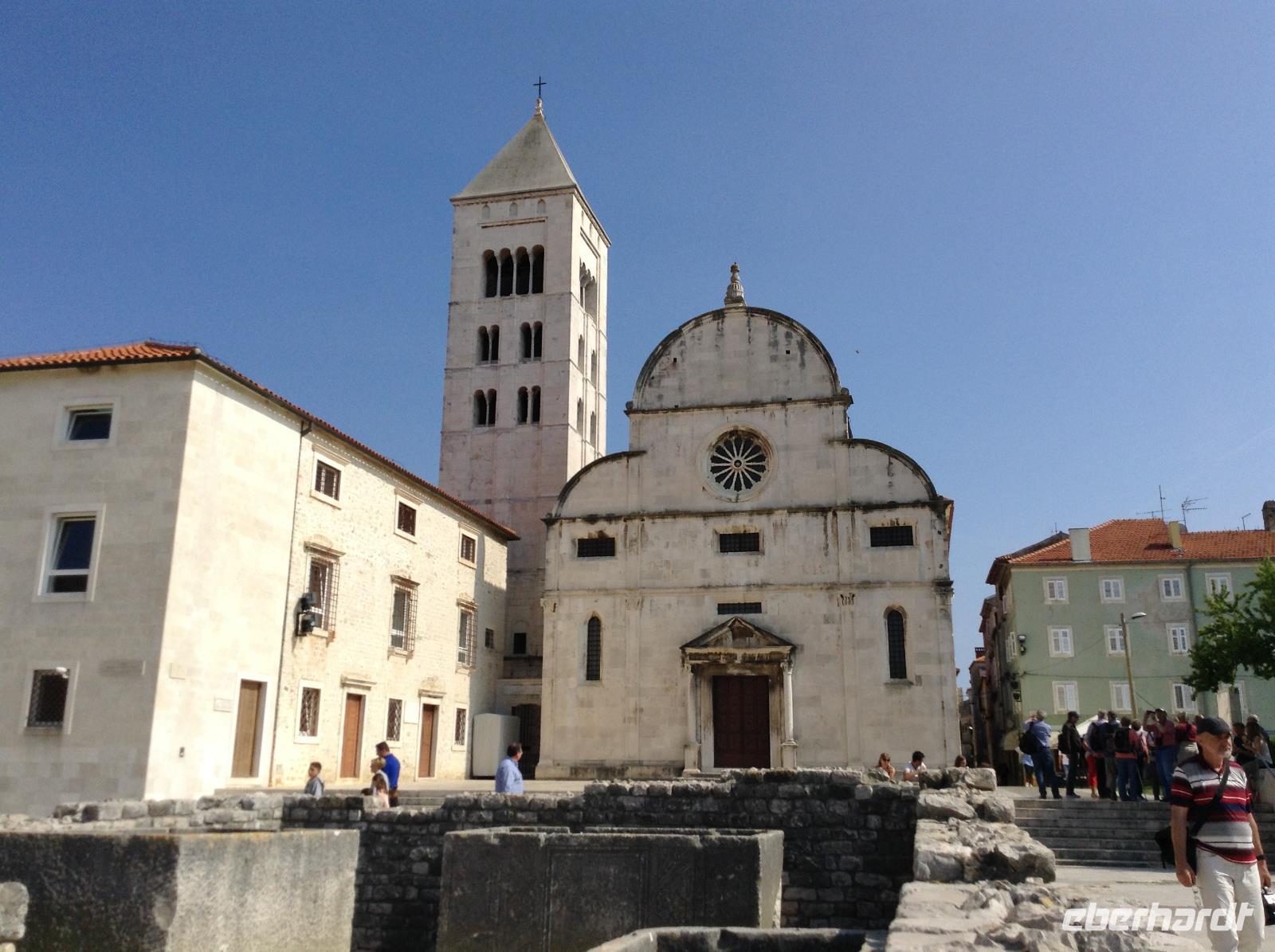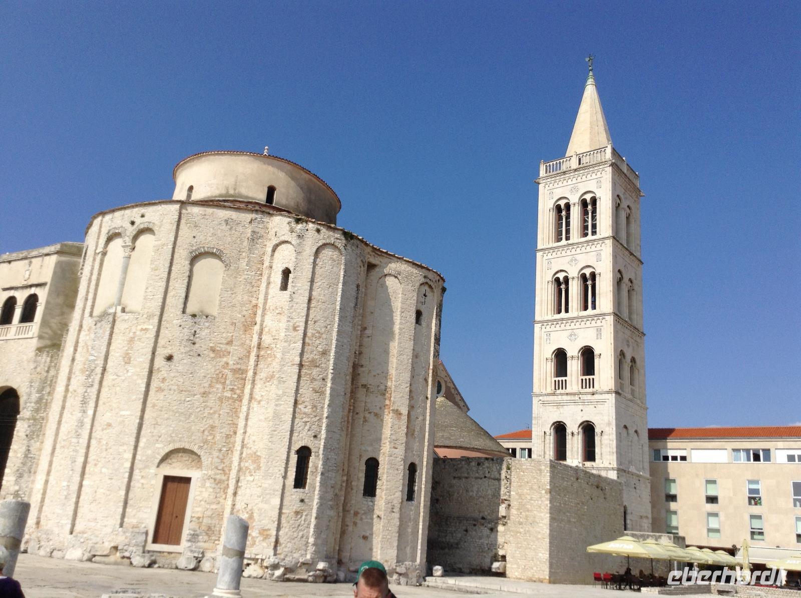 Unser Besuch gilt vor allem der uralten vorromanischen Kirche, in der schon einige kroatische Könige gekrönt wurden. Jeder erkundet den kleinen Ort auf seine Weise. Es gibt Eis, oder Mittagessen, oder ein Mitbringsel. Dann geht es nach Zadar, wo unsere Stadtführung uns am Hafen erwartet. Gemeinsam bummeln wir durch die Stadt, besuchen die Kathedrale, die Reste des alten Forum Romanum, die Rotunde der Donatskirche und schlendern am Ufer entlang zur modernen Sonnenuhr und Wasseroegel. Die Stadtführung ist sehr informativ, trotzdem freuen sich auch alle über etwas Freizeit in den Gassen der Stadt.