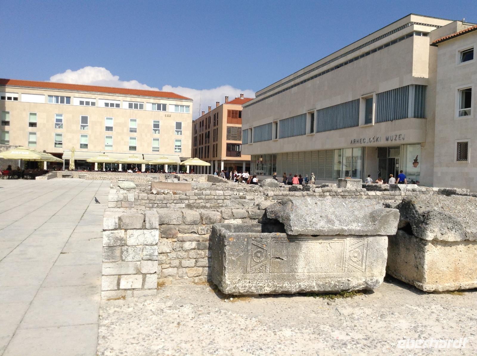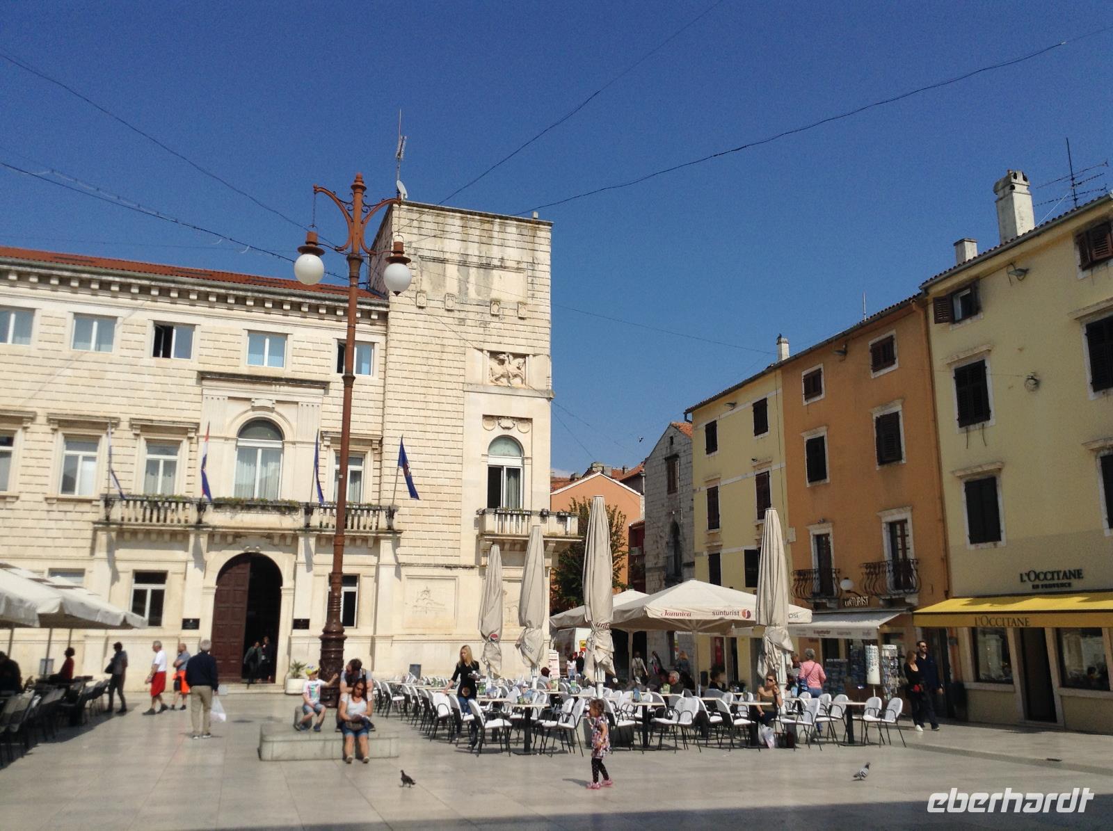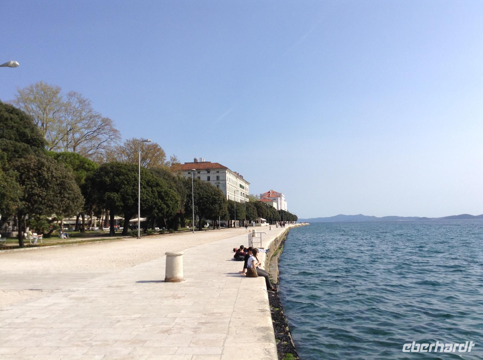 Unser Besuch gilt vor allem der uralten vorromanischen Kirche, in der schon einige kroatische Könige gekrönt wurden. Jeder erkundet den kleinen Ort auf seine Weise. Es gibt Eis, oder Mittagessen, oder ein Mitbringsel. Dann geht es nach Zadar, wo unsere Stadtführung uns am Hafen erwartet. Gemeinsam bummeln wir durch die Stadt, besuchen die Kathedrale, die Reste des alten Forum Romanum, die Rotunde der Donatskirche und schlendern am Ufer entlang zur modernen Sonnenuhr und Wasseroegel. Die Stadtführung ist sehr informativ, trotzdem freuen sich auch alle über etwas Freizeit in den Gassen der Stadt.