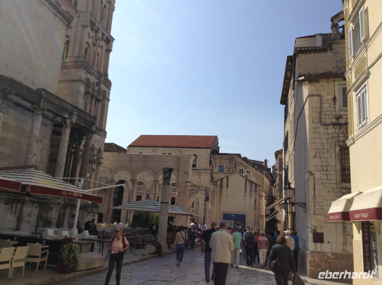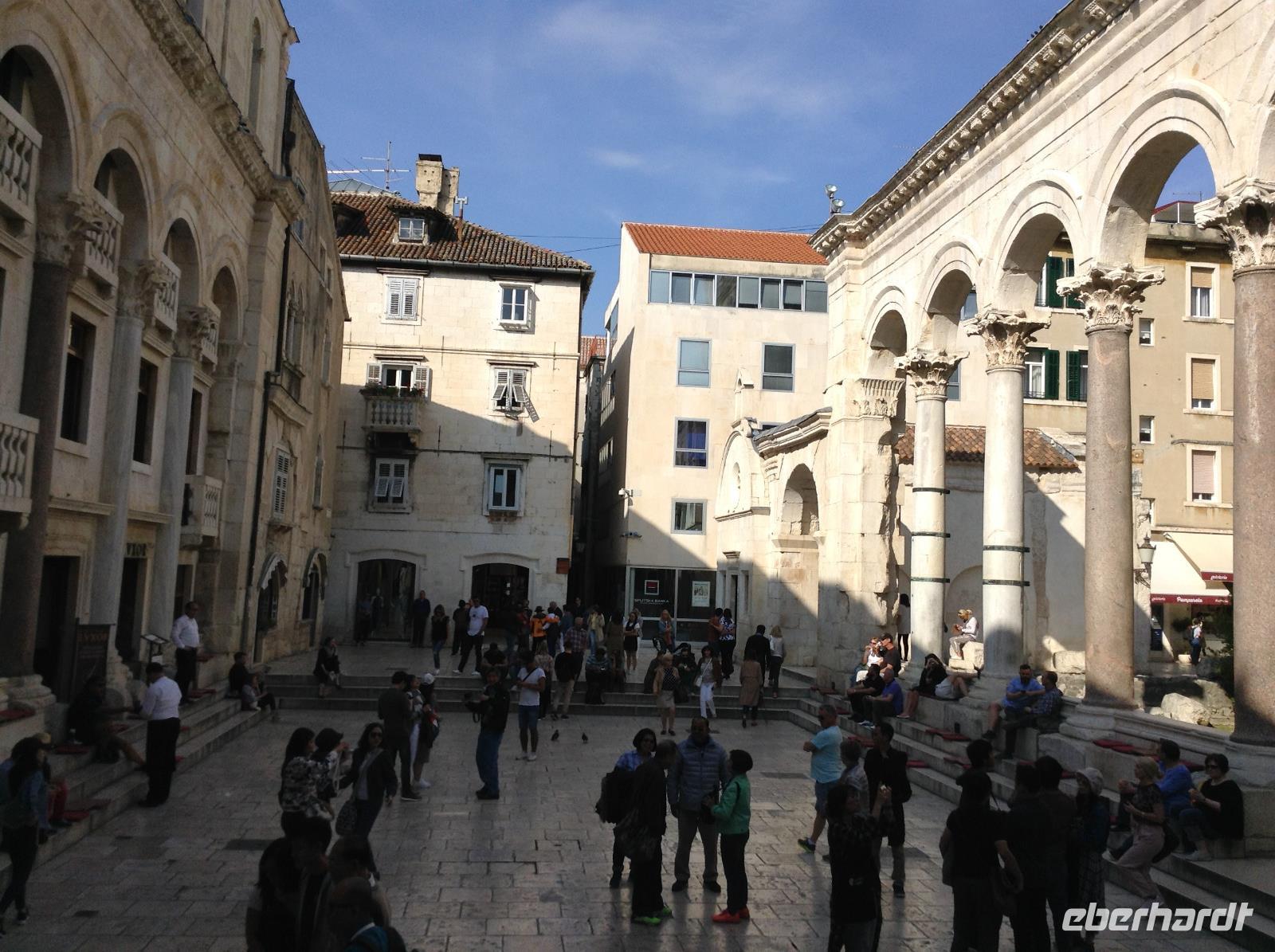 Der Fluss Krka hat hier eine wundervolle Lanschaft aus Bächen, Seen und unzähligen Wasserfällen geschaffen. Gemeinsam spazieren wir durch diesen herrlichen Park, bleiben immer wieder stehen, fotografieren und geniessen, was wir da sehen. Mit dem Schiff geht es anschließend weiter nach Skradin. Dort holt uns unser Bus ab. Nachmittags fahren wir weiter nach Split. Auf römischen Spuren wandeln wir mit unserer Stadtführerin durch diese zauberhafte alte Stadt. Es beginnt eine Zeitreise von 1700 Jahren. Da ist mächtige alte Palast inmitten der Stadt, vom römischen Kaiser errichtet. Daneben herrscht ein munteres Treiben in den engen Gassen, auf der Uferpromenade. Wir lauschen der traditionellen Volksmusik, die immer wieder dargeboten wird.