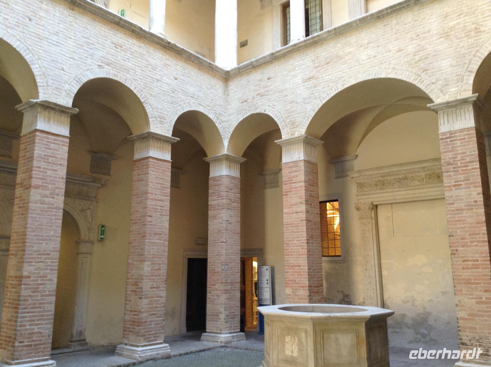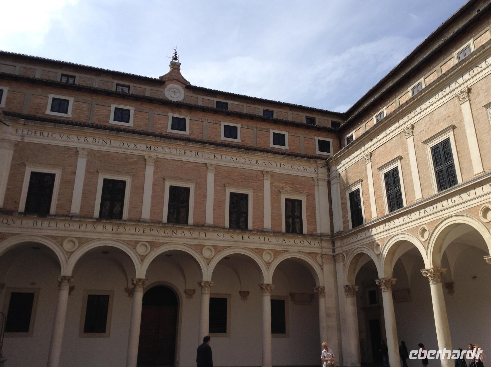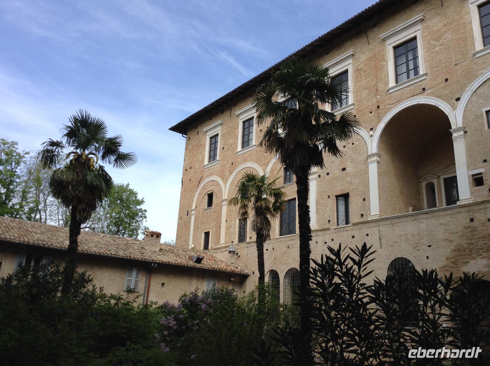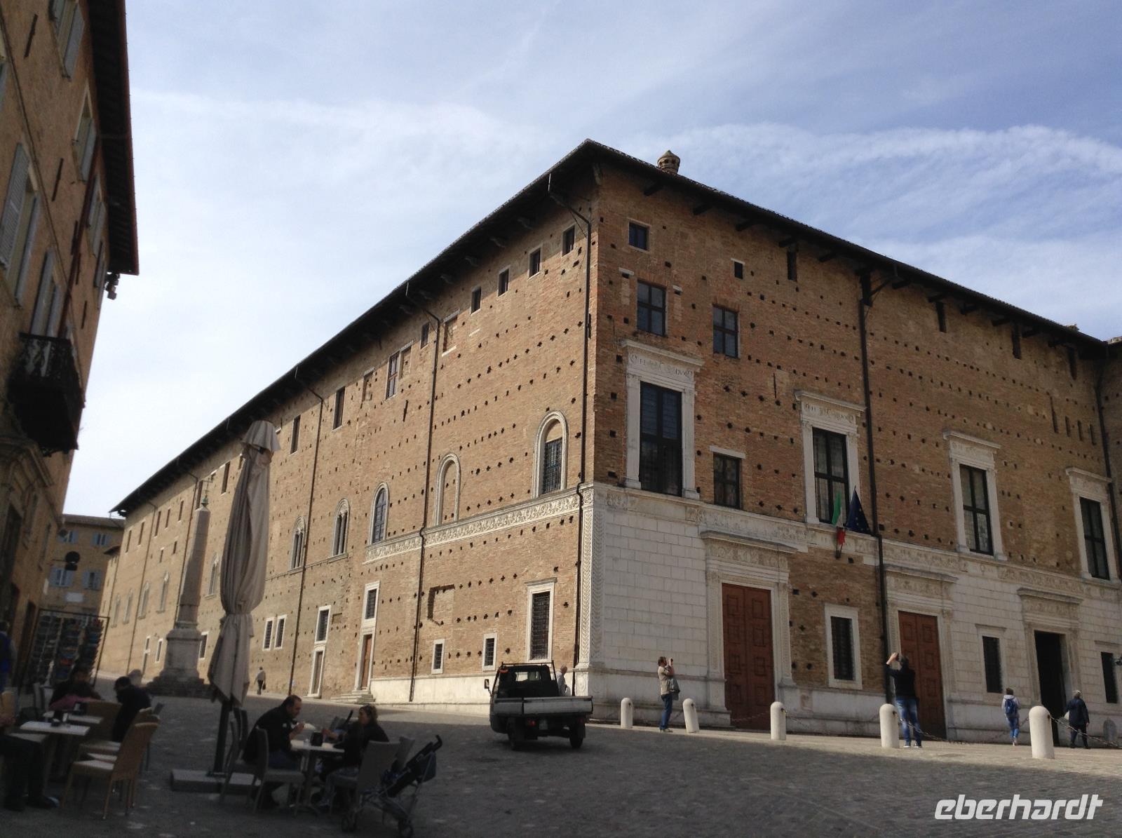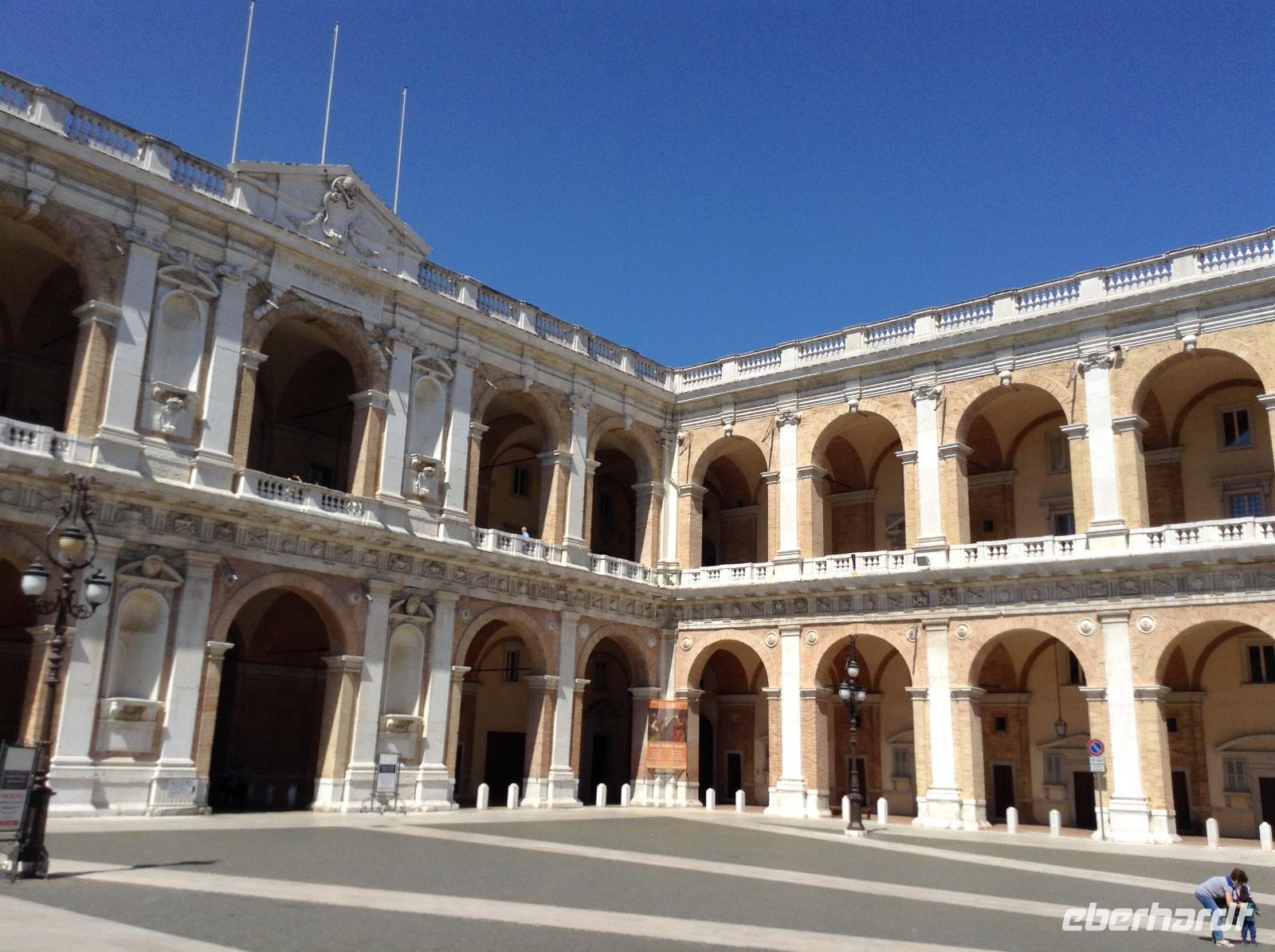Unser erstes Ziel heute ist die alte Renaissancestadt Urbino. Oben auf dem Berg angekommen, führt uns der Fußweg aufwärts bis zur Piazza della Republica. Dort beginnt die Erkundung auf eigene Faust. Die Stadt hat so einiges zu bieten: Galerien, Ausstellungen, enge Gassen, hübsche Restaurants und Läden. Wer bis zum Aussichtspunkt hoch über der Stadt läuft wird mit einem tollen Rundblick belohnt.