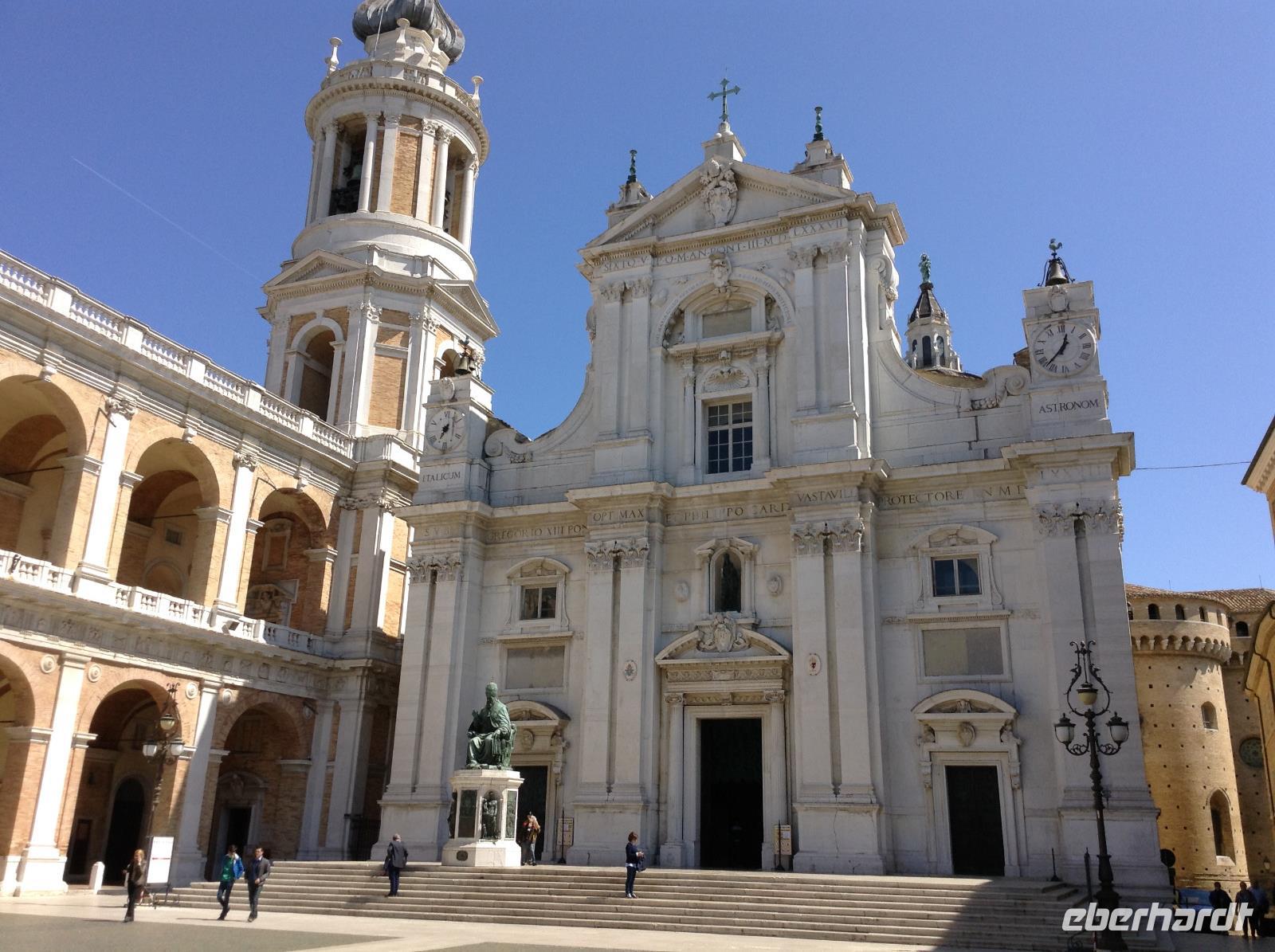 Nach zwei Stunden geht es von hier aus weiter zum wichtigsten italienischen Wallfahrtsort Loreto. Wir gelangen mit unserem Bus hinauf auf einen Hügel und staunen über den Anblick des mächtigen Gebäudekomplexes. In der Basilika ist das Haus der Gottesmutter zu sehen, eine ganz besonderer Platz ! Zahlreiche Pilger und Gläugibe beten hier, es ist eine besondere Atmosphäre. Die Kirche ist wunderschön.