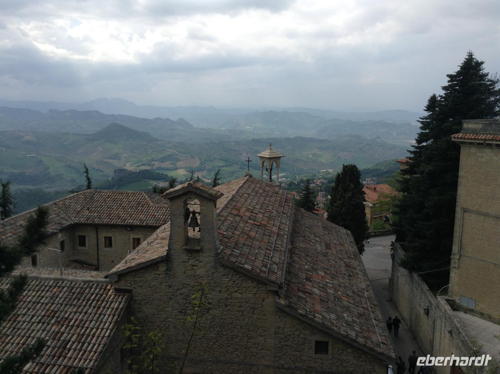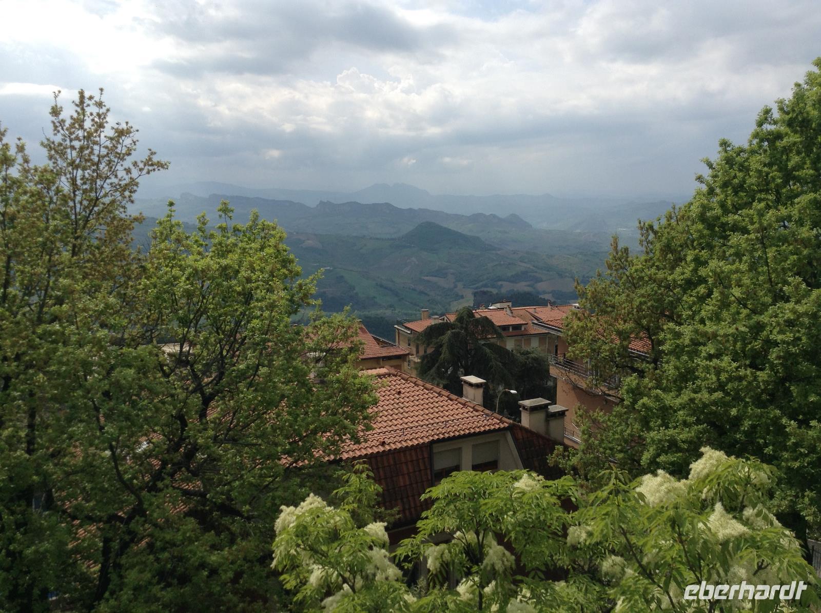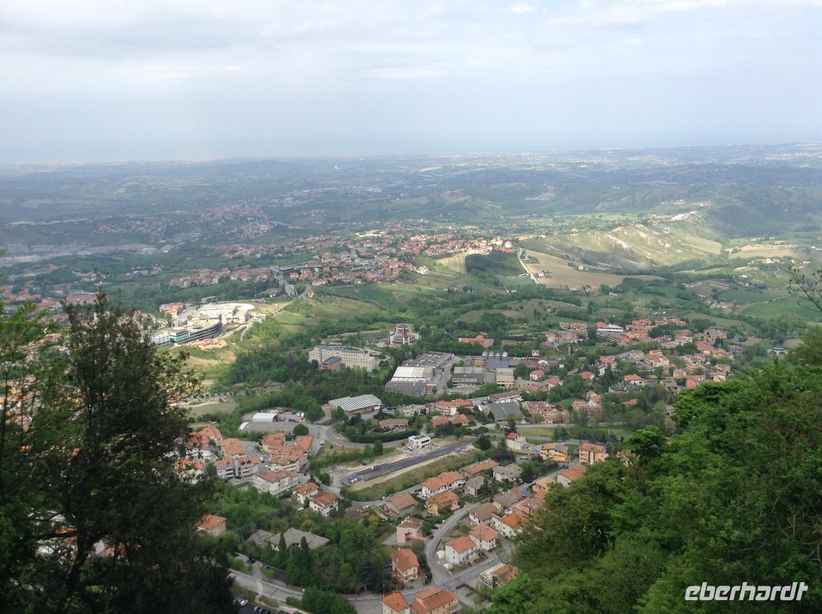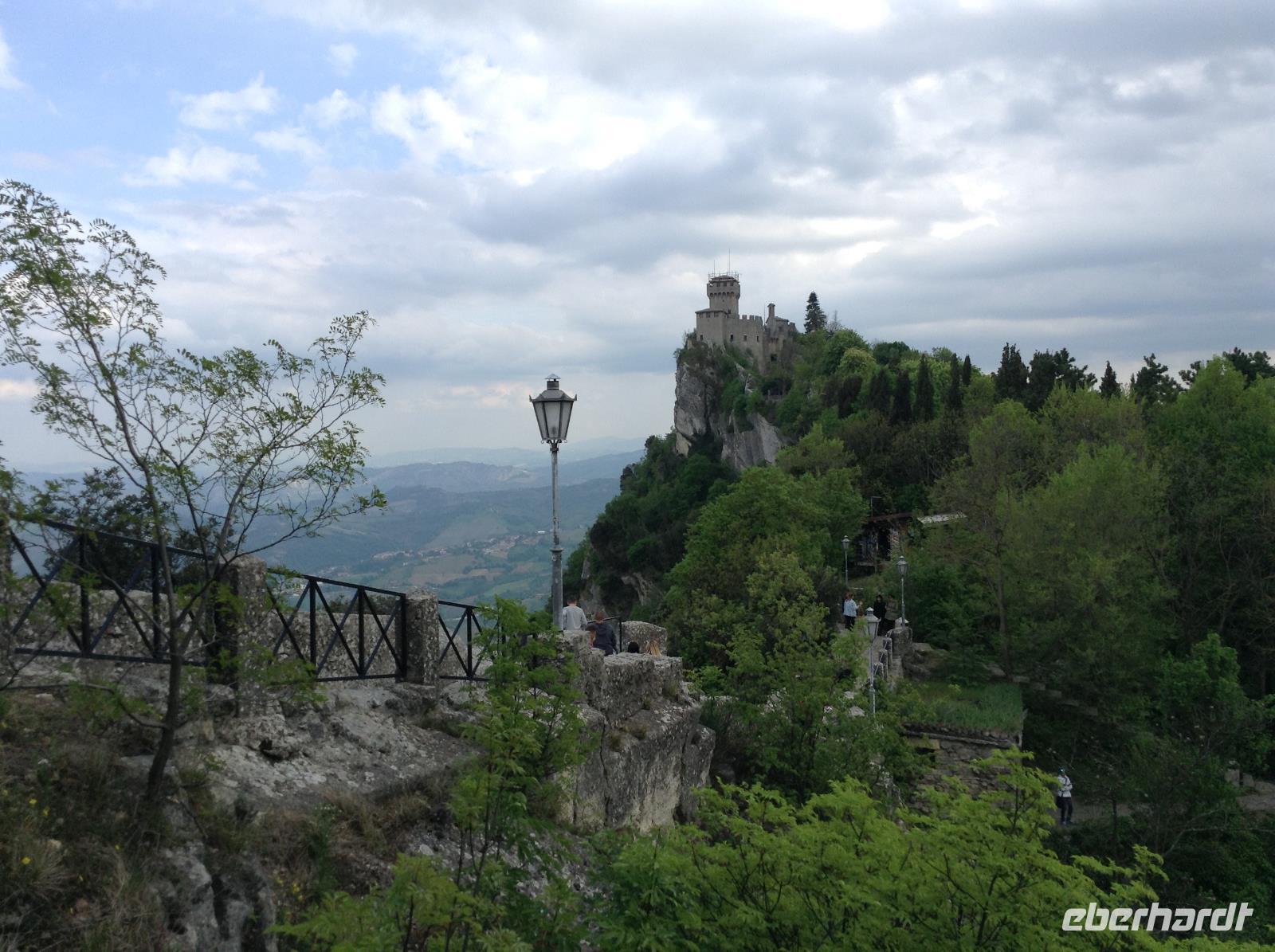 Ein weiterer interessanter Programmpunkt steht heute noch auf dem Plan. Wir fahren nach San Marino. Der Monte Titano ist schon von weitem zu sehen. Über etliche Serpentinen geht es hinauf zum Eingang des kleinen Zwergenstaates. Unweit des Parkplatzes beginnt die Altstadt mit ihren Gassen, einer Vielzahl an Läden und Restaurants, den alten Festungsmauern. Es ist Osterwochenende und viele Besucher da. Wir geniessen eine tolle Aussicht ins Umland. Zurück am Bus ging es weiter in Richtung Küste. In Milano Marittima beziehen wir Hotel für 2 Nächte.