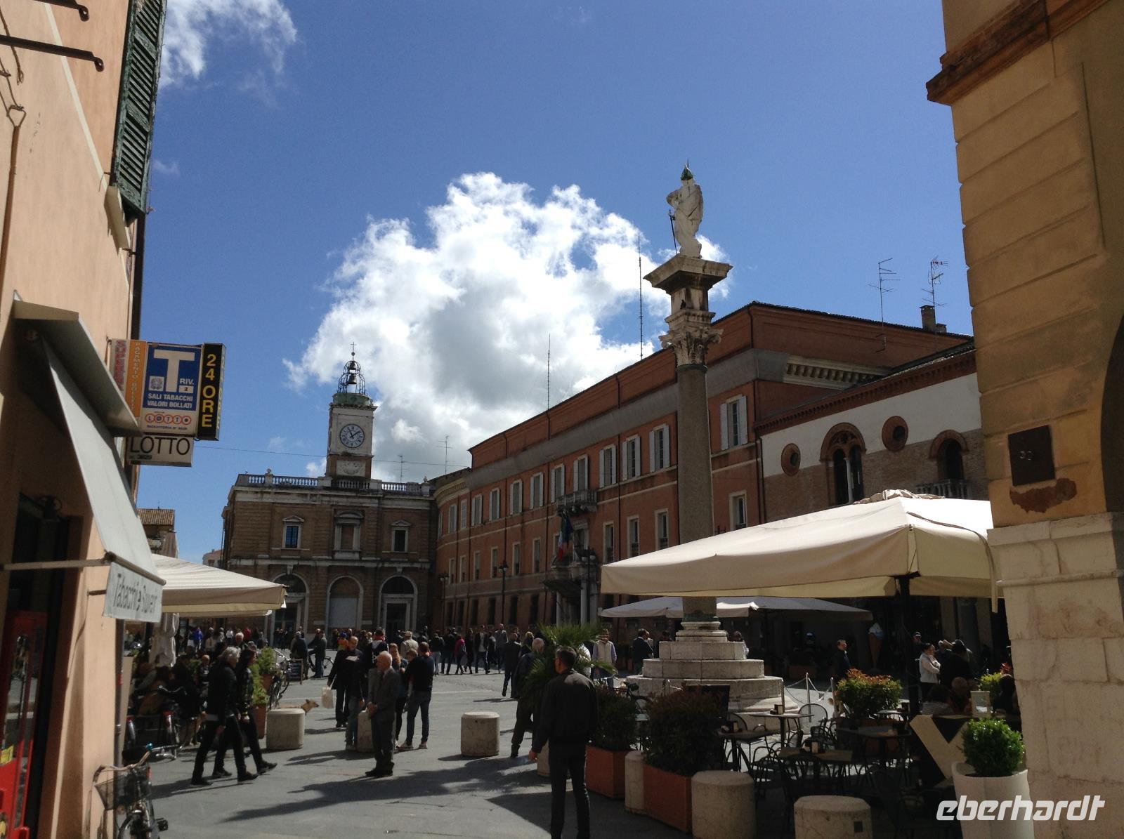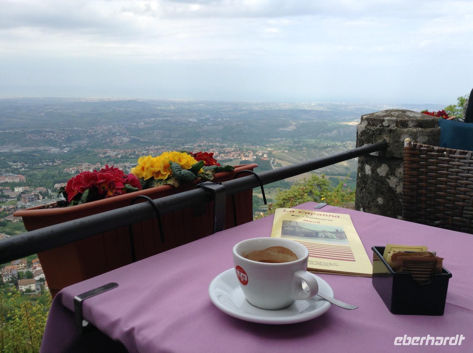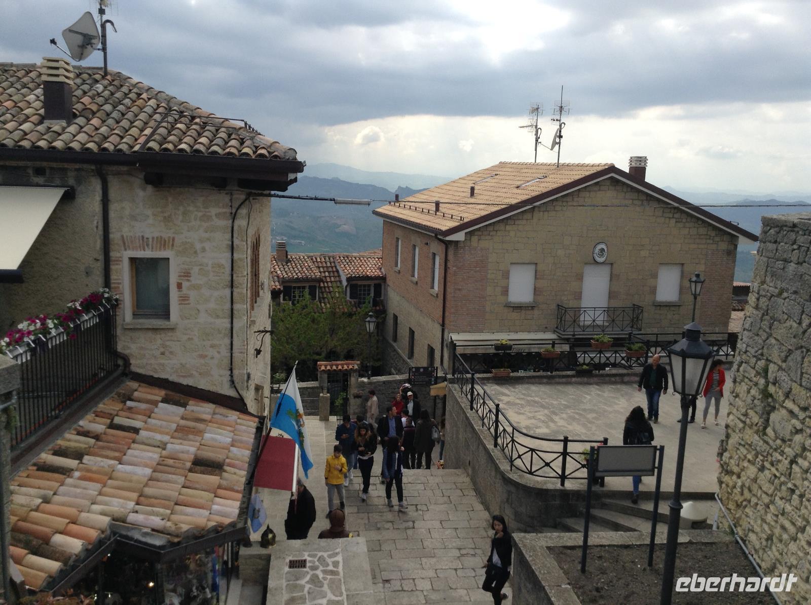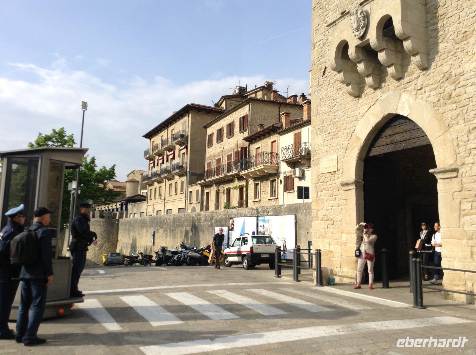 Ein weiterer interessanter Programmpunkt steht heute noch auf dem Plan. Wir fahren nach San Marino. Der Monte Titano ist schon von weitem zu sehen. Über etliche Serpentinen geht es hinauf zum Eingang des kleinen Zwergenstaates. Unweit des Parkplatzes beginnt die Altstadt mit ihren Gassen, einer Vielzahl an Läden und Restaurants, den alten Festungsmauern. Es ist Osterwochenende und viele Besucher da. Wir geniessen eine tolle Aussicht ins Umland. Zurück am Bus ging es weiter in Richtung Küste. In Milano Marittima beziehen wir Hotel für 2 Nächte.