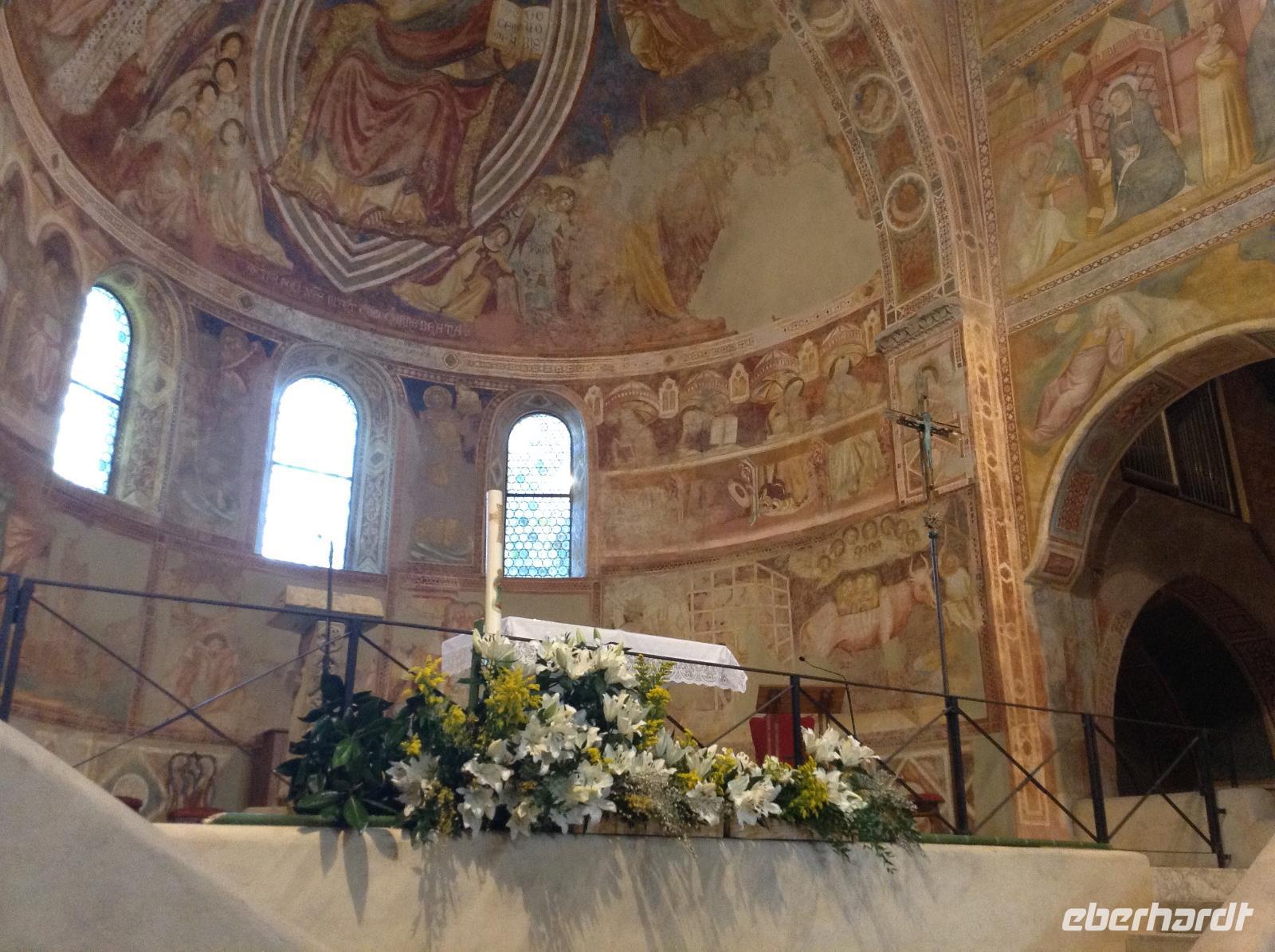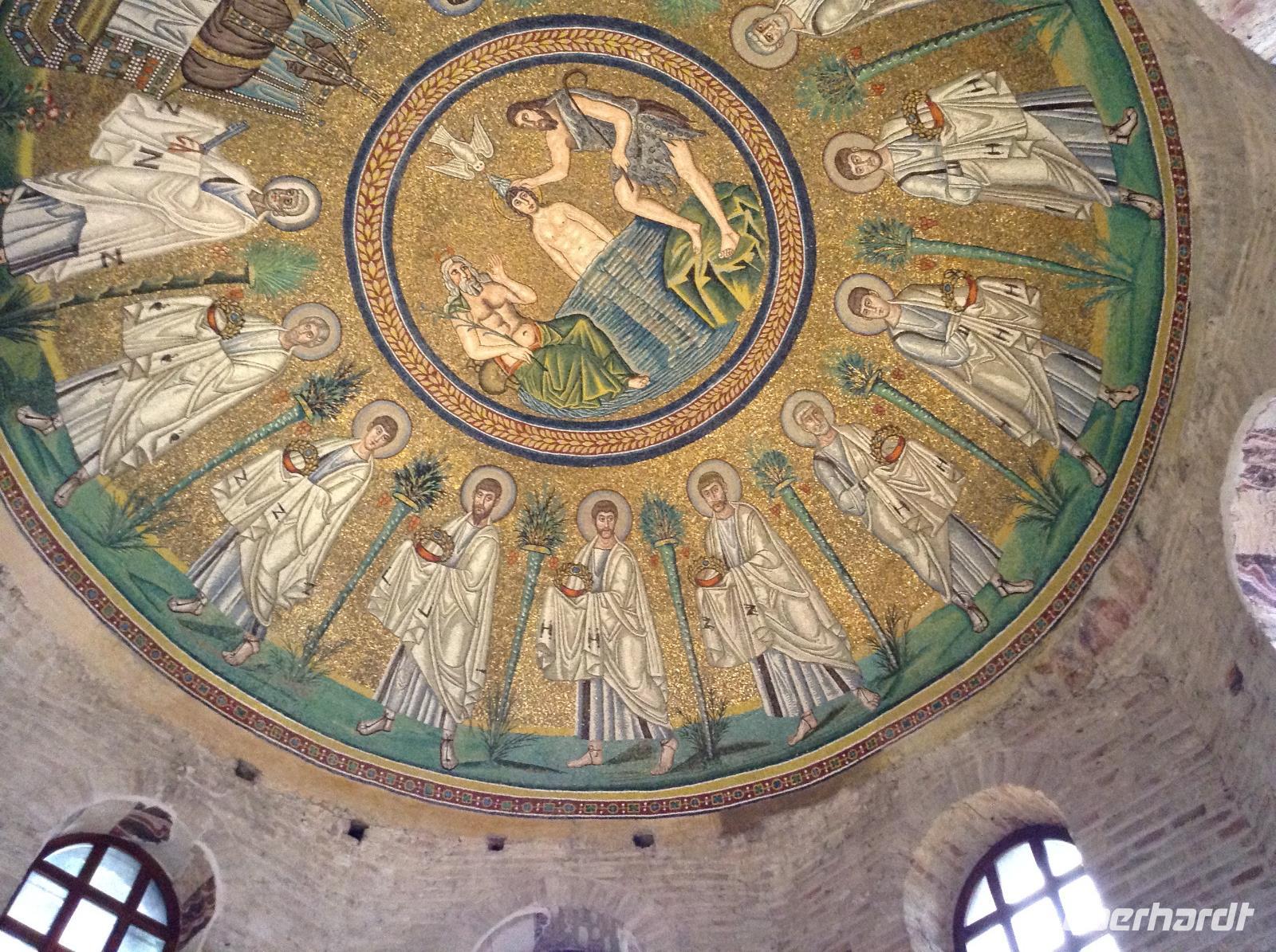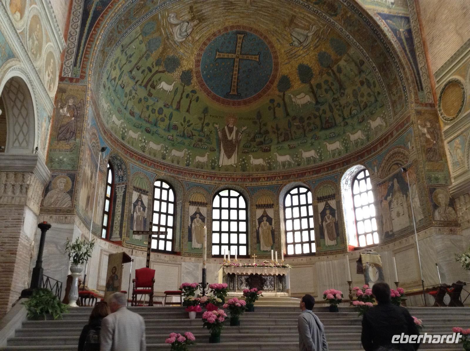 Am Busbahnhof in Ravenna werden wir von der Stadtführerin empfangen. Zu Fuß geht es zum gemeinsamen Stadtbummel. Etwas Freizeit ist auch drin, bevor es mit dem Bus gemeinsam an den Stadtrand geht. Wir besichtigen die Kirche Sant Appolinare in Classe. es ist Ostermontag und auch hier wieder viel los. Aber wir brauchen keinen Eintritt zu bezahlen.