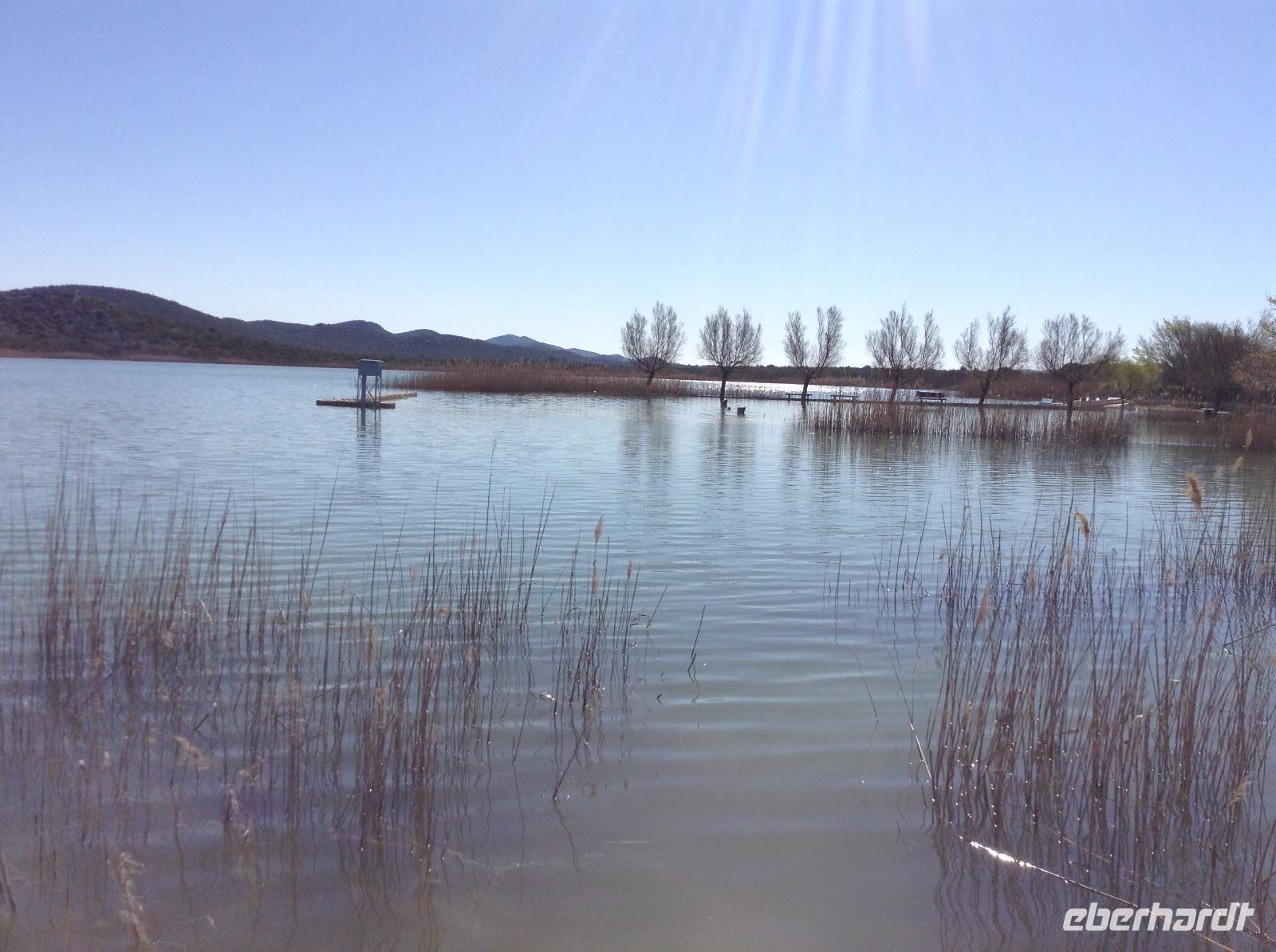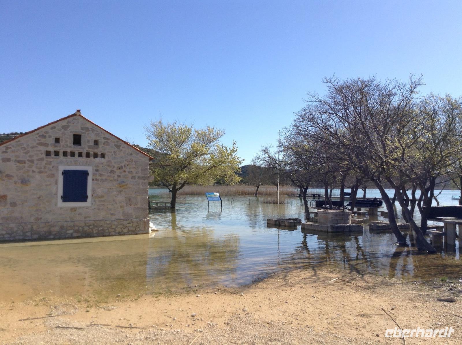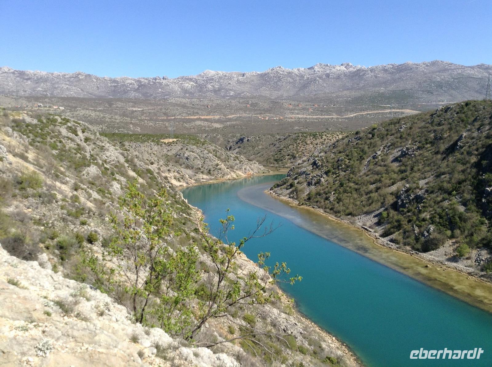 Nach dem Frühstück ging es mit Mirta zur Ortsbesichtigung in Tisno. Wir unternahmen einen kleinen Rundgang im Urlaubsort und erkundeten interessantes. Zuerst machten wir einen Fotostop am wunderschönen Vraner See, ein Naturschutzgebiet und Vogelparadies. Unsere Fahrt führte uns dann in das Hinterland, etwas weg von der Küste, zum Zrmanja-Fluss. Oberhalb von Obrovac hatten wir einen tollen Blick auf die Schlucht, die sich das Wasser gegraben hatte. Aus der Ferne sahen wir auch auf die Reste der alten Burganlage hoch über der Stadt. Wir verfolgten den Flußlauf und fuhren zum Novigradsko More und nach Novigrad.