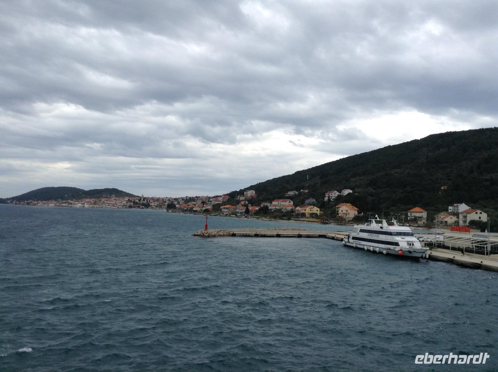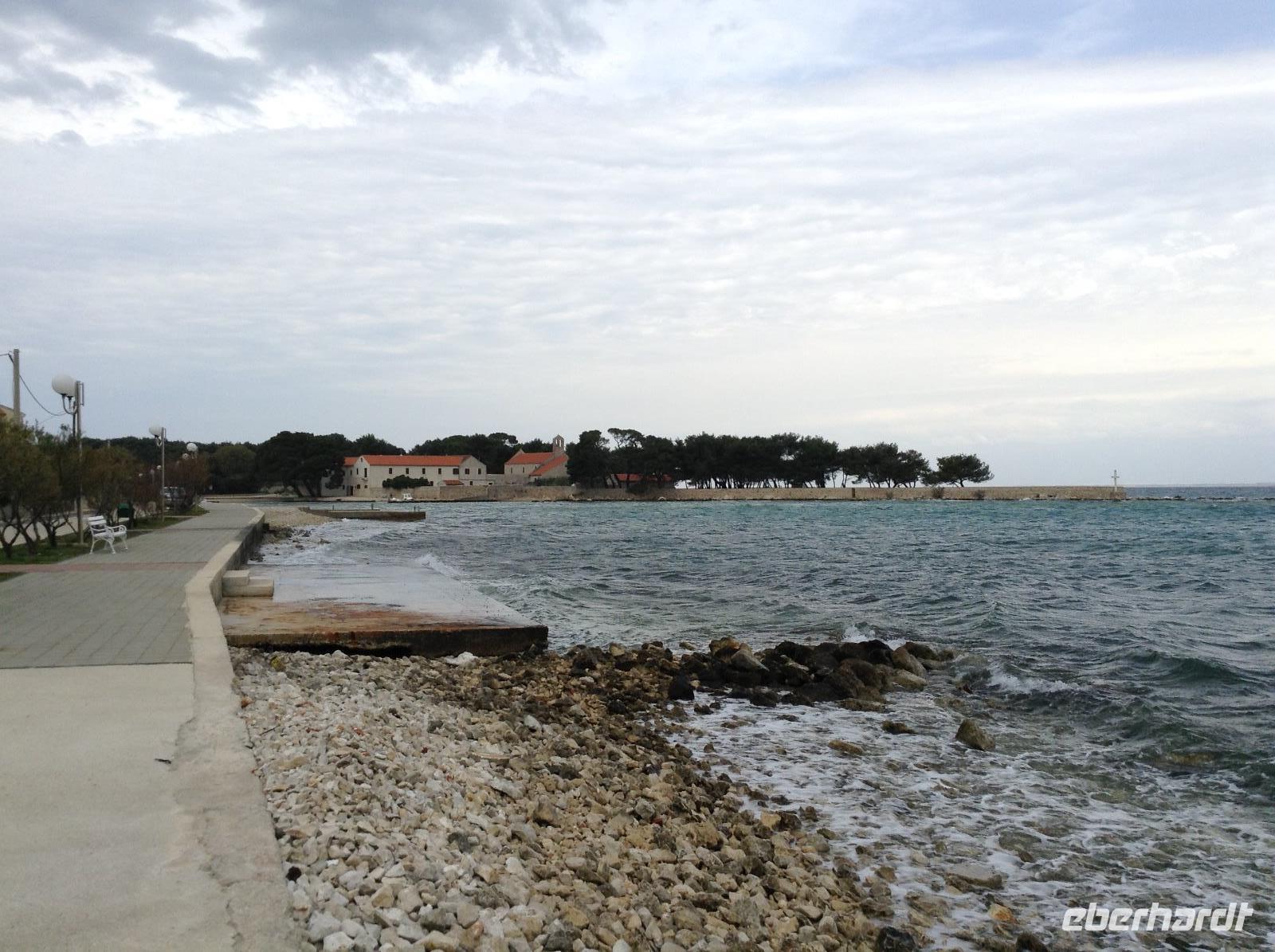 Dann ging es zur Fähre und hinüber auf die Insel Pasman. Pasman und die Zwillingsinsel Ugljan sind mit einer Brücke miteinander verbunden. So fuhren wir zunächst über beide Inseln bis nach Ugljan, der gleichnamigen Inselstadt. Wir spazierten ein wenig die Uferpromenade entlang, entdeckten die kleine Klosterinsel. Aber es war noch Vorsaison und fast alles war geschlossen. Mit dem Bus ging es dann zurück bis nach Preko. Dort gab es reichlich freie Zeit für eigene Entdeckungen. Am Nachmittag brachte uns die Fähre dann von Preko zurück ans Festland in der Nähe von Zadar. Von da aus traten wir unsere Rückreise nach Tisno an.