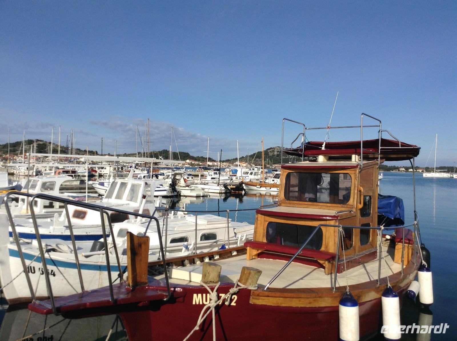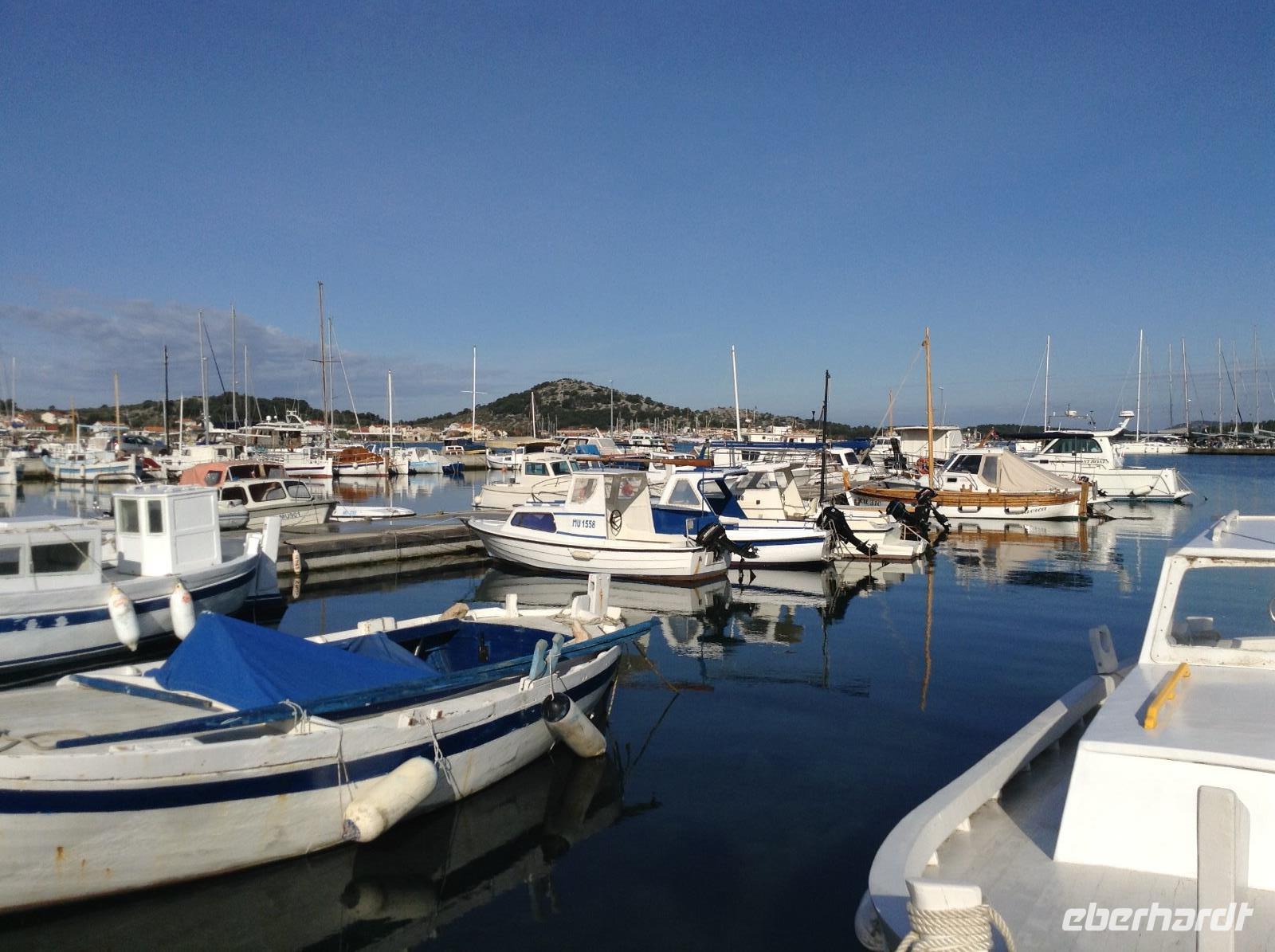 Wir besichtigten am Morgen zuerst Biograd, die einstige Hauptstadt am Meer. Die örtliche Reiseleiterin empfing uns am Hafen und führte uns durch die kleine alte Stadt. Im Hafen erlebten wir, wie gerade frischer Fisch angelandet und verladen wurde, jede Menge Sardinen.