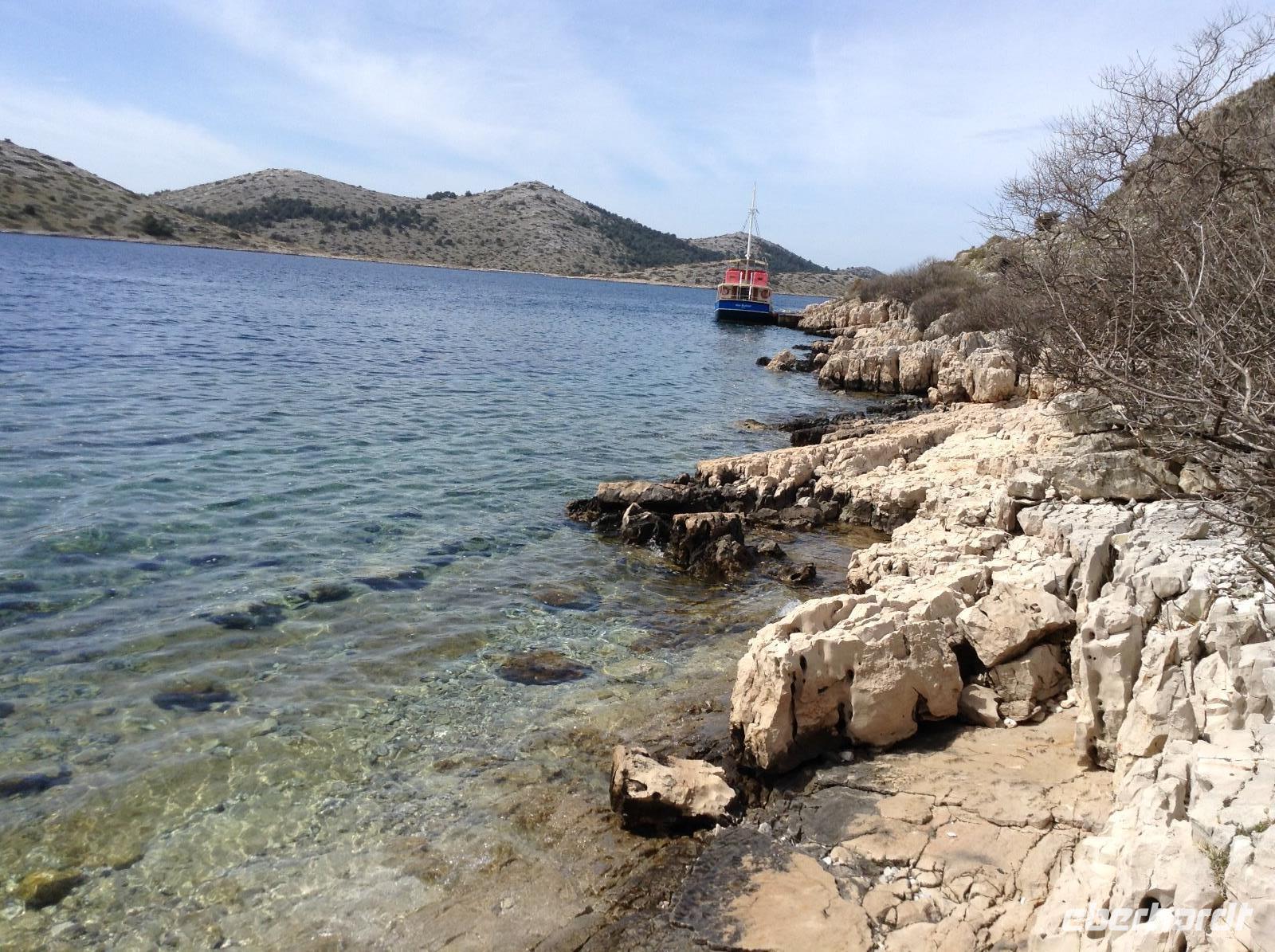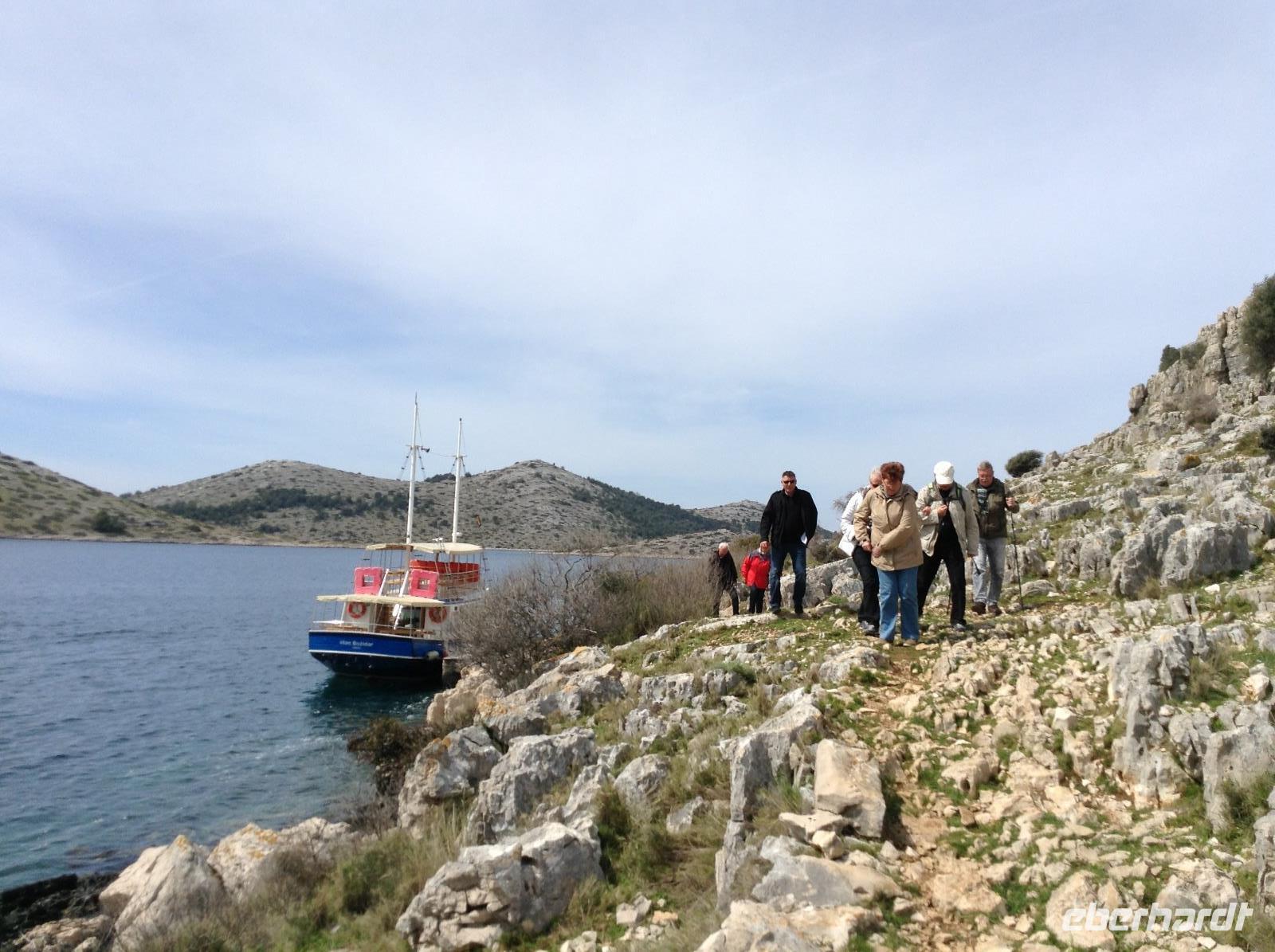 Nachdem der vorangegangene Tag wettertechnisch nicht so perfekt war, hatten wir pünktlich zu unserer Tagesbootstour zu den Kornaten perfektes Wetter, strahlend blauen Himmel und Sonnenschein. Im Hafen von Murter fanden wir unser bestelltes Boot und dann begann wohl für alle ein ganz besonders schöner Tag mit Natur und frischem Seewind pur. Die Inselwelt der Kornaten ist etwas ganz besonderes, wir waren sehr beeindruckt von der Schönheit der Landschaft. Zum Mittag gab es dann noch frisch gegrilltes Schweinesteak oder Makrele mit Krautsalat und Brot, ein besonderes Highlight. Natürlich durfte auch der Wein und ein Schnäpschen an Bord nicht fehlen und so waren alle guter Stimmung. In den späten Nachmittagsstunden ging es zurück nach Tisno.