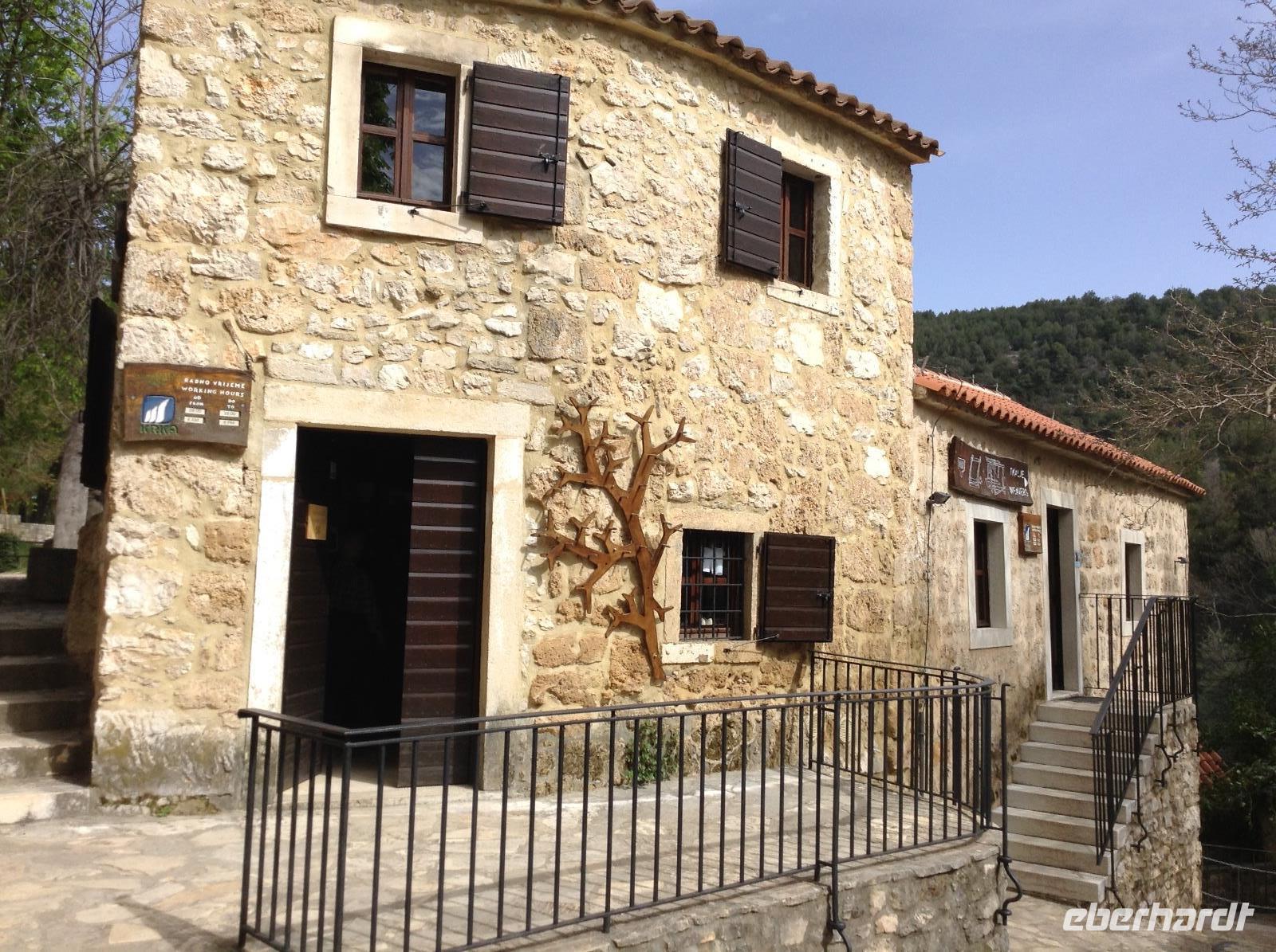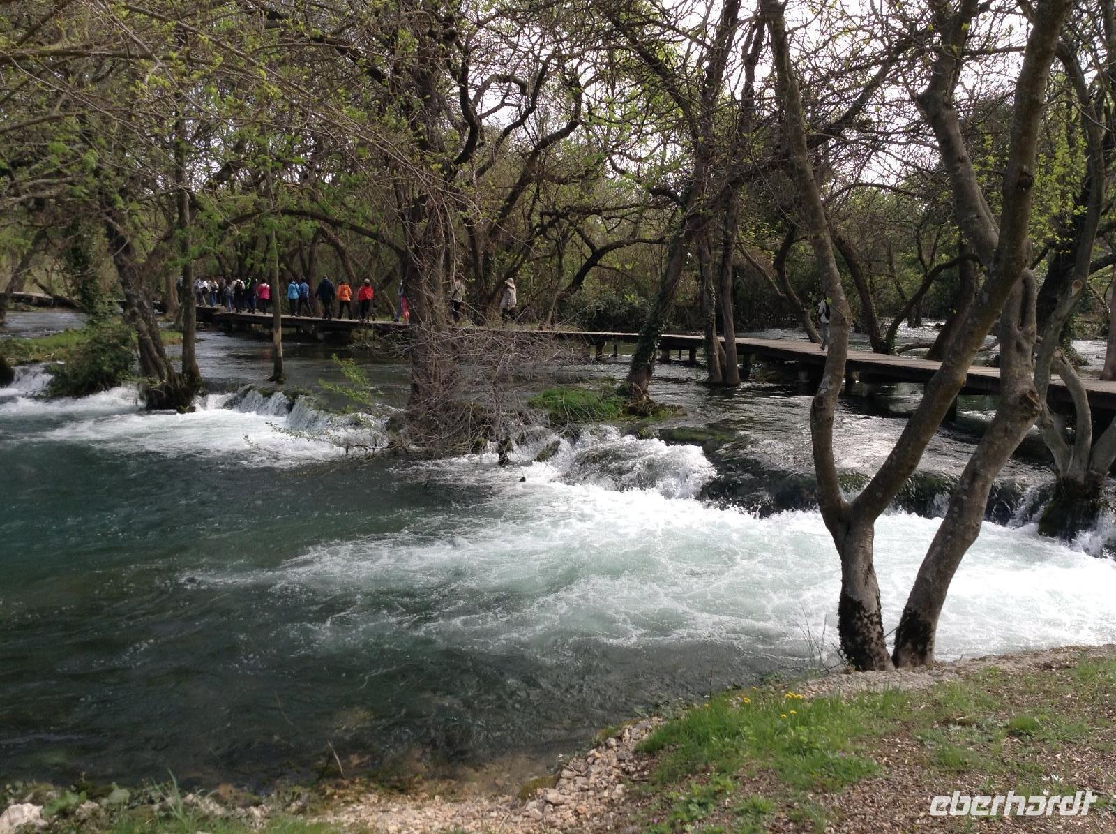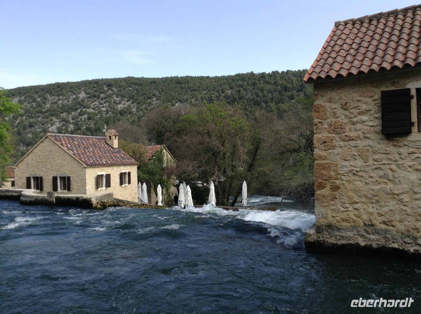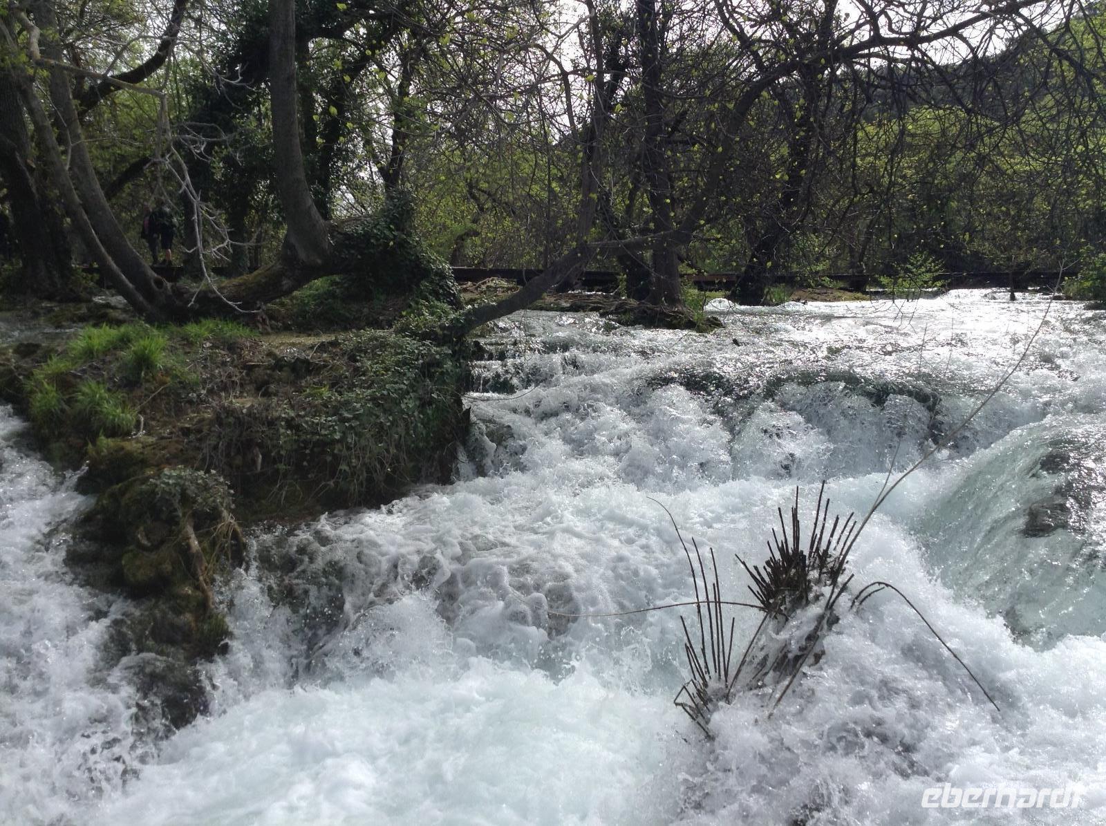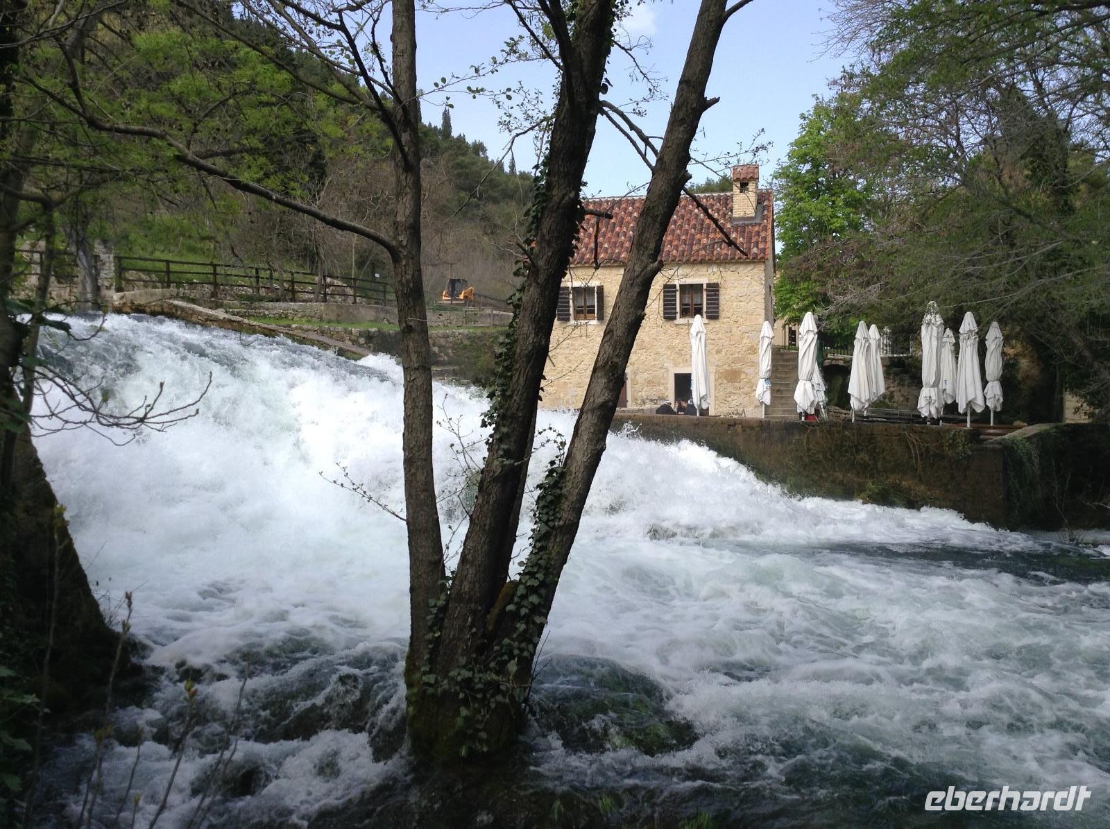 Heute Morgen ging es noch einmal auf einen Abstecher in das Krka-Gebiet. Der Besuch des Wasserfalls Roski Slap stand auf dem Plan. Das ist der zweite große Wasserfall der Krka aus den Bergen kommend. Tosend stürzt sich das Wasser über 20 Meter in die Tiefe.