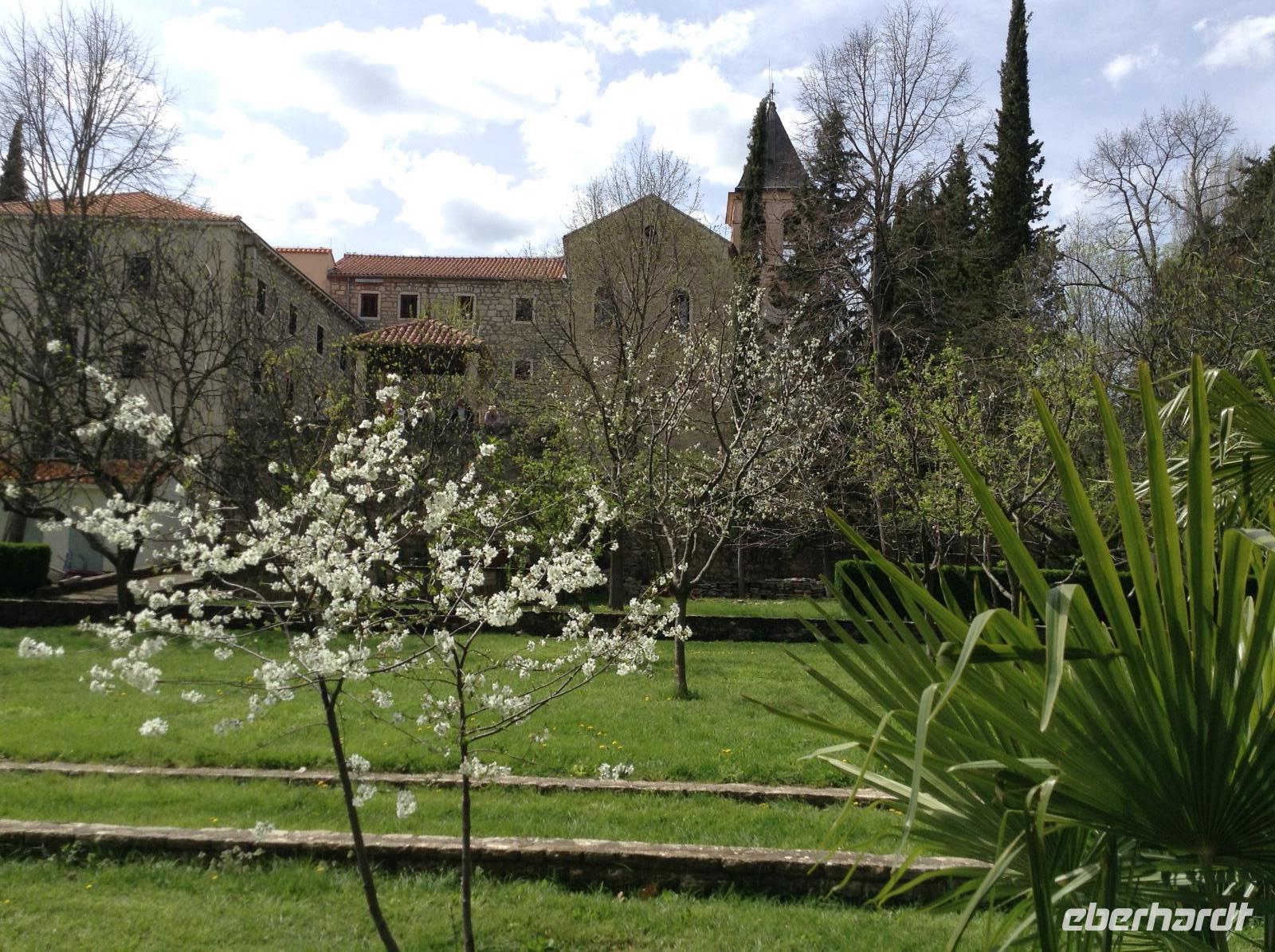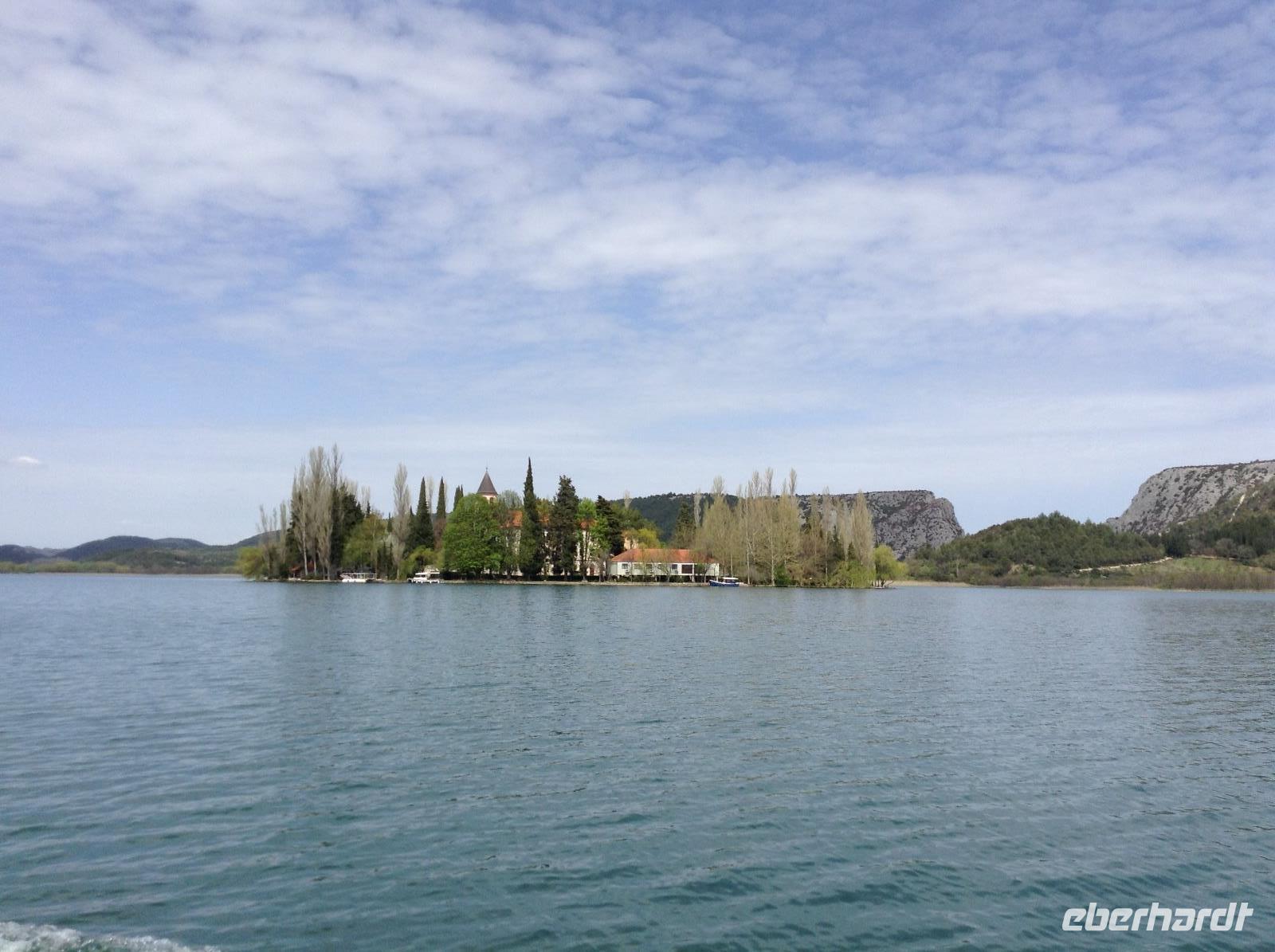 Zunächst mussten wir uns an diesem Morgen die Öffnung der Zugbrücke direkt vor unserem Hotel ansehen und beobachten, wie dann ein Schiff durchfuhr. Dann fuhren wir zum Eingang in den Krka-Nationalpark, eine wunderschöne Landschaft entlang des Krka-Flusses mit zahlreichen Wasserfällen, Staustufen und der Insel Visovac mit Kloster und Kirche. Über 860 Pflanzen- und 20 Tierarten sind hier heimisch. Wir besuchten das Ethno-Dorf im Eingangsbereich und unternahmen eine Bootsfahrt zur Insel Visovac. Alle waren begeistert von der Schönheit der Natur in diesem Gebiet.