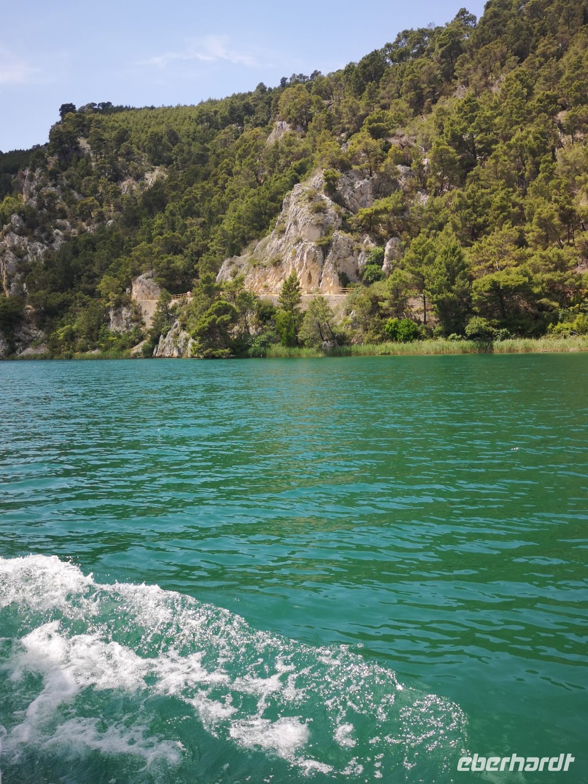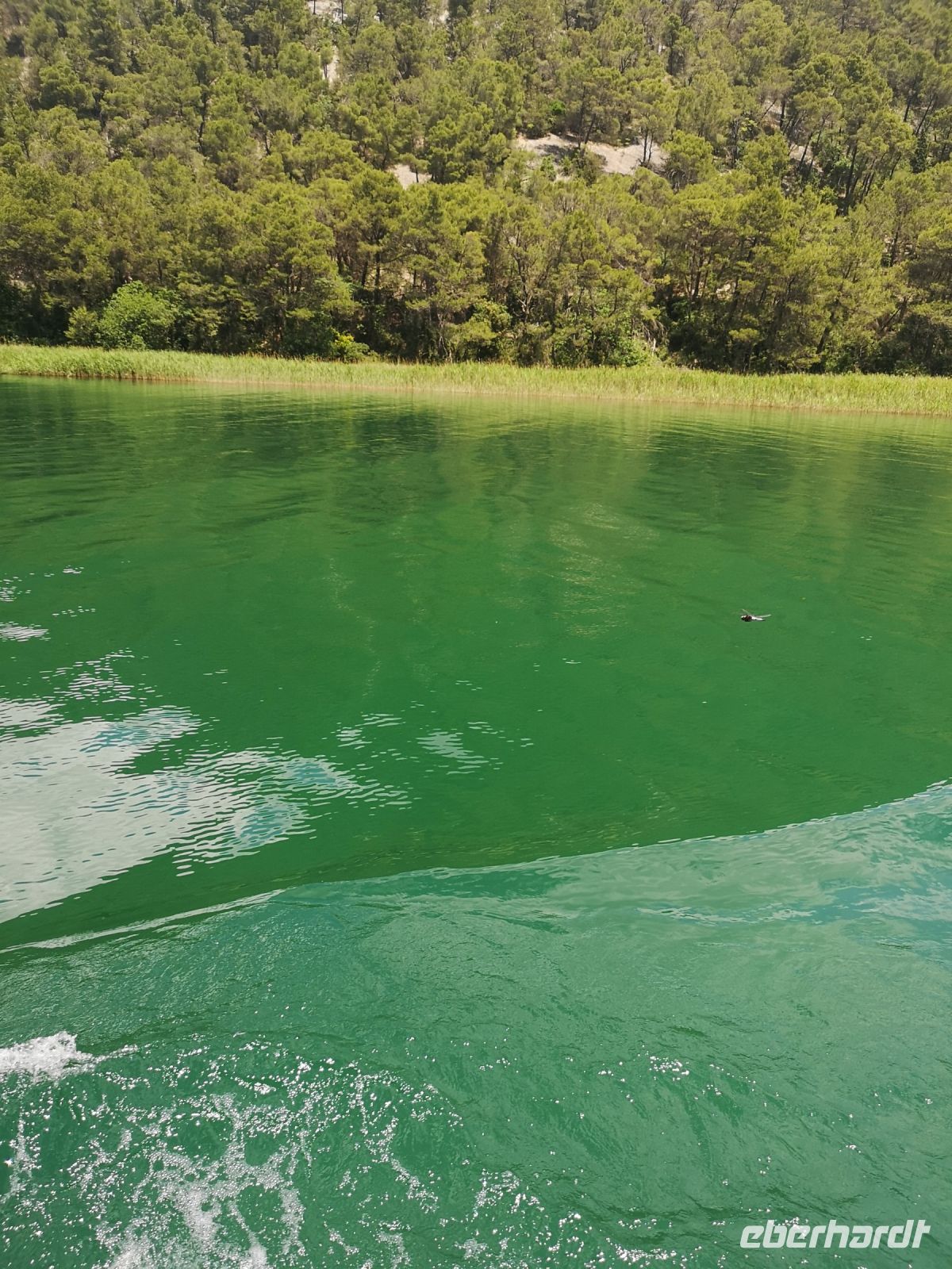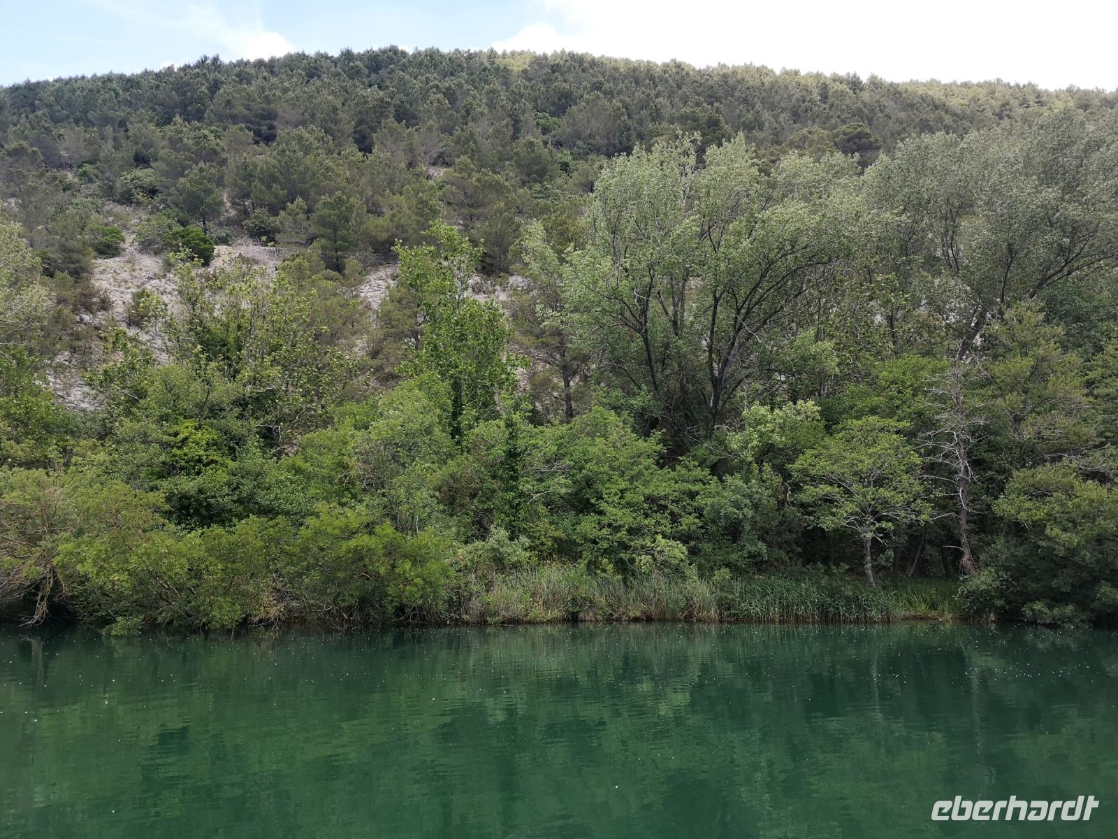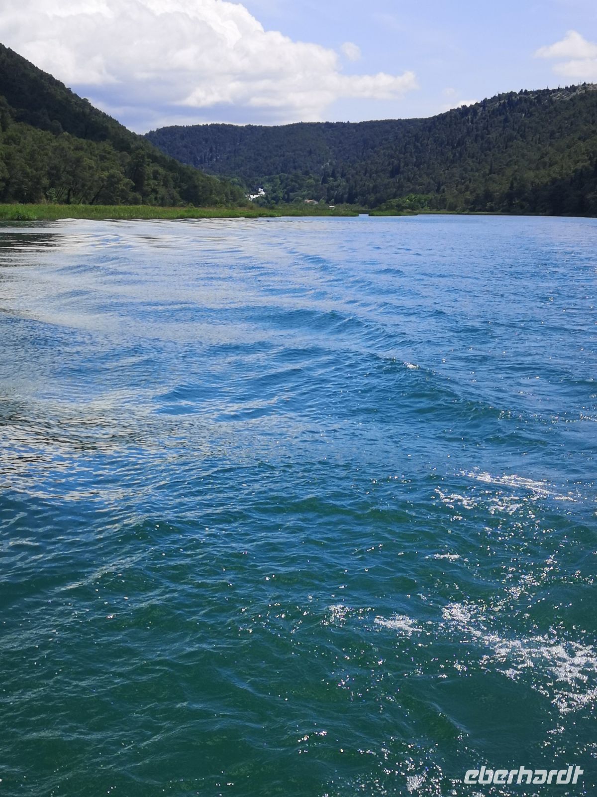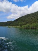 Die Farbe von Krka änderte sich schlagartig, hinter jeder Kurve, so zu sagen. Vom Grün bis Dunkelblau oder Smaragdblau. Der Flussufer wurde durch Fluss in abertausenden von Jahren selbst kreiert. Bizarre Strukturen senkrecht ins Wasser ragenden Felsen vermittelten ein Gefühl alles rum herum ist verwünscht. Ja, das Gebiet ist ein Naturpark und es ist wahrhaftig ein Juwel der unverändert bleiben soll.