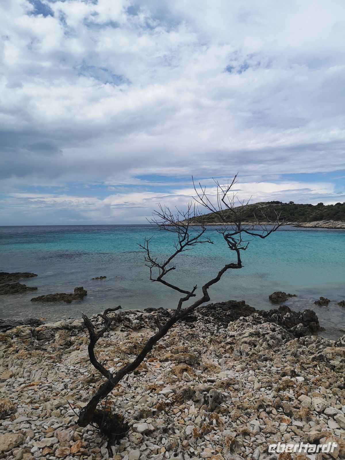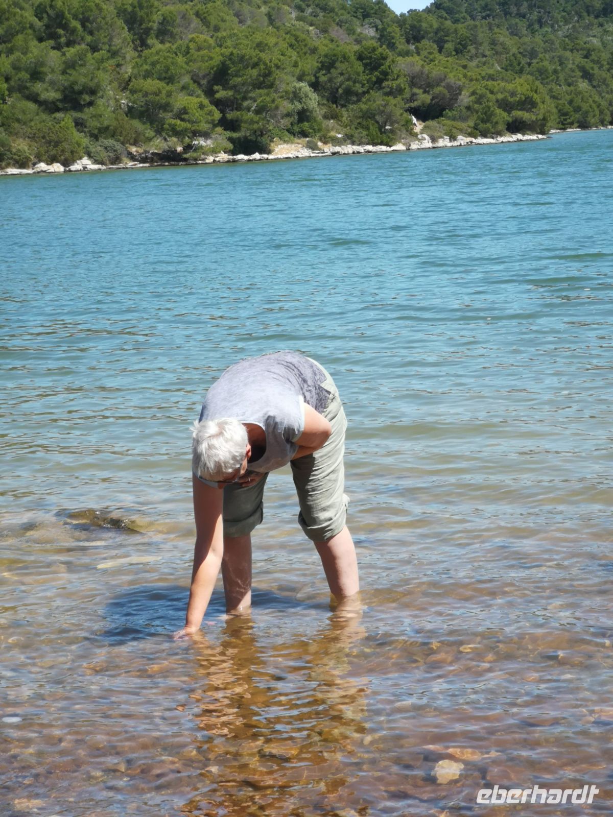 Vormittags hatten wir keine Chance auf schönes Wetter: die Inselparadies Kornati zogen den grauen Mantel an, der Wind wechselte die Richtung des Regens und ab und zu ist es tatsächlich ratsam, etwas Geduld zu üben. Es wurde besseres Wetter angesagt, nun ja, bis dahin musste man ausharren – mit der Hilfe von Schiffscrew, die sich auf alle erdenklichen Weise bemühte, uns die Zeit zu verkürzen. Die kredenzten uns der Speis und Trank, wir selbst sorgten für die wärmende Tanzeinlage. Bis sich der Regen verabschiedete: der Pfad auf der Insel Levranka führte uns wie durch Garten Eden zu der Lagune: sie tauchte vor unseren Augen auf, in allen Smaragdfarben, schön wie aus dem Traum.