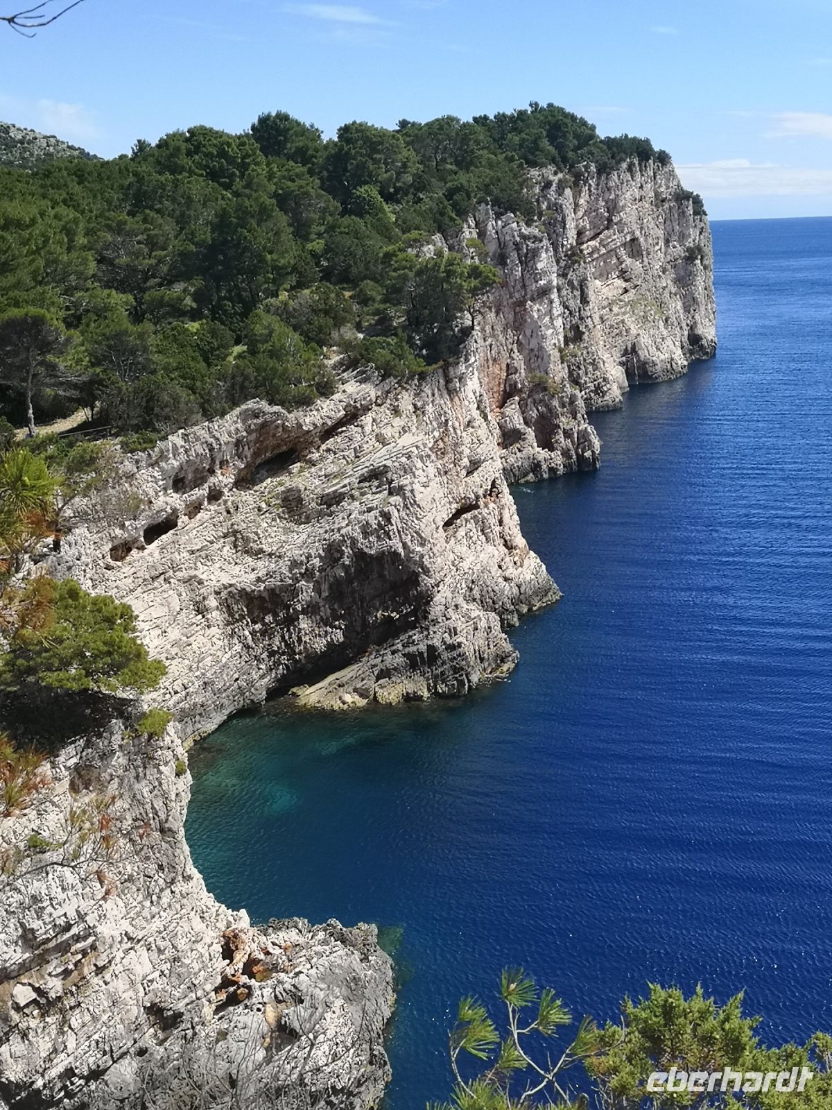 Was uns Insel Telascica zu bieten hatte, war gewaltige Felsenwand, fast 200 m hoch, bis 90 m in die Tiefe senkrecht stürzend. Ein Fotomotiv jagte den anderen, das Gefühl war überwältigend.