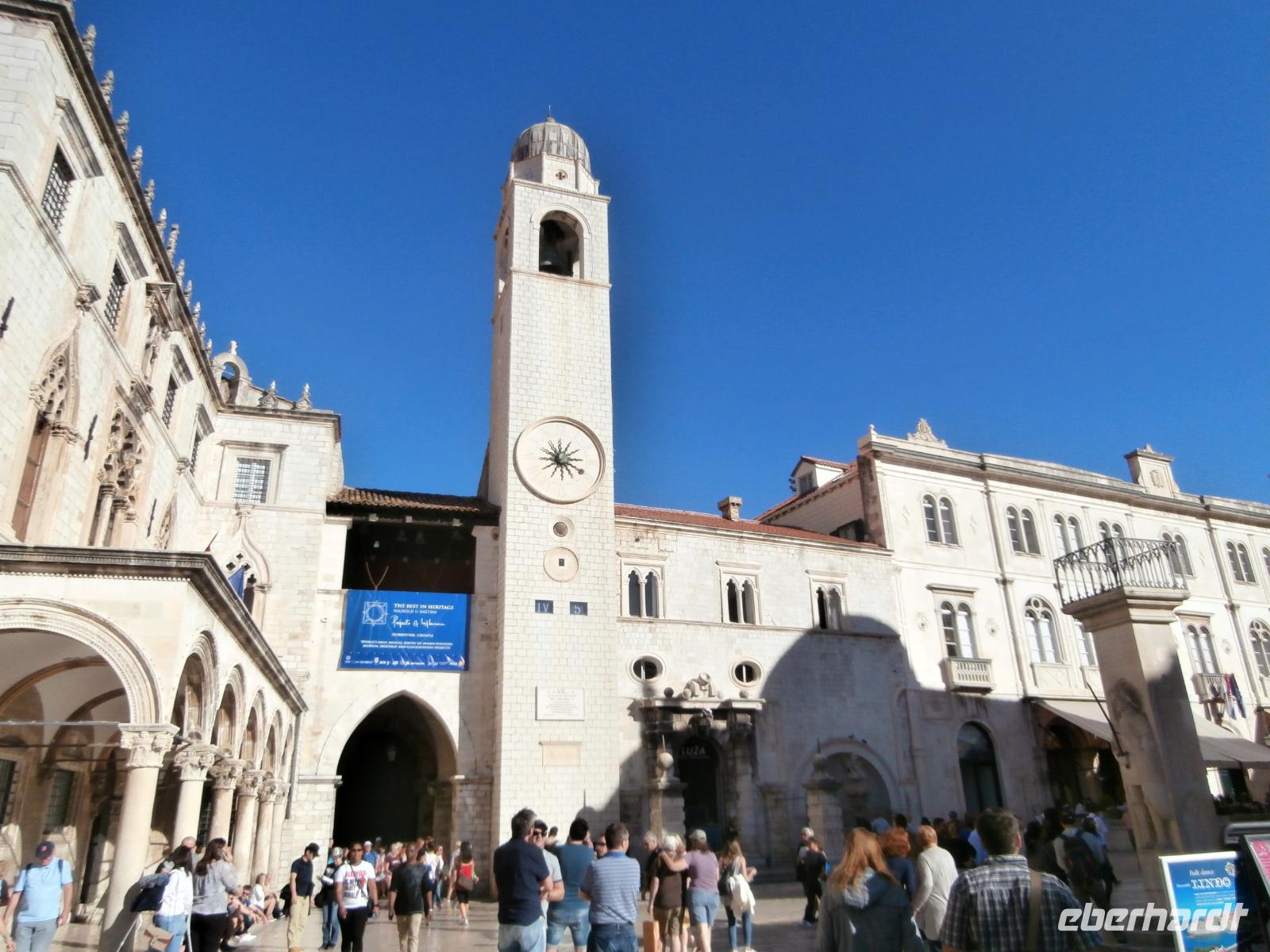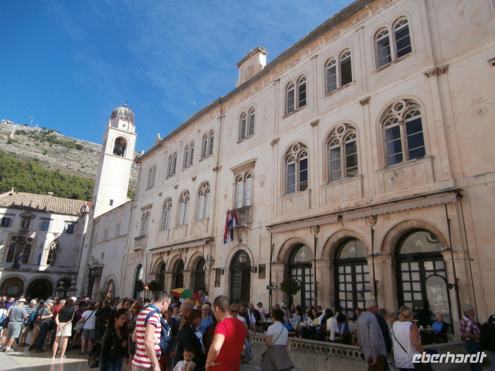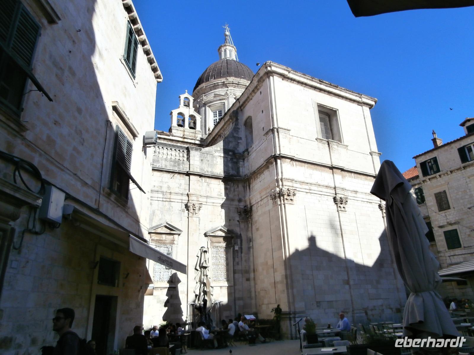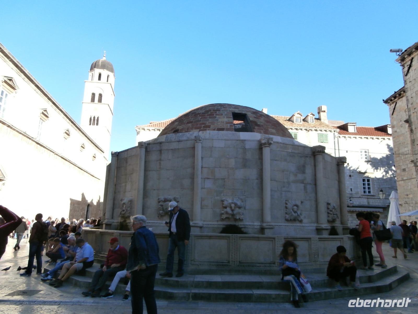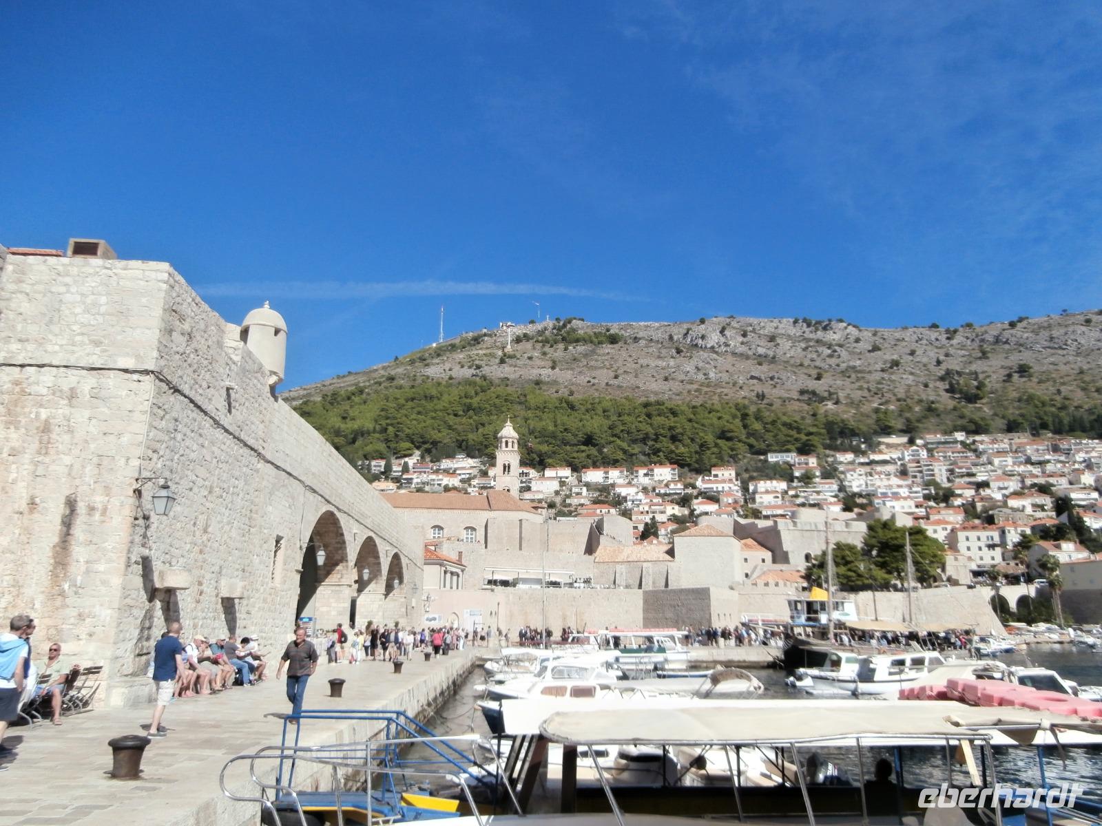Wir treffen uns an diesem Mittwoch sehr zeitig auf dem Flughafenterminal in Dresden. Die Begrüßung durch Mitarbeiter von Eberhardt Travel GmbH ist herzlich, jeder Reisegast bekommt einen Beutel mit verschiedenen Süßigkeiten und Italien Reisewerbung. Der Check Inn bei Germania läuft schleppend an, unser Sonderflug wird leider nicht separat abgefertigt. Ohne Pause nach dem Sicherheitscheck geht es in den Flieger. Leicht verspätet heben wir in Dresden ab. Der Landeanflug auf Dubrovnik gestaltet sich äußerst schwierig, die Bora bläst wahnsinnig in der Bucht, unser Pilot muss schließlich kurz vor Landung wieder durchstarten, zu gefährlich wäre es für uns alle gewesen. Nach 25 Minuten Flug landen wir mit viel Seitenwind in Brindisi in Italien. Lange Zeit bleiben wir im Flieger sitzen, im Cockpit muss nun entschieden werden, wie weiter. Zum Betanken steigen wir später in Busse um und warten dort ab, bis wir wieder in das Flugzeug zurück dürfen. Der Wind soll um die Mittagszeit etwas weniger sein und so starten wir erneut mit Ziel Dubrovnik. Punkt zwölf setzen wir auf der Landebahn auf, eine großartige Leistung vom Piloten, denn stark war der Wind zu spüren, viele Reisegäste verspürten große Angst, das Wackeln und Absacken war sehr unangenehm. Sehr erleichtert steigen wir aus und geben zuvor noch einen großen Applaus an den Piloten unseres Fluges. Bei Sonnenschein und 25ºC steigen wir zu Matteo in den Bus, mit ihm erreichen wir nach einer halben Stunde unser Hotel Vis im Stadtteil Lapad in Dubrovnik. Wir beziehen die Zimmer und verabreden uns für 15:00 Uhr zur ersten gemeinsamen Fahrt nach Dubrovnik, der ehemaligen Hauptstadt der Adriarepublik Ragusa - der heutigen pulsierenden Metropole Süddalmatiens und einer der sehenswertesten Städte Kroatiens. Hier unternehmen wir einen ersten gemeinsamen Spaziergang - vom Pile-Tor in die Stadt und auf dem Stradun, der Hauptstraße durch die Altstadt, bis zum zweiten Stadttor. Mit dem Stadtbus der Linie 4 geht es wieder zurück zum Hotel. Ob Baden oder ein Drink auf der Hotelterrasse, die Zeit bis zum Abendessen wird erholsam genutzt. Sehr zeitig fallen wir heute in unsere Betten, der Tag war lang und aufregend.