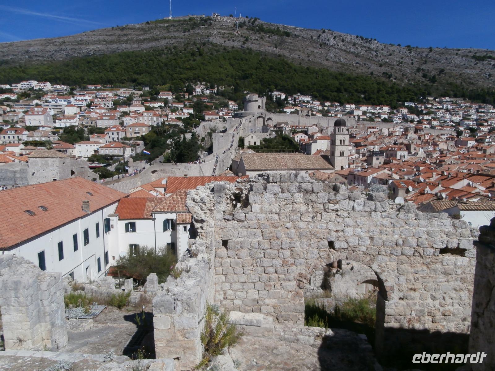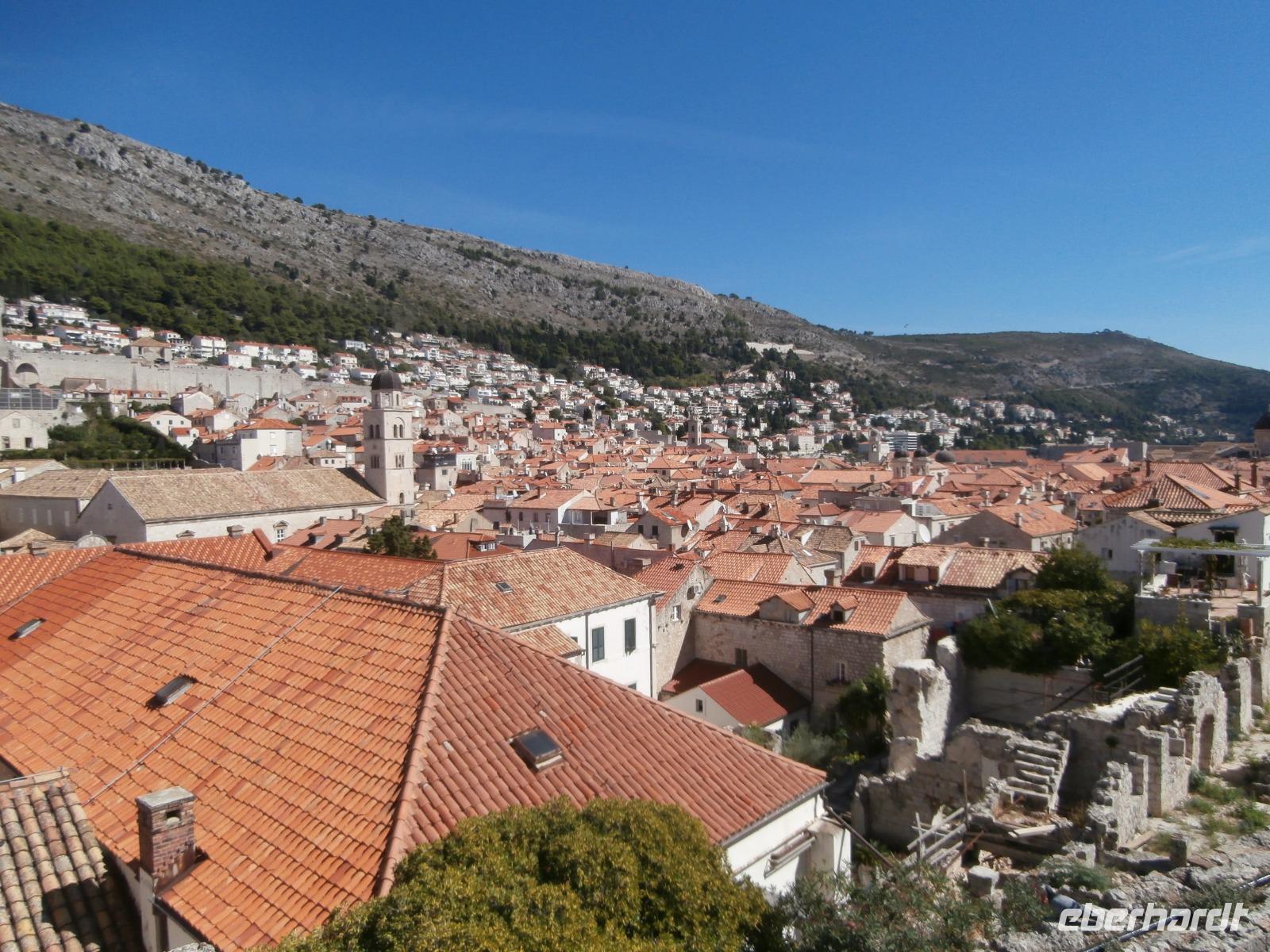 Ab 7:00 bis 10:00 Uhr gibt es Frühstück, sehr schönes Wetter haben wir wieder und so starten wir gut gelaunt mit unserem Reisebus und Darijo am Lenkrad nach Dubrovnik. Gegen dreiviertel Zehn treffen wir uns mit unserer Stadtführerin Kristina am Pile-Platz, mit ihr sind wir für zwei Stunden in der Altstadt unterwegs, die Führung ist sehr schön und informativ, auf unsere Fragen bekommen wir viele klärende Antworten. Kroatien im Schnelldurchlauf, aber durchaus auf unsere Interessen zugeschnitten. Einen kurzen Abriss der Geschichte Dubrovniks erhalten wir. Der selbständige Stadtstaat Regusa mit seiner Hauptstadt Dubrovnik war bis 1806 freie Republik. Sein Reichtum fußte auf legendären Gold-und Silberschätzen, Handelstätigkeit. Es gab ein eigenes Erzbistum. Durch Überlistung gelang es Napoleon 1806 in die Stadt einzudringen. Die Tore der Stadt sollten lediglich für 1 militärisches Nachtlager geöffnet werden. Das war das Ende der freien Republik. Da ein schweres Erdbeben im 17. Jahrhundert die Altstadt verwüstet hatte, findet man in Dubrovnik heute einen barocken Altstadtkern. Nach dem Niedergang der napoleonischen Herrschaft gehörte das Gebiet von Regusa zur Donaumonarchie. Die Hauptbauwerke, wie Stadtmauer und die Festung wurden zwischen dem 12. und 17. Jahrhundert erbaut. Die anschließende Freizeit bis 17:00 Uhr nutzen wir für Mittagessen, Shopping und eigene Erkundungen, z.B. die Seilbahnfahrt zum Aussichtsberg, eine Schifffahrt zur Insel Lokrum, den Spaziergang auf der großartigen Mauer, die wir in 1,5 Stunden umrundet haben sowie den Bummel durch die vielen schmalen Gassen.17:00 Uhr werden wir mit unserem Bus wieder abgeholt und nach kurzer Fahrt erreichen wir wieder unser Hotel Vis. Einen tollen Sonnenuntergang bekommen wir am Hotelstrand zusehen - einfach wunderschön!