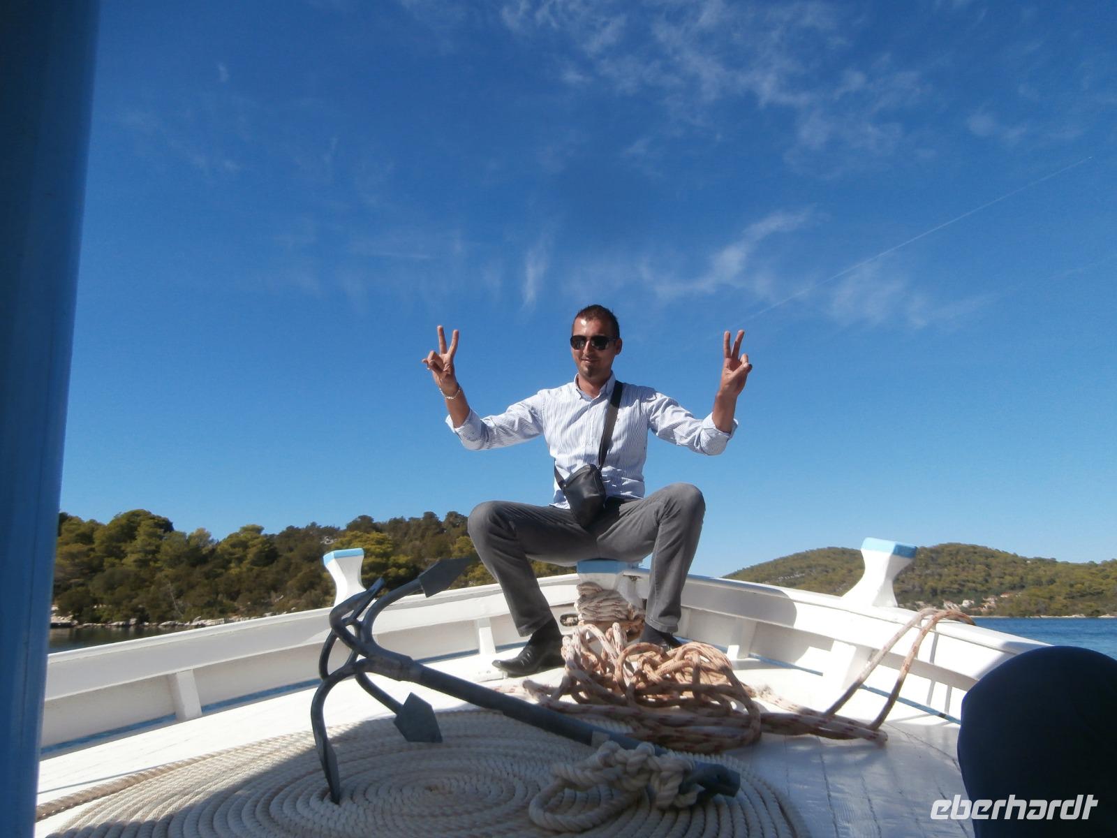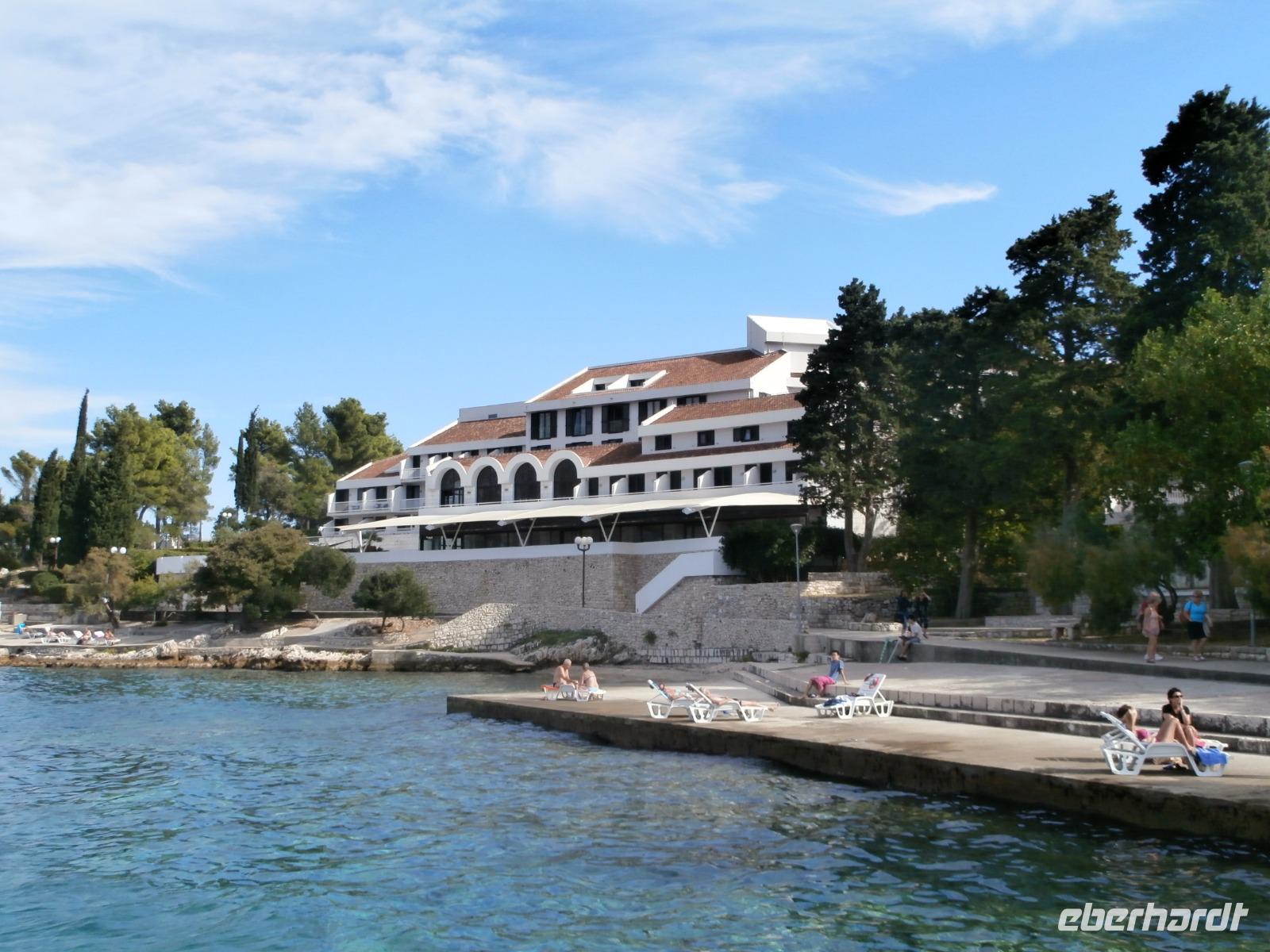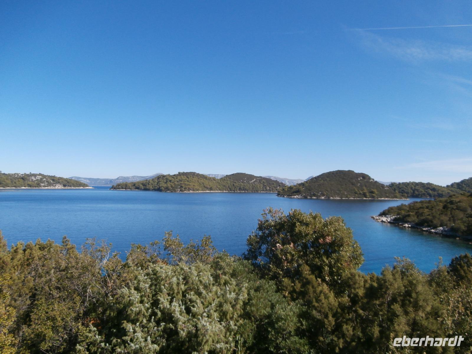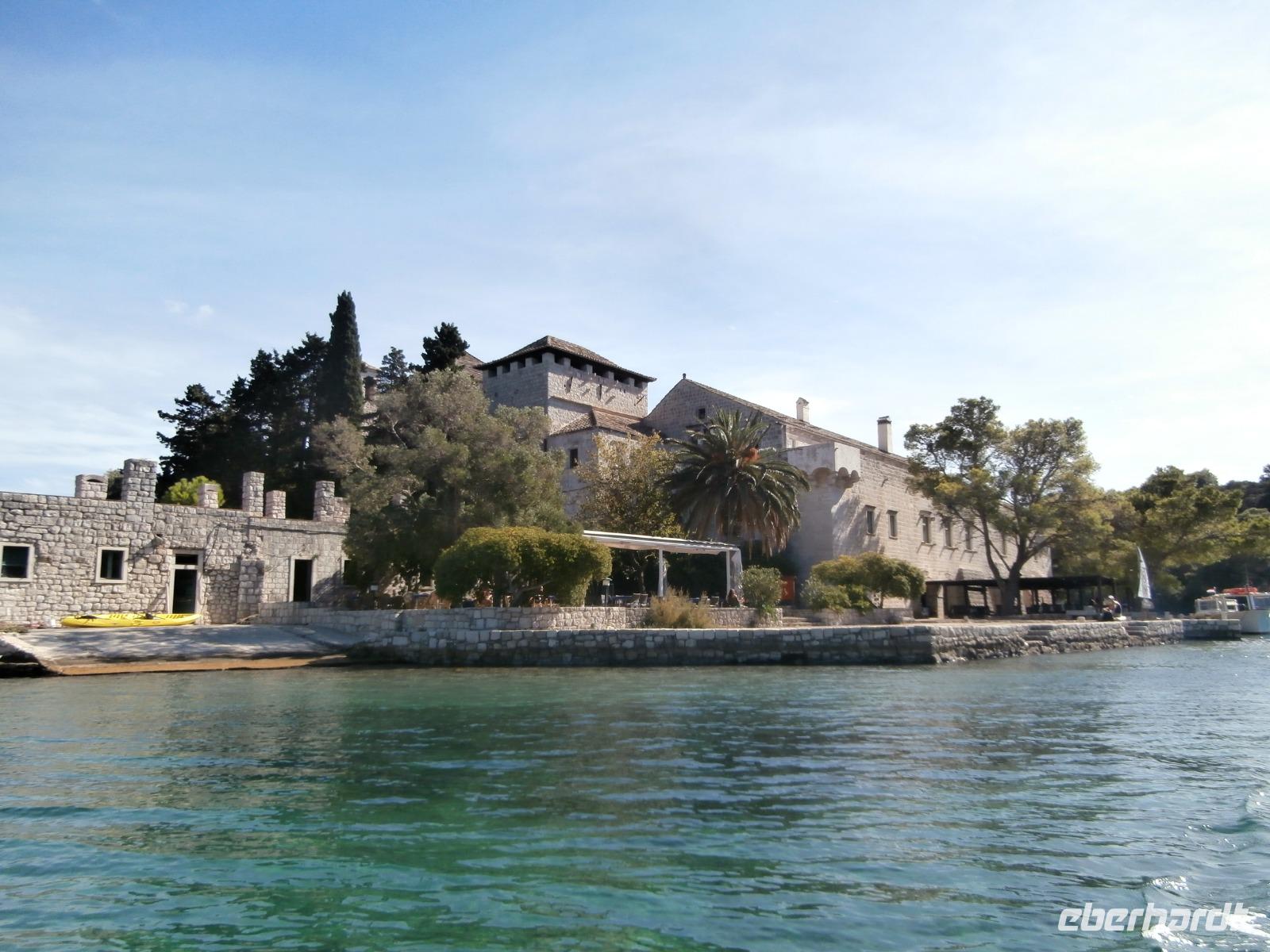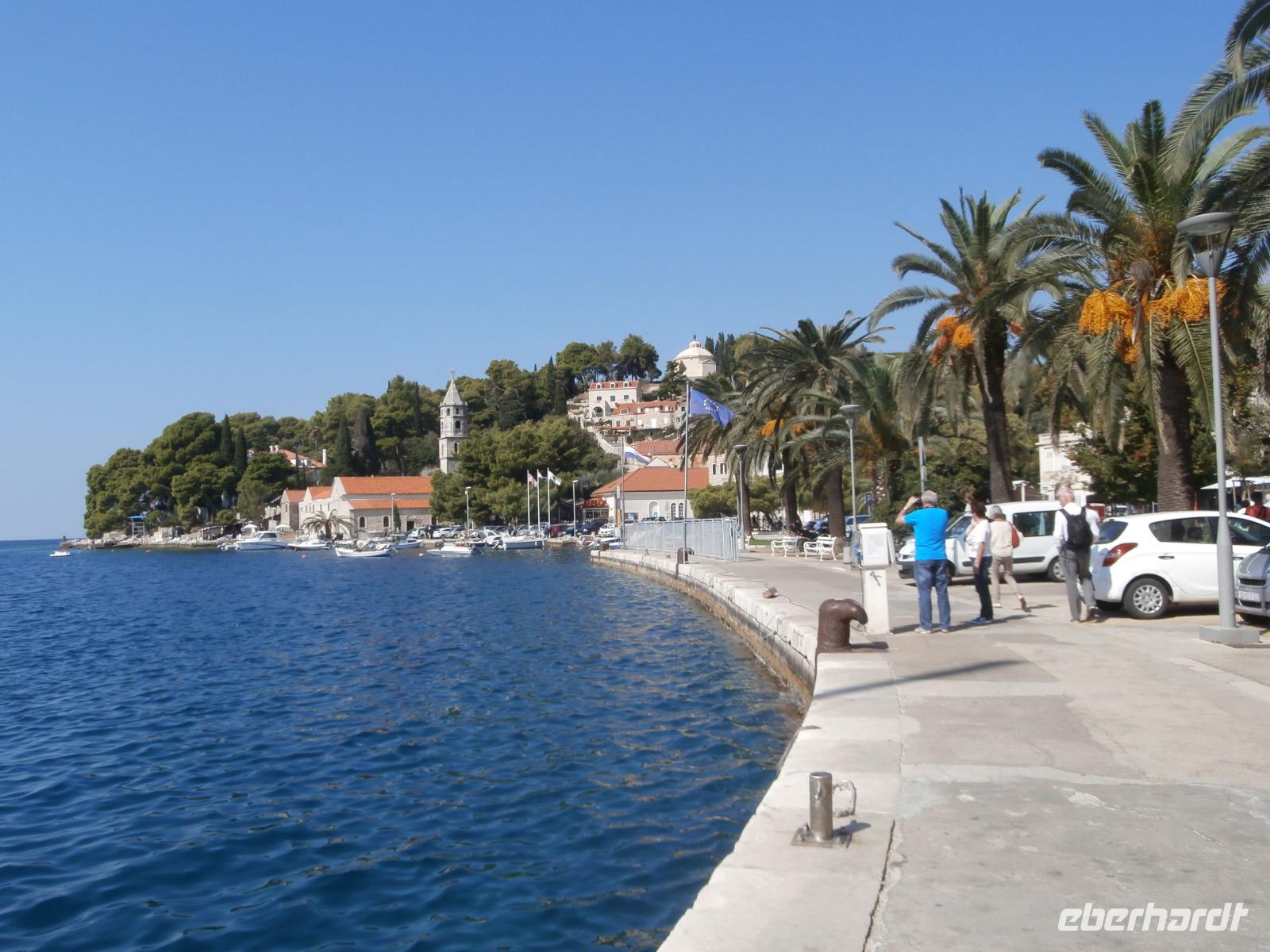 Pistazien, Schwarzkiefern, Baumheide, Wacholder, Olivenbäume. Am Nachmittag unternehmen wir mit dem Boot gemeinsam eine Schifffahrt entlang kleiner Inseln bis hin nach Lumbarda. Zum Eis essen und Kaffeetrinken stoppen wir hier und genießen das schöne Wetter. Die Menschen auf der Insel leben vom Tourismus, der Herstellung von Olivenöl, Naturprodukten für Medizin und Kosmetik. Auch der Weinanbau und die Herstellung von Schiffsausrüstungen sind Erwerbsquellen. Gegen fünf sind wir am Hotel Liburna zurück, das Boot legt unterhalb vom Hotel an. Pünktlich 19 Uhr treffen wir uns zum reichhaltigen Abendbüfett. Mit herrlichen Ausblicken hinüber zur Altstadt klingt der Abend aus. Morgen früh verlassen wir die Insel Korcula.