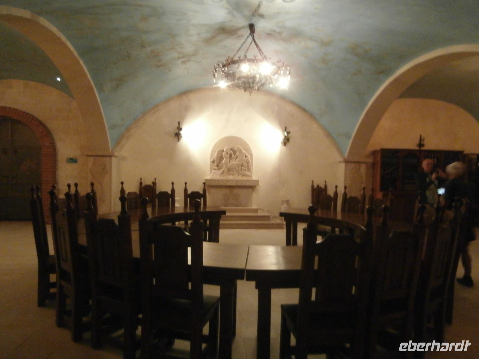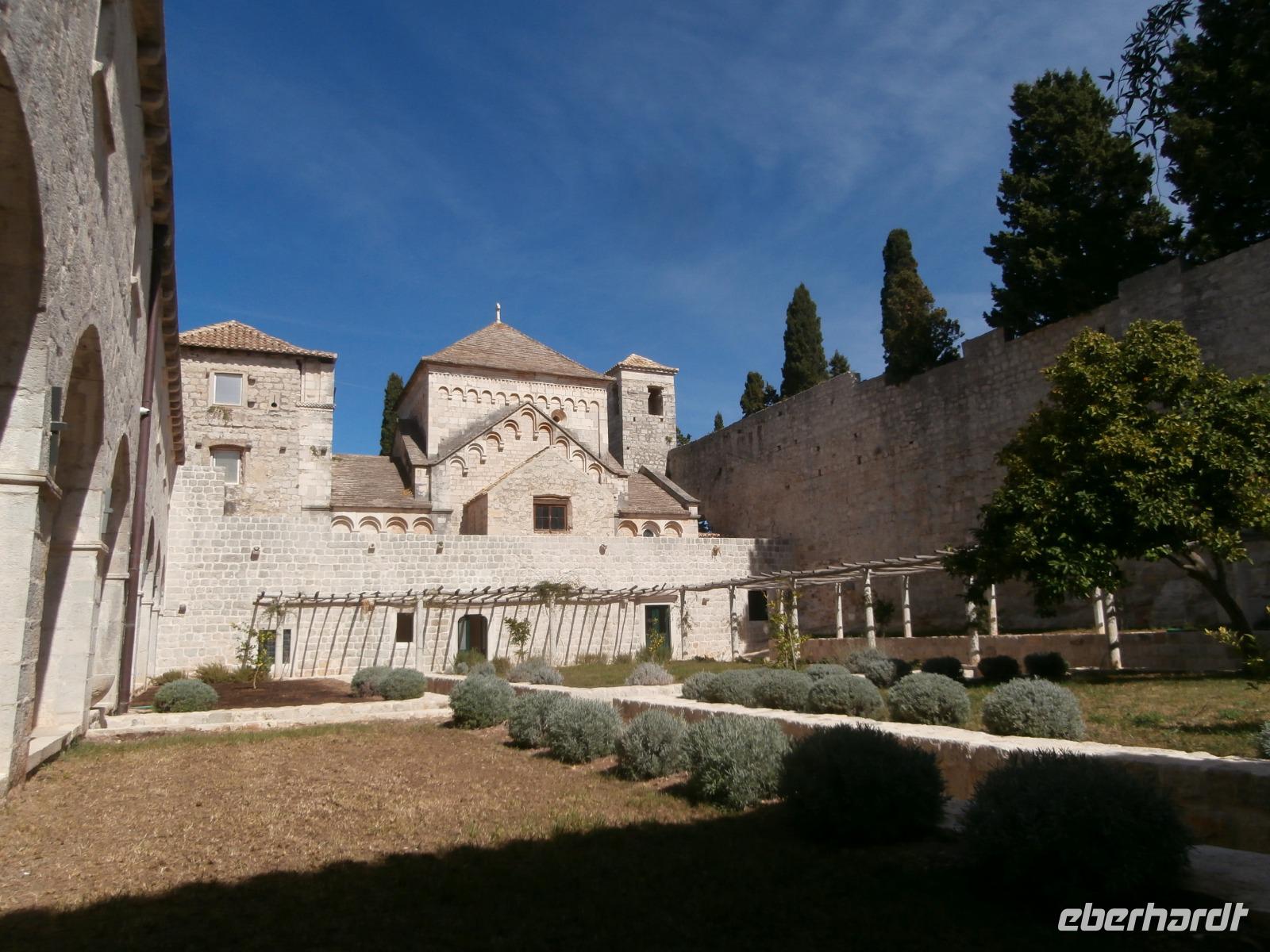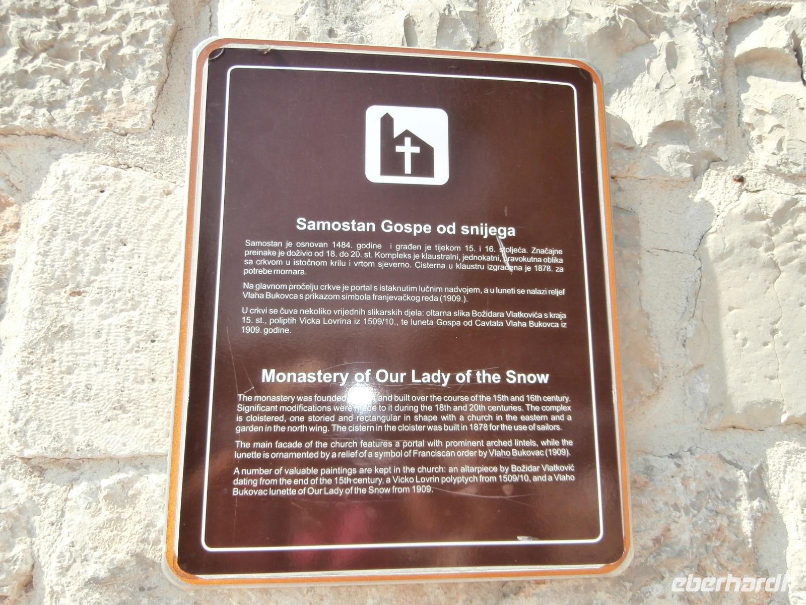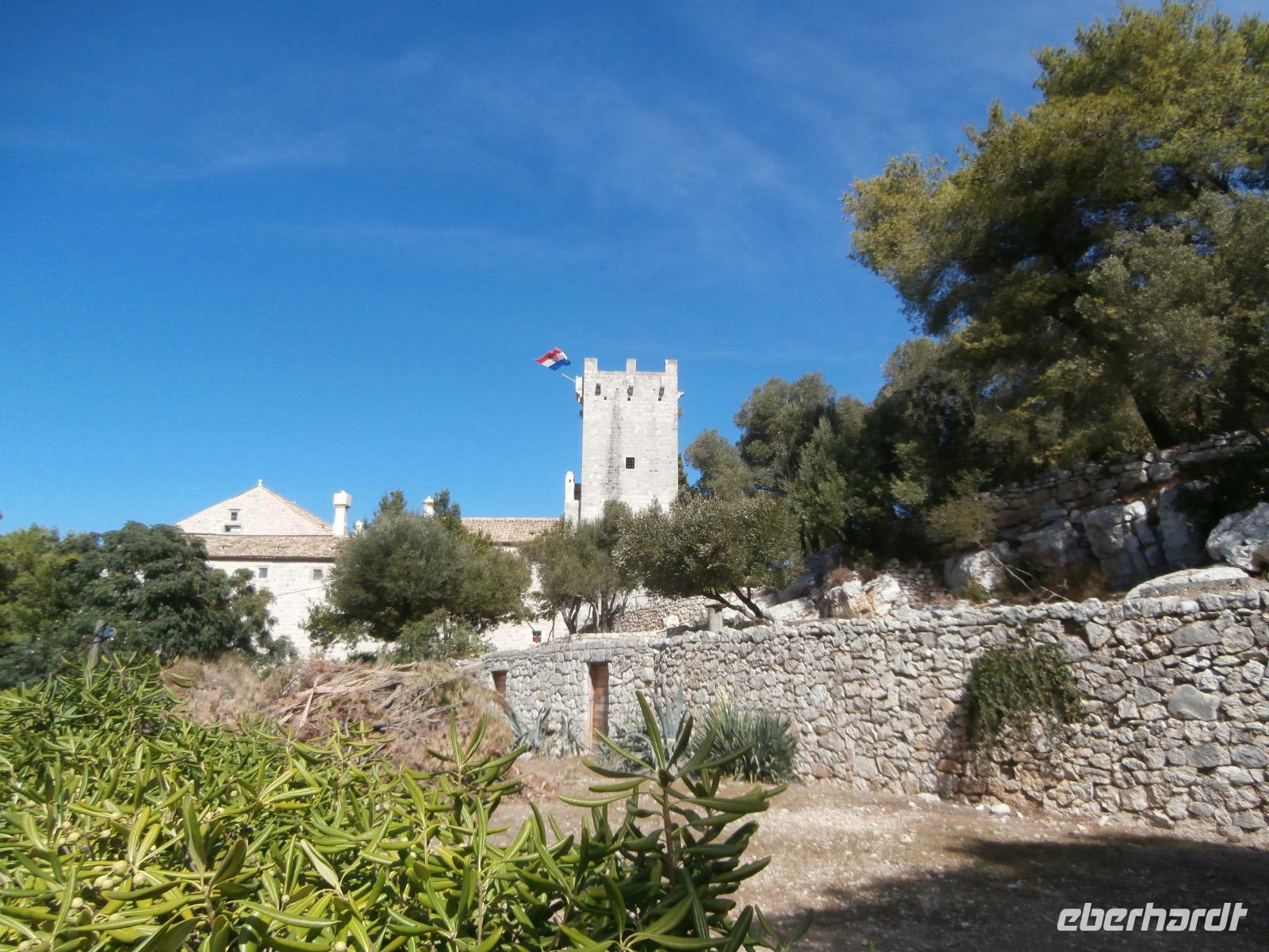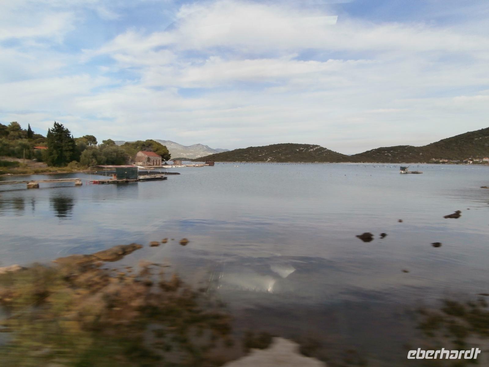 Heute ist unsere Abfahrt früher, denn wir wollen die Inseln Mljet, Peljesac und Korcula sehen bzw. erreichen. Nach einer Stunde Fahrt stoppen wir in Ston und besichtigen bei einem Rundgang die kleine, vom Erdbeben 1996 noch gezeichnete Stadt. Die riesigen Befestigungsanlagen, die die Ragusaner zum Schutz ihrer Halbinsel und des kostbaren Salzes errichteten, beeindrucken uns alle. Von hier aus fahren wir zum kleinen Fährhafen in Prapratno, in Sobra landen wir nach 45 min Fahrzeit auf der Insel Mljet an. Uns erwartet eine einzigartige Panorama-Landschaft, Felsen, Riffe und zwei Salzseen, miteinander unterirdisch verbunden sind. Dario, unser Chauffeur, bringt uns gut und galant durch die vielen Kurven. Wir bewundern immer wieder den intakten, grünen Wald besonders mit Kiefern. Mit dem Boot gelangen wir im Nationalpark Mljet hinüber zur kleinen Insel der Maria, die liegt mitten im großen See. Das alte Benediktiner-Kloster mit seiner hübschen Kirche aus dem 12. Jahrhundert, können wir vorerst gar nicht so richtig finden, aber ein Reisegast findet schließlich den Zugang. Hier verlangt man nochmals extra Eintritt, was wir so nicht erwartet hatten. Nach einer längeren Pause, die Zeit und Gelegenheit für Bummel und Imbiss bietet, geht die Fahrt mit einem Boot zum Bus zurück. Wir legen die gleiche Strecke nochmals als Fahrt zur Fähre im Hafen von Sobra nach der Insel Peljesac zurück. Quer über die Insel fährt uns Darijo zum Weingut der Familie Matusko in Potomje, die Weinverkostung erleben wir als wunderbar, ein tolles Ambiente herrscht in den Mauern dieses ca 20 Jahre alten Familienbetriebes. Wir verkosten den Plavac Mali, den Dingac etc. im großen Weinkeller und alle sind von der Qualität und den charmanten und interessanten Erläuterungen der netten Blondine begeistert. Zum Wein reicht man uns Käse, Schinken und Brot. Mit ihr haben wir später einen interessanten Rundgang durch die vielen Kellerräume des Weingutes. 18:30 Uhr zur Weiterfahrt nach Orebic an den Fähranleger, kommt langsam die Dunkelheit. Unsere Überfahrt zur Insel Korcula dauert kurze 15 Minuten und mit Darijo am Steuer erreichen wir schließlich 20 Uhr unser Hotel Liburna in Stadt Korcula. Zimmerverteilung und dann treffen wir uns zum Abendessen, heute findet ein dalmatinischer Abend mit Musik und Spezialitäten des Landes statt.