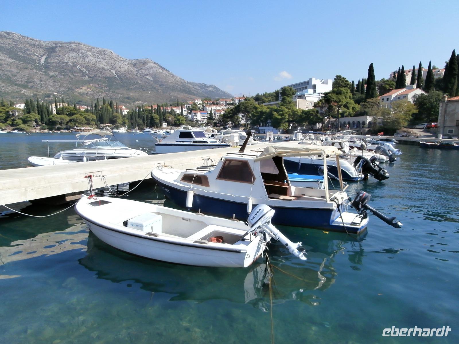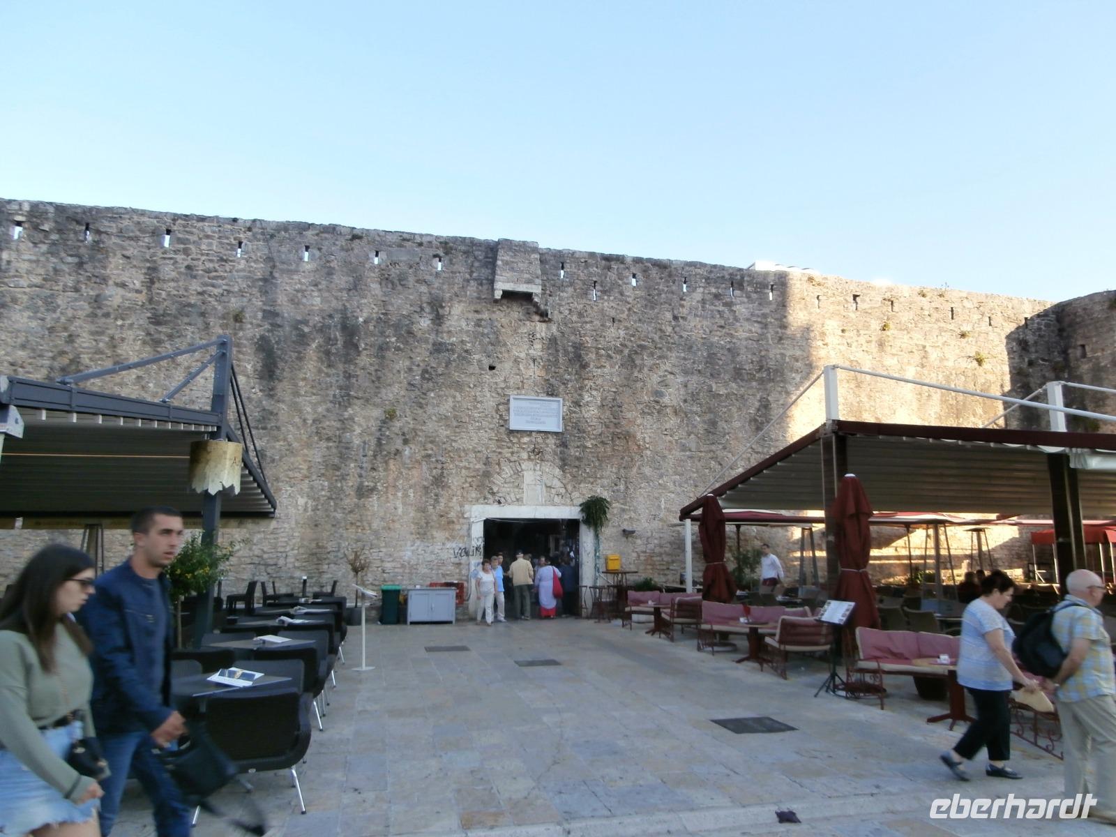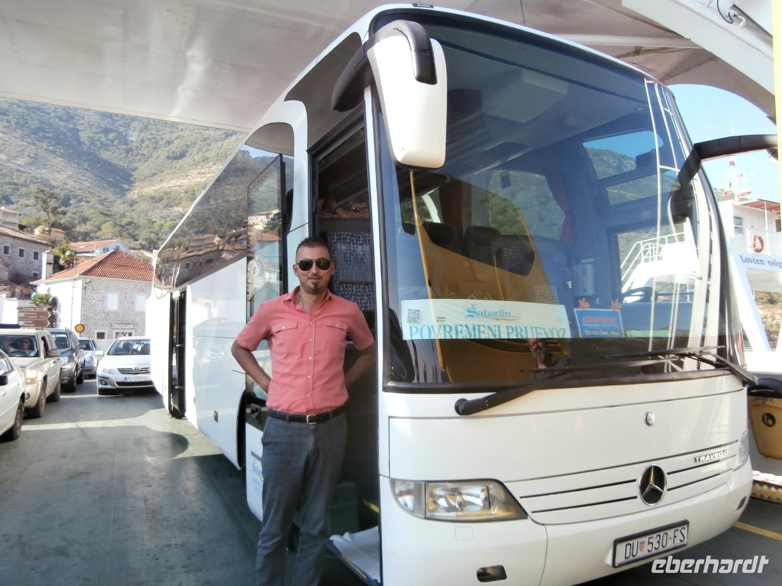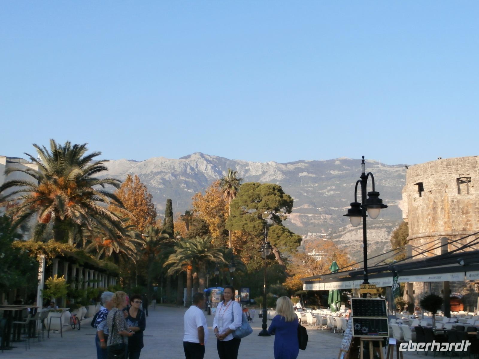 Abschied von Korcula und nochmals eine wunderbare Sicht auf die Bucht, Berge und Uferzone. 08:30 Uhr geht es mit unserem Bus vom Hotel Richtung Fähranlegestelle Domince und 09:00 Uhr ist die Überfahrt von Domince (Korcula) nach Orebic. Wir setzen unsere Reise fort, es geht ca. 120 km nach Süden, zur Stadt Cavtat. Ein Fotostopp vor der Brücke in Dubrovnik gehört natürlich dazu. 12:30 Uhr erreichen wir die Stadt Cavtat und nehmen uns Zeit für Mittag, einen Spaziergang zur Nikolauskirche und dem Franziskaner Kloster und zum Mausoleum werfen wir einen Blick hinauf. 14:00 Uhr verlassen wir Cavtat und fahren weiter in Richtung Montenegro. Die Formalitäten an der Grenze dauern alle weile, aber Darijo unser Fahrer kennt die Möglichkeiten, Wege zu verkürzen. Wir fahren weiter zur Fähre in Lepetane und setzen über nach Kamenari. Bis Budva sind es noch gut eine halbe Stunde Fahrt und hier werden wir von Katharina, unserer örtlichen Führerin, am Parkplatz erwartet. Mit ihr haben wir einen fantastischen Rundgang. Budvar hat ca. 40 000 Einwohner und ist wunderschön an einer Bucht gelegen. Die historische Altstadt ist sehr sehenswert. Auf einem der antiken Plätze, dem Palmenplatz, stehen eine Kathedrale, eine Moschee und eine orthodoxe Kirche in malerischer Einheit dicht beieinander und bilden ein herrliches Ensemble. Wir folgen der Wegeführung und stehen plötzlich vor einer massiven Brüstungsmauer, die unmittelbar dem Meer zugewandt ist. Dort ist ein sehr schöner Küstenausblick möglich. Anschließend wenden wir uns nochmal der malerischen Innenstadt zu mit ihren vielen bunten Gassen voller kleiner Kaffees und Minigeschäfte. Nach intensiver Besichtigung des Ortes verlassen wir Budvar. In Kotor biegen wir ab und fahren an dem Ufer des Fjordes bis zum Hotel Splendido in Prcanj. Wunderschön ist es hier direkt am Ufer in der Bucht und zum Abendessen treffen wir uns alle im Restaurant. Leckere Speisen werden uns serviert und am Ufer lassen wir bei herrlicher Beleuchtung den Abend ausklingen.