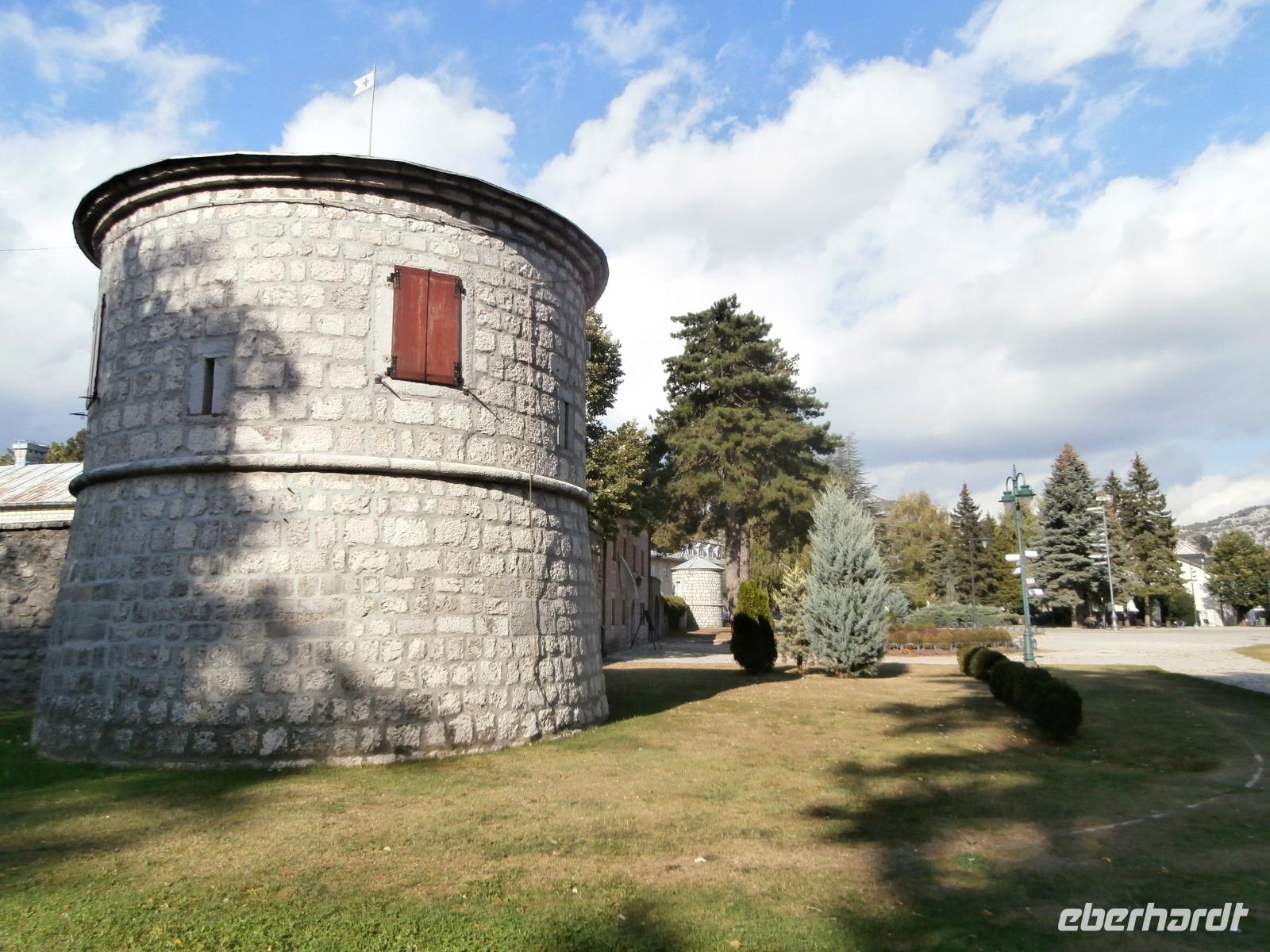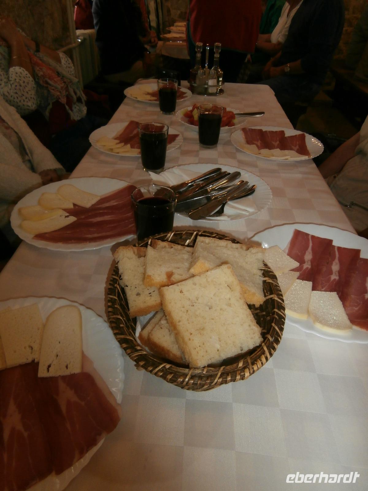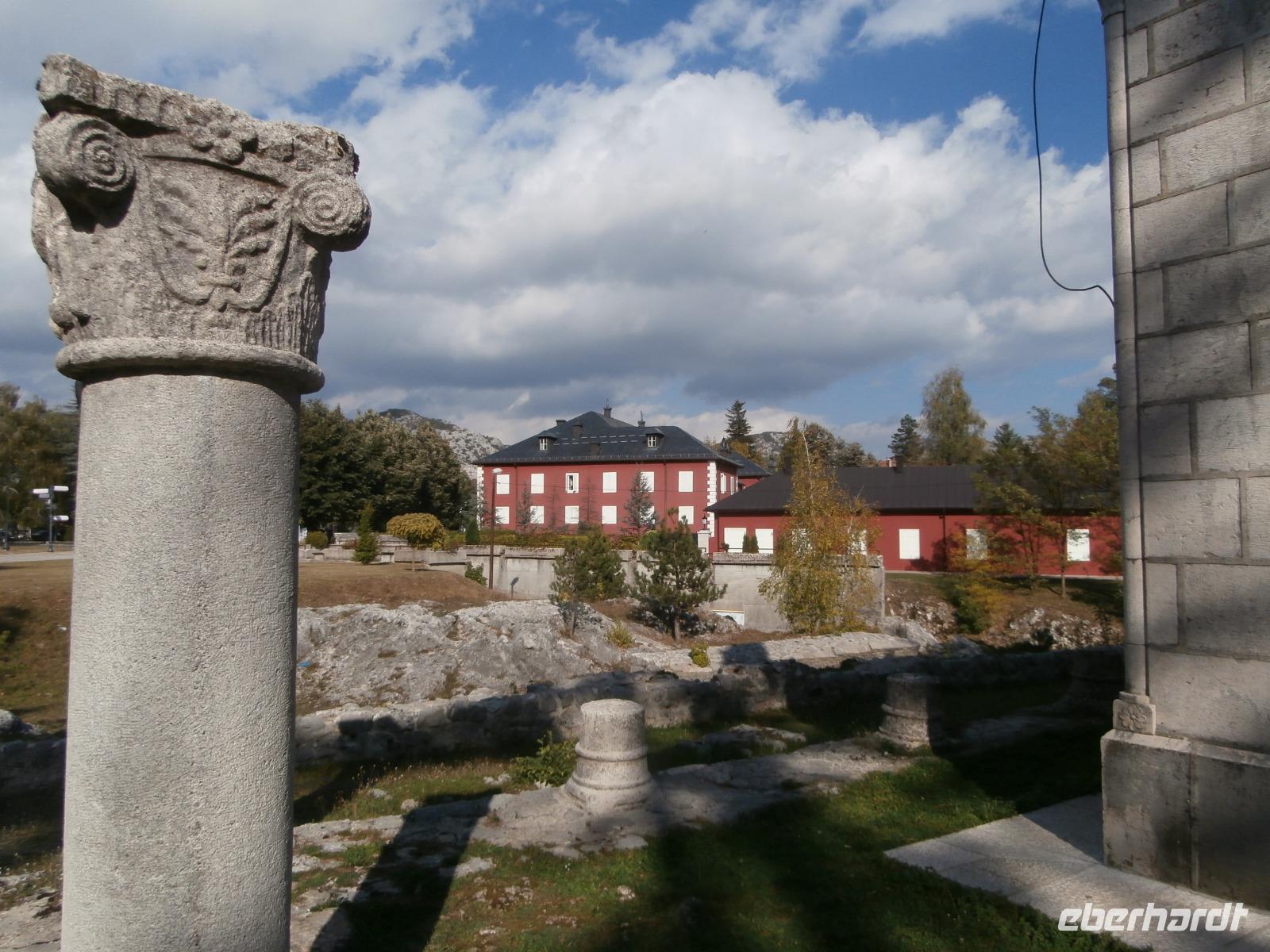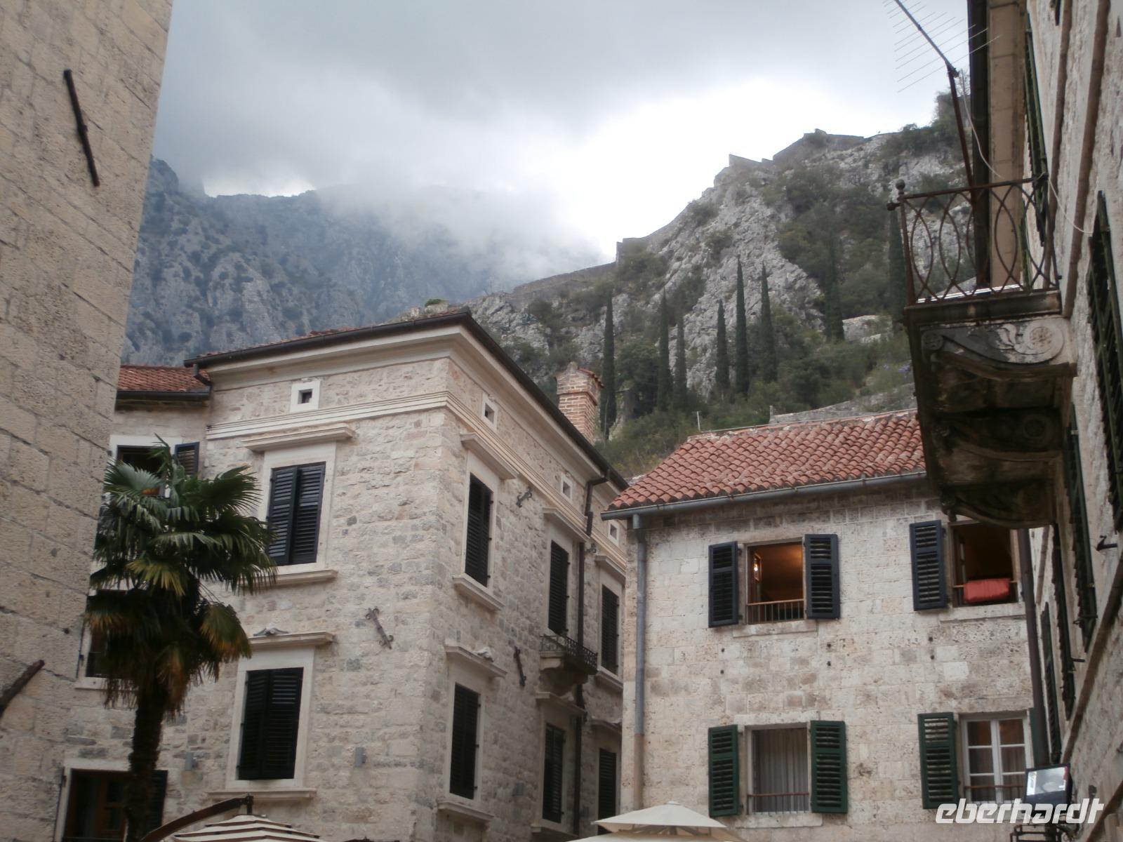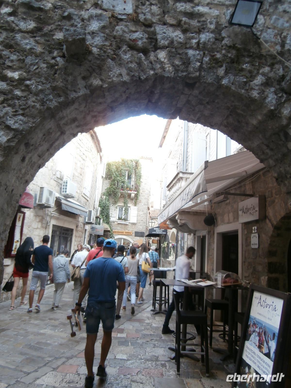 Wir können ab 07.30 Uhr frühstücken - lecker und reichlich ist es. 3 Kreuzfahrtschiffe fahren am Morgen in die Bucht von Kotor ein. 08:30 Uhr ist Start zum Tagesausflug mit Besuch von Kotor, Njegusi und Cetinje. Wir fahren am Morgen zuerst hinein nach Kotor und treffen uns am Eingang zur Stadt mit Rosanda zur Führung. Kotor, der Haupthafen des serbischen Königreichs, ist ein touristisches Highlight und gehört zum Weltkulturerbe. Der Ort war zwischen 1483 und 1687 osmanisch und gehörte ab 1918 zur Donaumo-narchie.1979 zerstörte ein großes Erdbeben die Stadt. Der Wiederaufbau gelang durch finanzielle Mittel der UNESCO. Durch ein mächtiges Tor in der Stadtmauer, das Löwentor, gelangen wir auf den zentralen Platz der Altstadt. Die historischen Gebäude zeugen von mittelalterlicher Architektur und handwerklicher Kunstfertigkeit. Unsere Führung endet am Hauptplatz, mit Blick auf den alten Hafen und die dazugehörige Festung spazieren wir zum Bus zurück. Dario fährt mit seinem Mercedes Bus sicher über einen Haarnadelpass mit 25 Spitzkehren hinauf nach Njegusi. Wir sind begeistert, er ist ein begnadeter Buschauffeur, mit großer Hochachtung sitzen wir hinter ihm auf dieser Fahrt hinauf auf fast 1000m ü Ms. Der Blick auf die Bucht von Kotor bei unserem Fotostopp ist atemberaubend. Der Regen, den wir kurz in Kotor hatten, ist auch weggezogen. Im traditionellen Gasthaus auf 960 m Höhe im kleinen Ort Njegusi erwartet uns ein landestypischer Imbiss. Der berühmte, selbstgemachte Schinken, Käse und Rotwein wird mit Brot serviert. Eine Gaststätte darf den Namen "traditionell" führen, wenn landestypische, selbstgefertigte Erzeugnisse und Speisen angeboten werden, die mittels traditioneller Hilfsmittel hergestellt sind. Der Imbiss ist lecker, das Angebot, Schinken und Käse einzukaufen, wird rege genutzt. Nach einem kurzen Spaziergang im Ort, setzen wir unsere Fahrt auf neugebauter Straße im Gebirge fort. Nach ca. einer halben Stunde bergab erreichen wir Cetinje, die ehemalige Hauptstadt des Königreiches Montenegro. Gemeinsam spazieren wir zum Nikola-Palast, wo wir in deutscher Sprache eine wunderbare Führung erleben. Eine sehr sehenswerte und wertvolle Sammlung - wir sind beeindruckt - ein Erlebnis! Im Ort sehen wir uns auch im Kloster, mit der Ikone Mutter Gottes aus Philamos, um und am Nationalmuseum kommen wir auch vorbei. 16:00 Uhr haben wir dann die Rückfahrt übers Gebirge vorbei an Budva, zuvor noch mit Fotostopp oberhalb von Budva. Bis zum Abendessen bleibt noch Zeit für den angenehmen Aufenthalt in der Hotelanlage, einige Reisegäste gehen schwimmen.