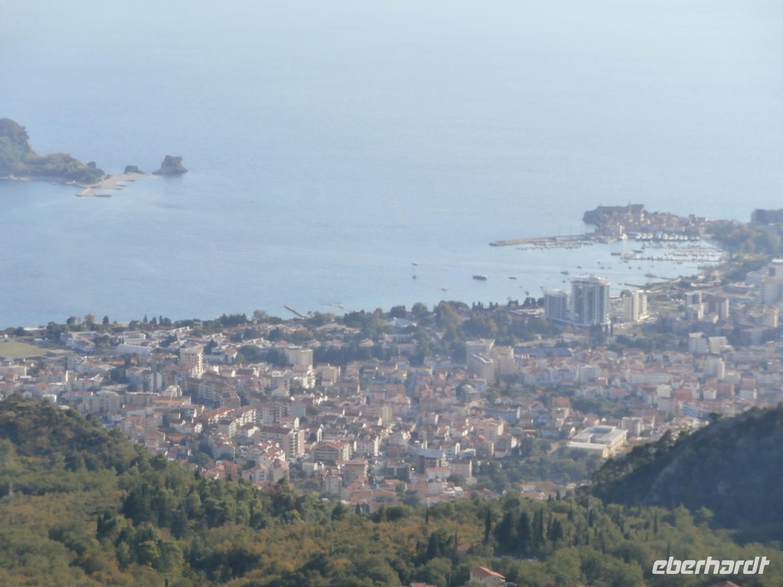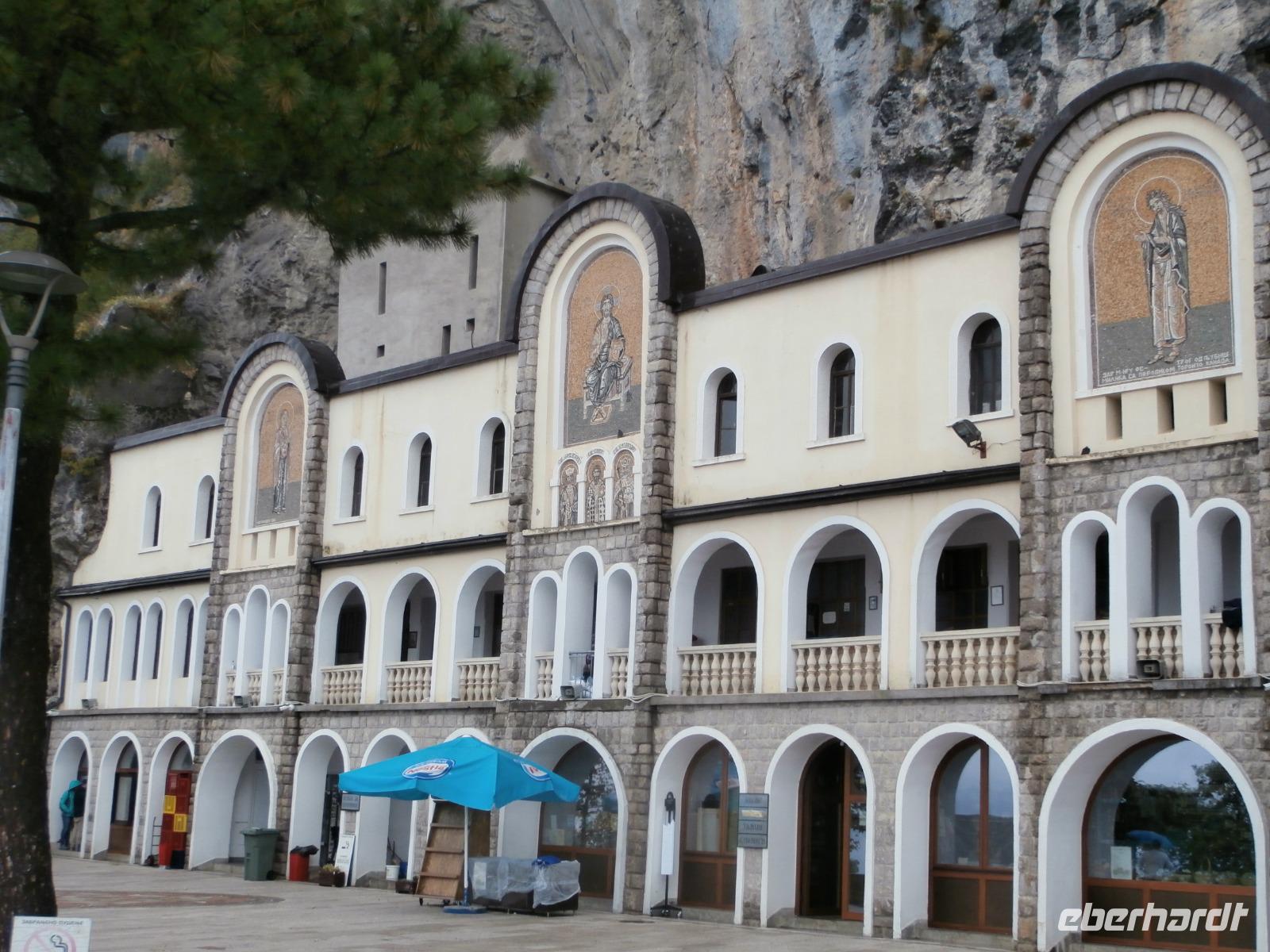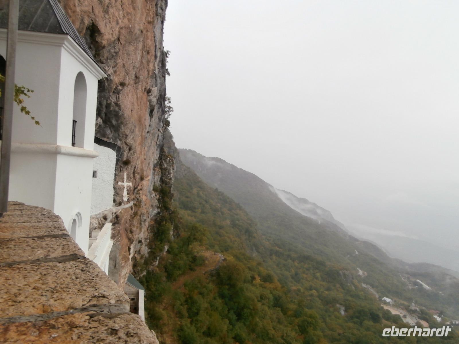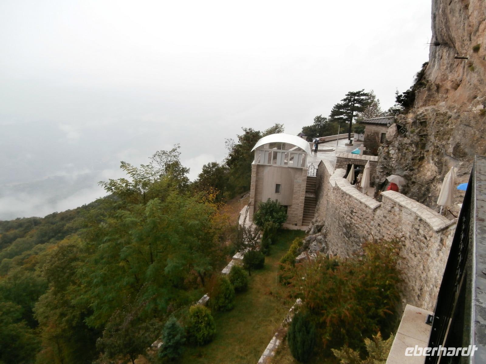 Heute steht der Besuch des Klosters Ostrog und die Hauptstadt Podgorica auf unserem Programm. Strömender Regen erwartet uns am Morgen schon zum Frühstück und er soll uns bis 17 Uhr erhalten bleiben. Eine aufregende Fahrt durch eine einzigartige Gebirgslandschaft, leider bei viel Regen, erleben wir. Dario hat zu jeder Zeit das Lenkrad souverän in der Hand, ganz galant und ruhig fährt er uns durch die kurvige Bergwelt. Bis fast zum 1. Kloster fahren wir mit unserem Bus. Dann wird in einen örtlichen, wenn auch nur wenig kleineren Bus, umgestiegen, Viele Kurven führen im Regen hinauf zum Kloster Ostrog, auf über 900 Meter Höhe weit über dem Fluss Zeta befindet sich das Kloster in Fels gehauen. Beeindruckend dieser Bau, wie er sich an die hohe Felswand schmiegt, mit seinen ausgebauten Höhlenräumen. Nach Besichtigung und Kaffeegenuss am Automat, geht die Fahrt auf gleichem Weg wieder hinunter. Wir fahren weiter, es geht hinunter nach Podgorica, wo unsere örtliche Reiseleiterin Anna zusteigt und uns die Hauptstadt zeigt und erklärt. Nach der Stadtbesichtigung gönnen wir uns einen Kaffee oder Espresso, der Regen hört auf und wir haben nun eine sehr schöne Fahrt durch die Zeta-Ebene, vorbei am Skutarisee und weiter Richtung Küste, zur Adria. Ein Fotostopp an der Insel Sveti Stephan ist krönender Abschluss unserer Reise. Vorbei an Budva und Kotor geht die Rückfahrt zum Hotel Splendido. Letzte Fotos werden geschossen, gemeinsames Abendessen und dann auf die Zimmer zum Kofferpacken, denn schon zwei Uhr müssen wir aufstehen, gegen acht Uhr hebt unser Flieger in Richtung Heimat ab.