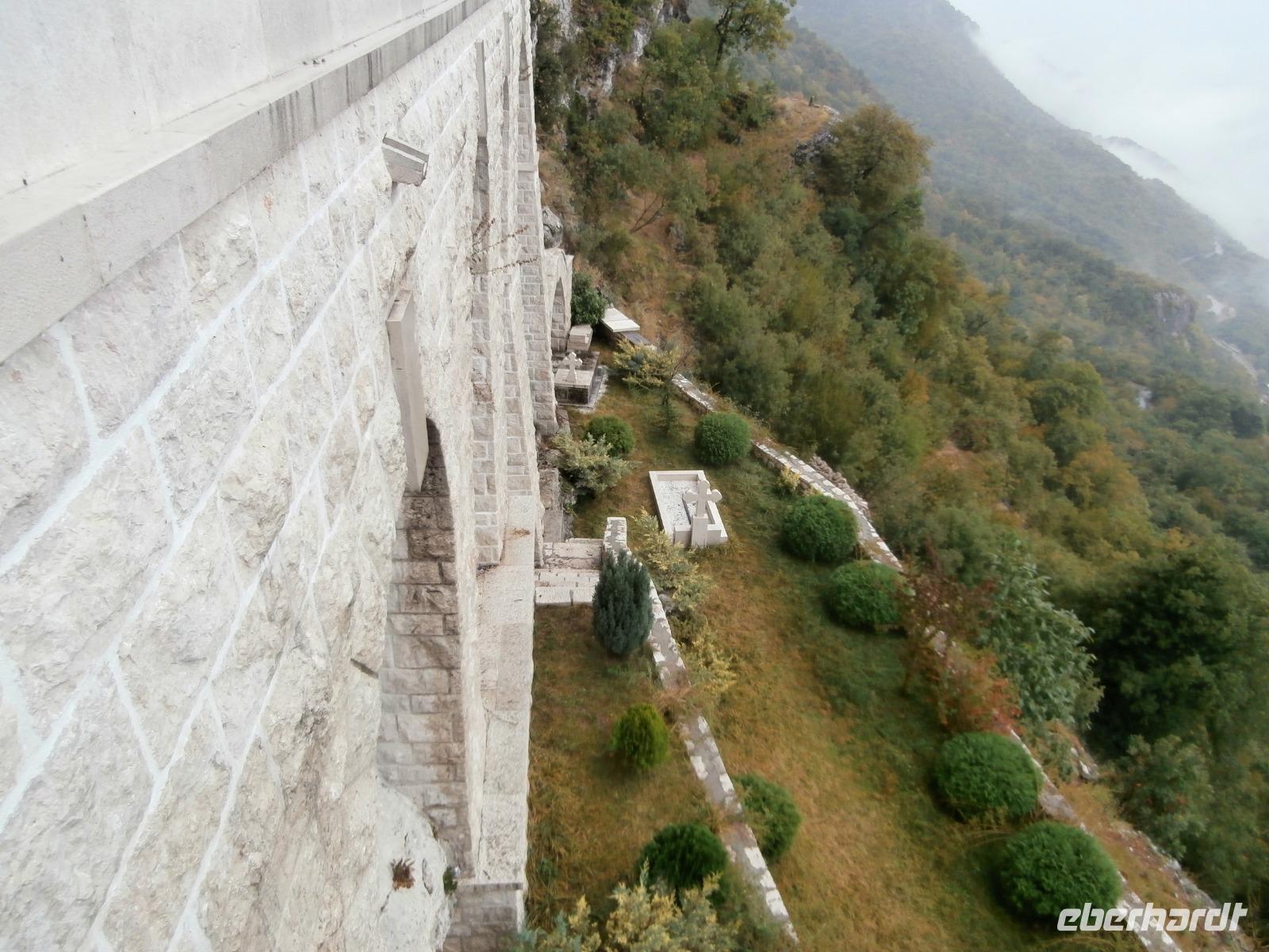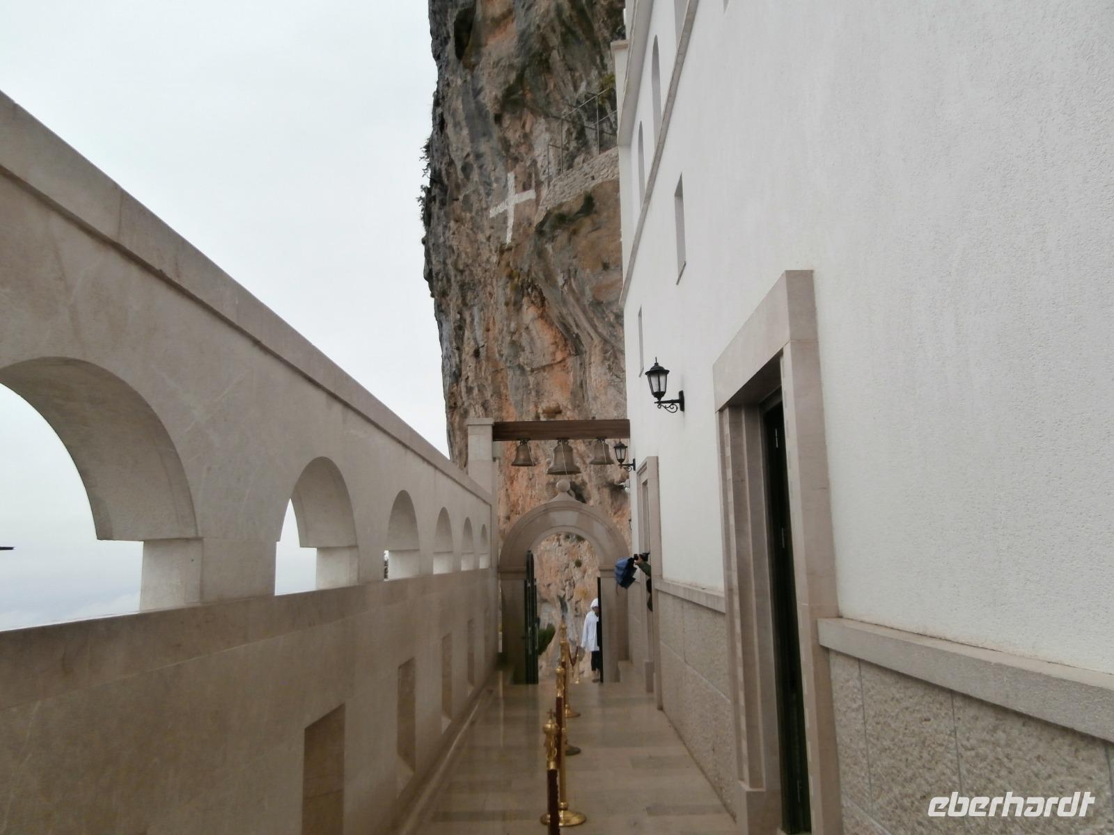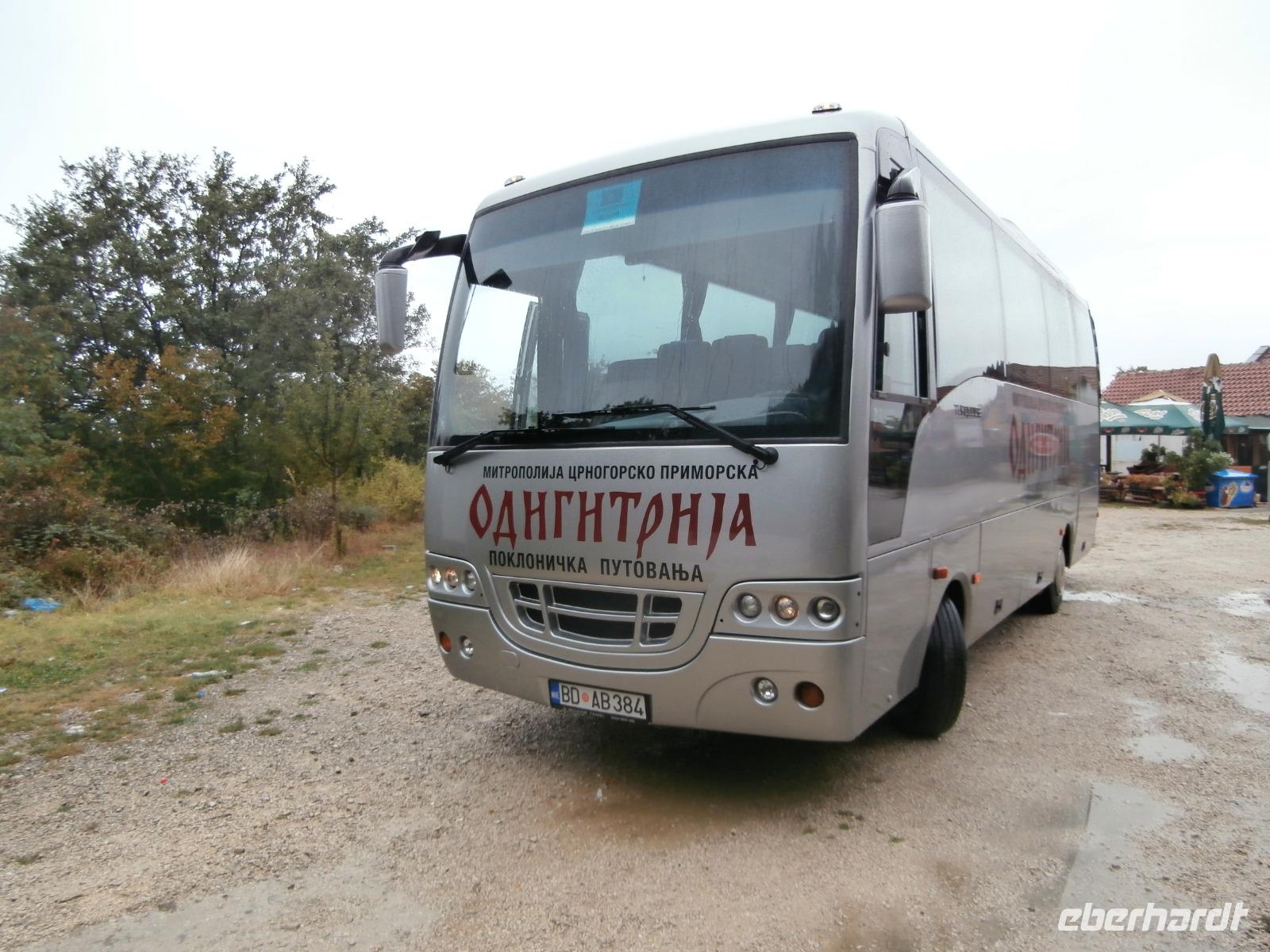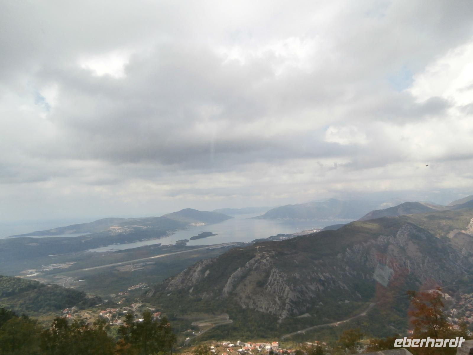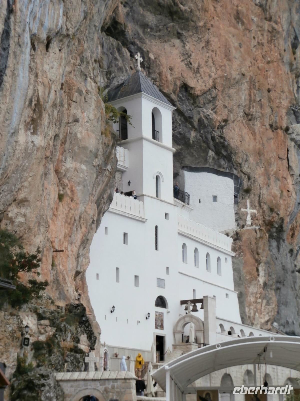 Heute steht der Besuch des Klosters Ostrog und die Hauptstadt Podgorica auf unserem Programm. Strömender Regen erwartet uns am Morgen schon zum Frühstück und er soll uns bis 17 Uhr erhalten bleiben. Eine aufregende Fahrt durch eine einzigartige Gebirgslandschaft, leider bei viel Regen, erleben wir. Dario hat zu jeder Zeit das Lenkrad souverän in der Hand, ganz galant und ruhig fährt er uns durch die kurvige Bergwelt. Bis fast zum 1. Kloster fahren wir mit unserem Bus. Dann wird in einen örtlichen, wenn auch nur wenig kleineren Bus, umgestiegen, Viele Kurven führen im Regen hinauf zum Kloster Ostrog, auf über 900 Meter Höhe weit über dem Fluss Zeta befindet sich das Kloster in Fels gehauen. Beeindruckend dieser Bau, wie er sich an die hohe Felswand schmiegt, mit seinen ausgebauten Höhlenräumen. Nach Besichtigung und Kaffeegenuss am Automat, geht die Fahrt auf gleichem Weg wieder hinunter. Wir fahren weiter, es geht hinunter nach Podgorica, wo unsere örtliche Reiseleiterin Anna zusteigt und uns die Hauptstadt zeigt und erklärt. Nach der Stadtbesichtigung gönnen wir uns einen Kaffee oder Espresso, der Regen hört auf und wir haben nun eine sehr schöne Fahrt durch die Zeta-Ebene, vorbei am Skutarisee und weiter Richtung Küste, zur Adria. Ein Fotostopp an der Insel Sveti Stephan ist krönender Abschluss unserer Reise. Vorbei an Budva und Kotor geht die Rückfahrt zum Hotel Splendido. Letzte Fotos werden geschossen, gemeinsames Abendessen und dann auf die Zimmer zum Kofferpacken, denn schon zwei Uhr müssen wir aufstehen, gegen acht Uhr hebt unser Flieger in Richtung Heimat ab.
